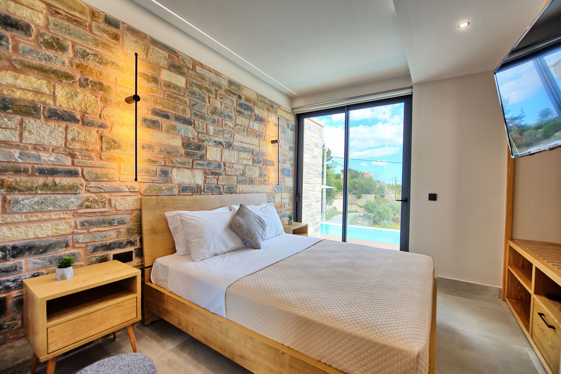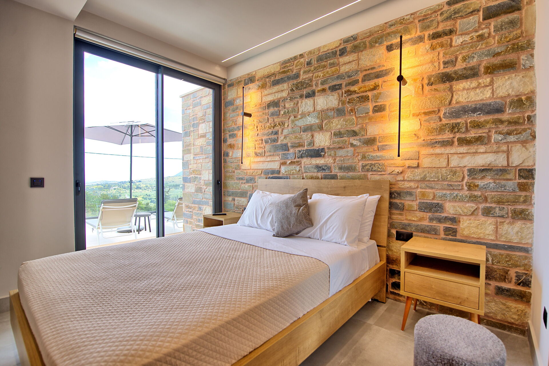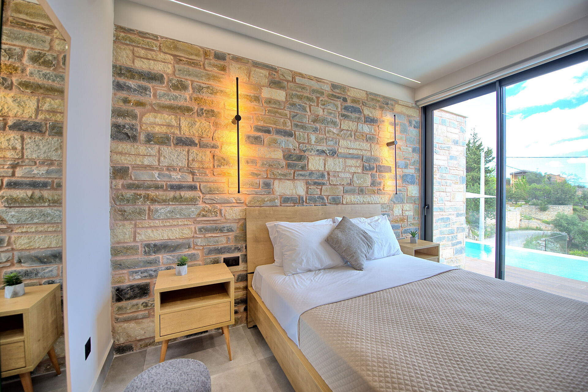 Etwas aufpassen bei nassen Treppenstufen!Ansprechende Schlafzimmer mit Gepäckablagen und tollen Wandleuchten.Petros hat bei allen Fragen umgehend reagiert und geholfen. Helen hat sich sehr gut um das Housekeeping gekümmert.2-maliger Wäschewechsel und Reinigung während unseres Aufenthalts.