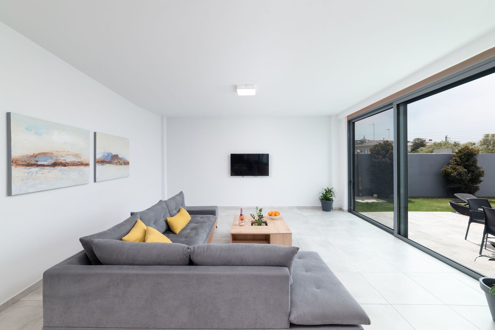 Our host Eftychios was super! Really friendly and responsive. From the first messages exchanged through checkin our stay and check out, the experience was always positive. The Villa is modern and amazing. Perfect for one or two families sharing. We were 8 people with two young children and we had a great stay. Lovely local restaurants are within walking distance (200m), and there are little shops and supermarkets as well. It’s a superb location for anyone wanting to stay in Agia Marina. We will definitely 100% return! The main road / strip where all the shops, hotels, restaurants and bars is less than 5 mins walk away but you don’t even feel it as the house is higher up behind it and surrounded by olive trees. We had a great time and highly recommend it! But please… take good care of the place for us until we return next time.