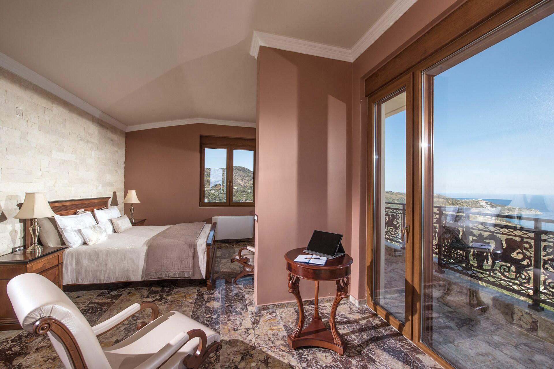 Varje sovrum är unikt och är inrett för att skapa en oförglömlig upplevelse. Huset är byggt med vackra stenar och inuti går de väldigt bra ihop med de eleganta marmorgolven.