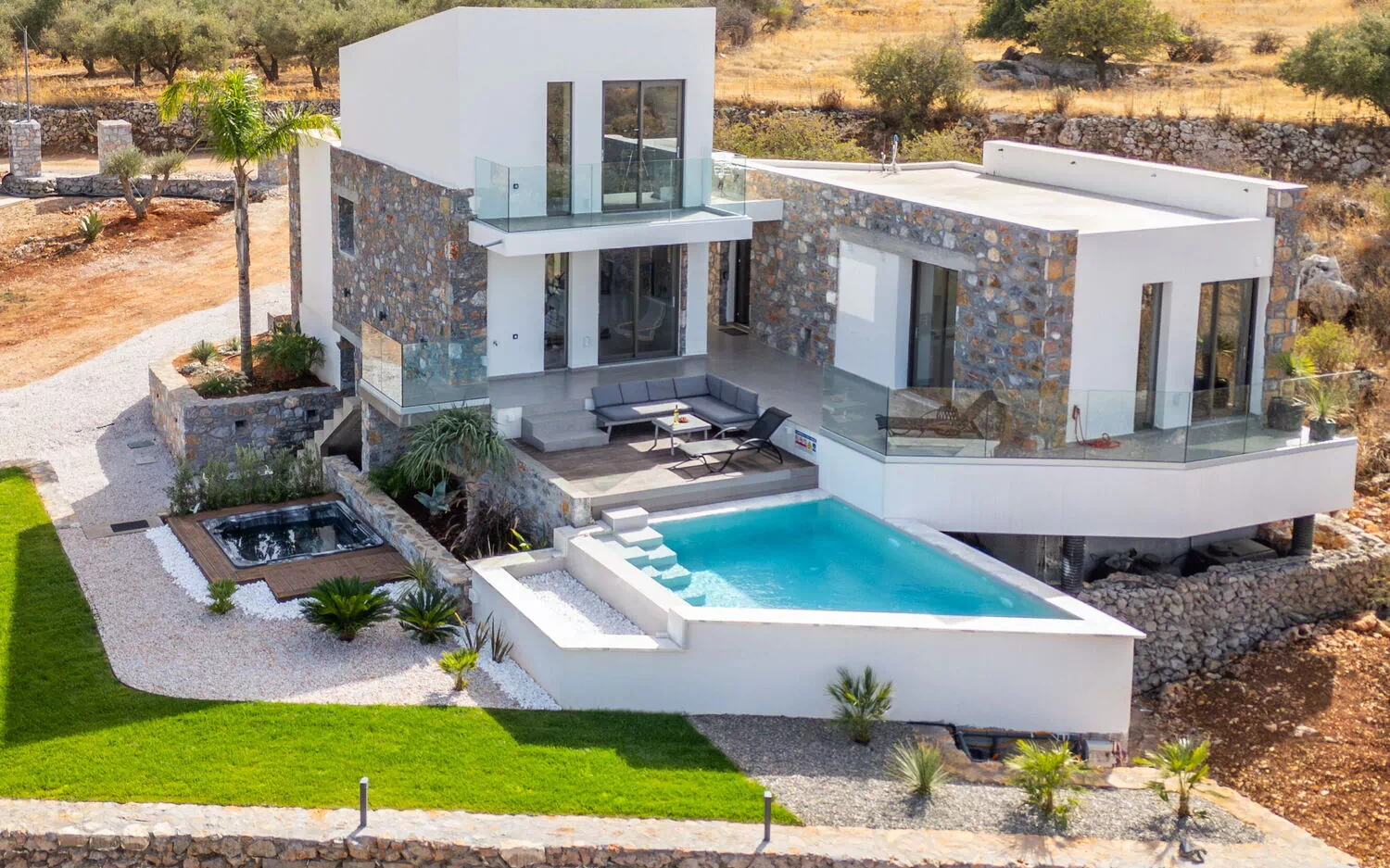 Vackert semesterhus med privat pool och utomhusjacuzzi nära Gavalochori, perfekt för en semester på Kreta i Grekland.
