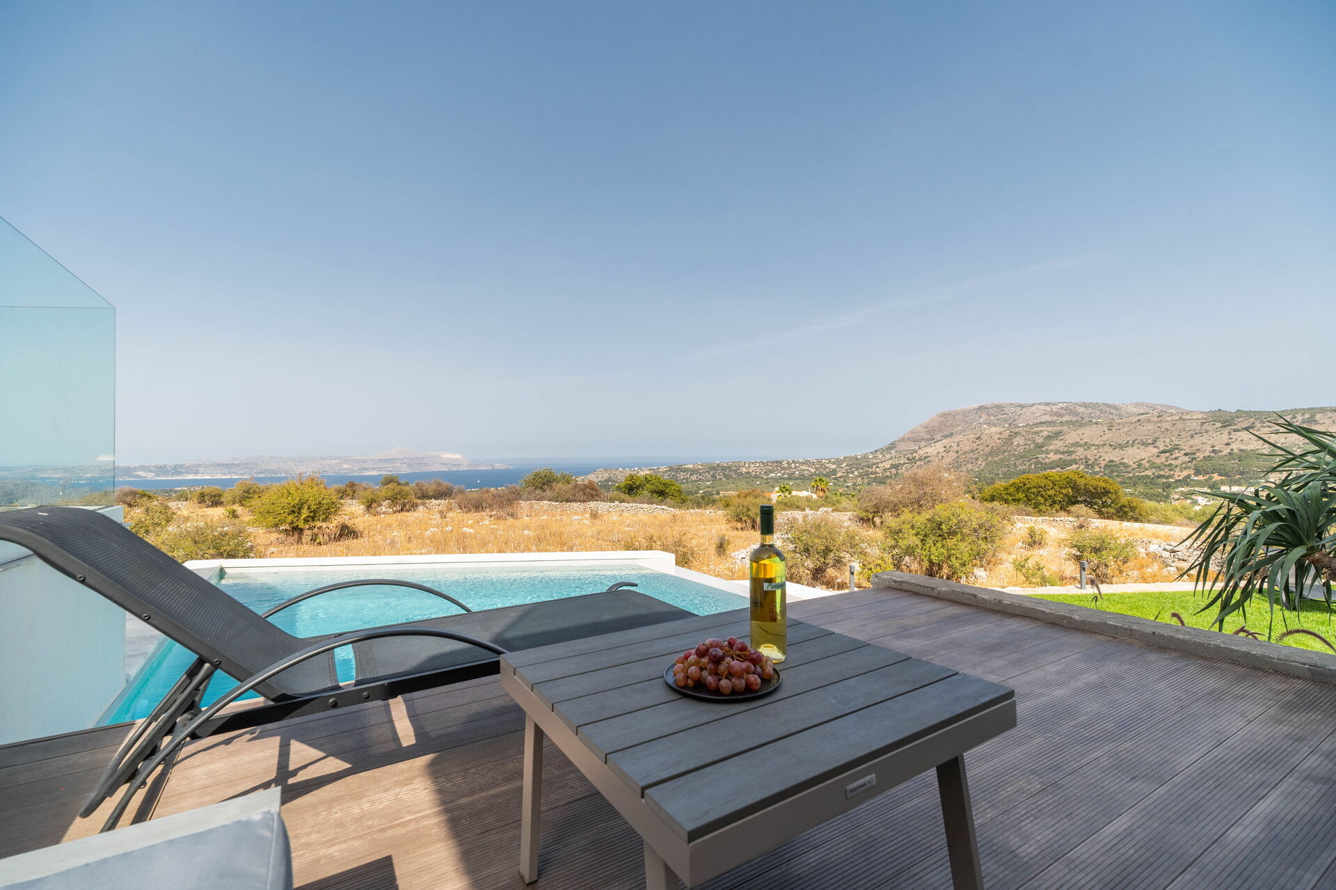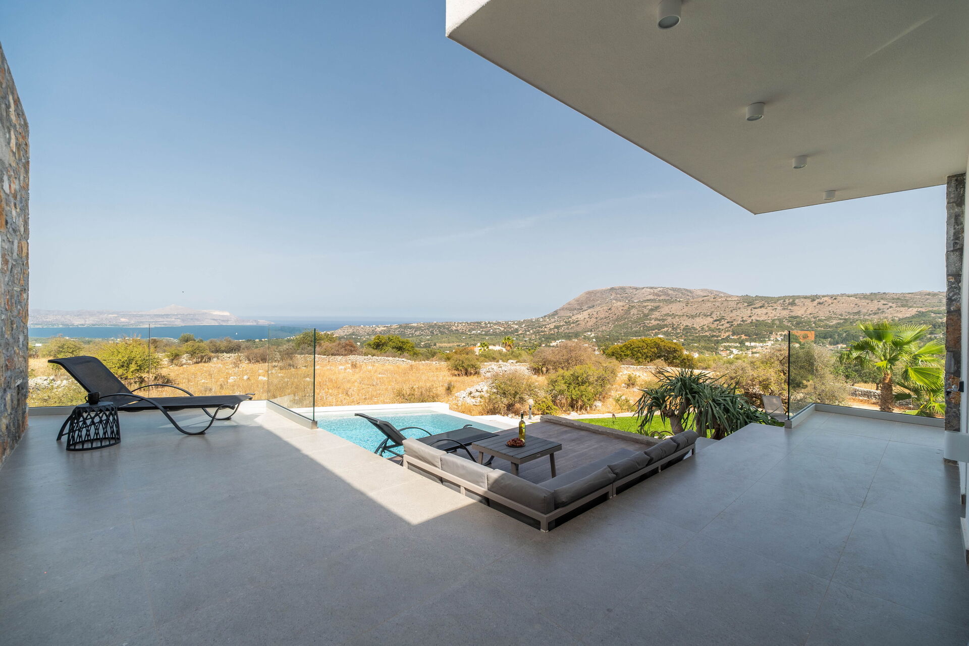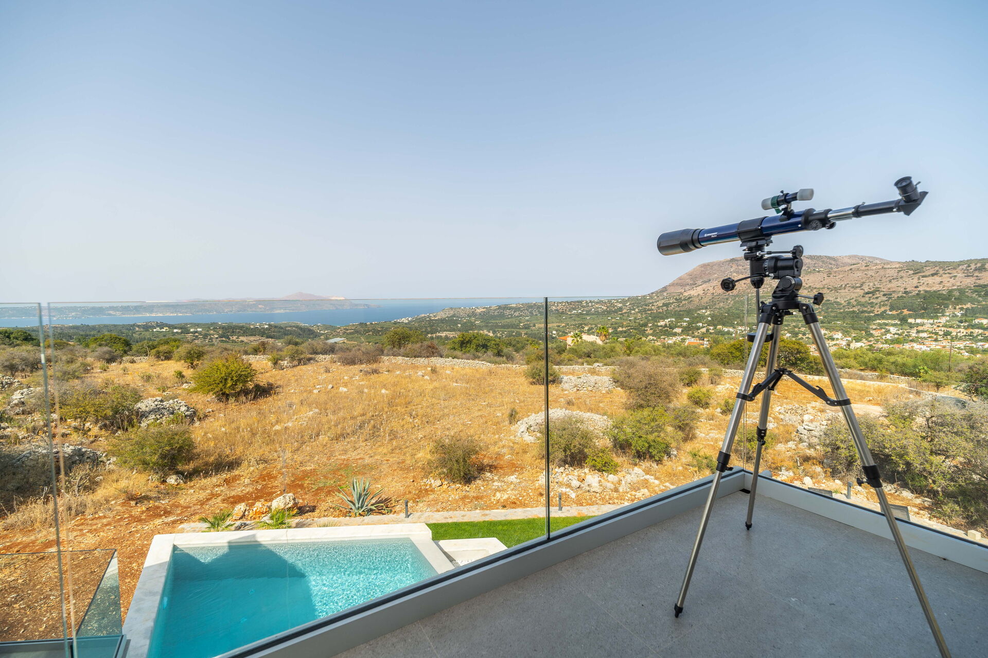 På utomhusområdet finns en privat pool med panoramautsikt, en jacuzzi och en härlig terrass möblerad för att njuta av måltider utomhus. Huset har en modern interiör och är mycket bekvämt inrett.