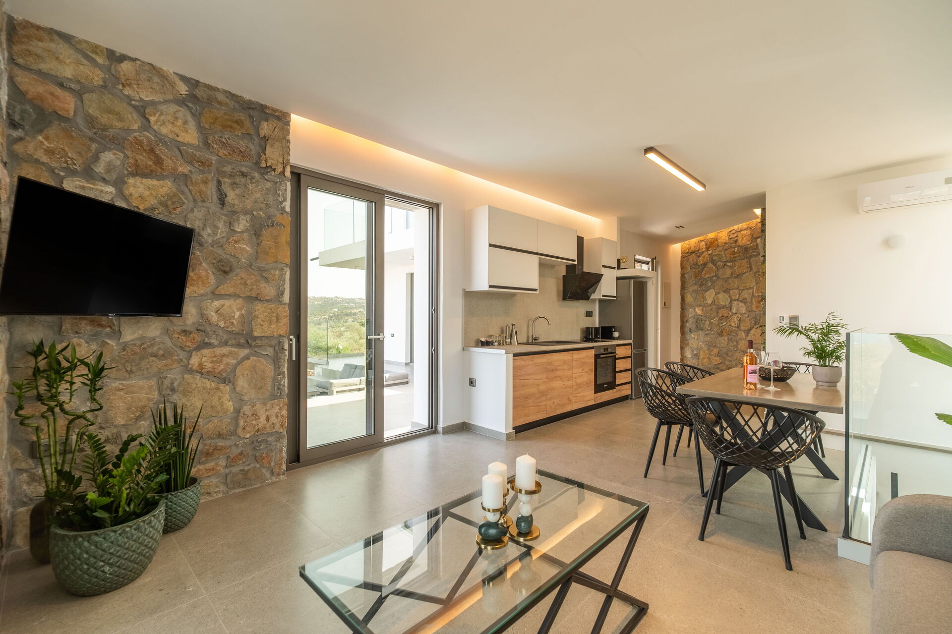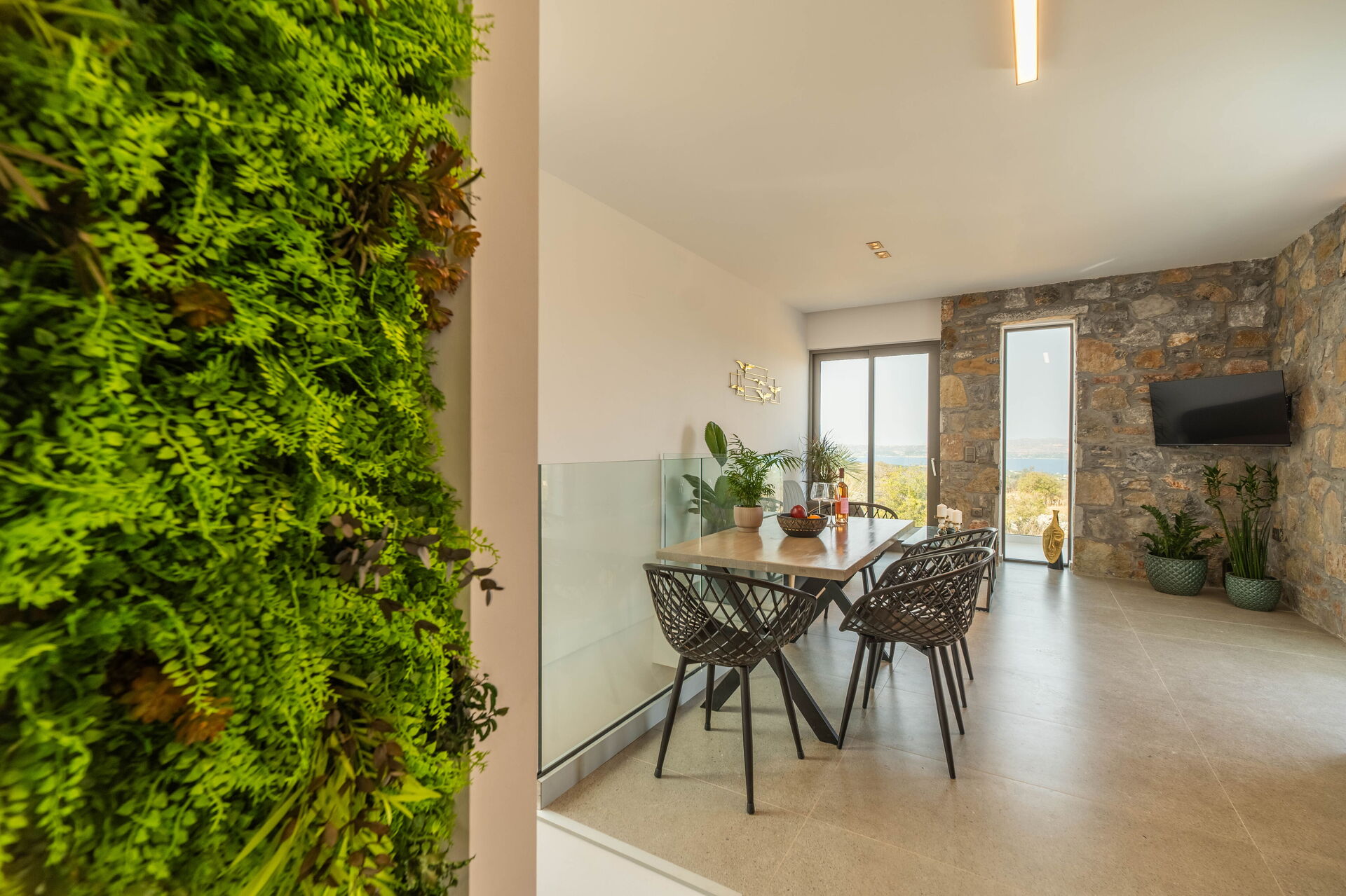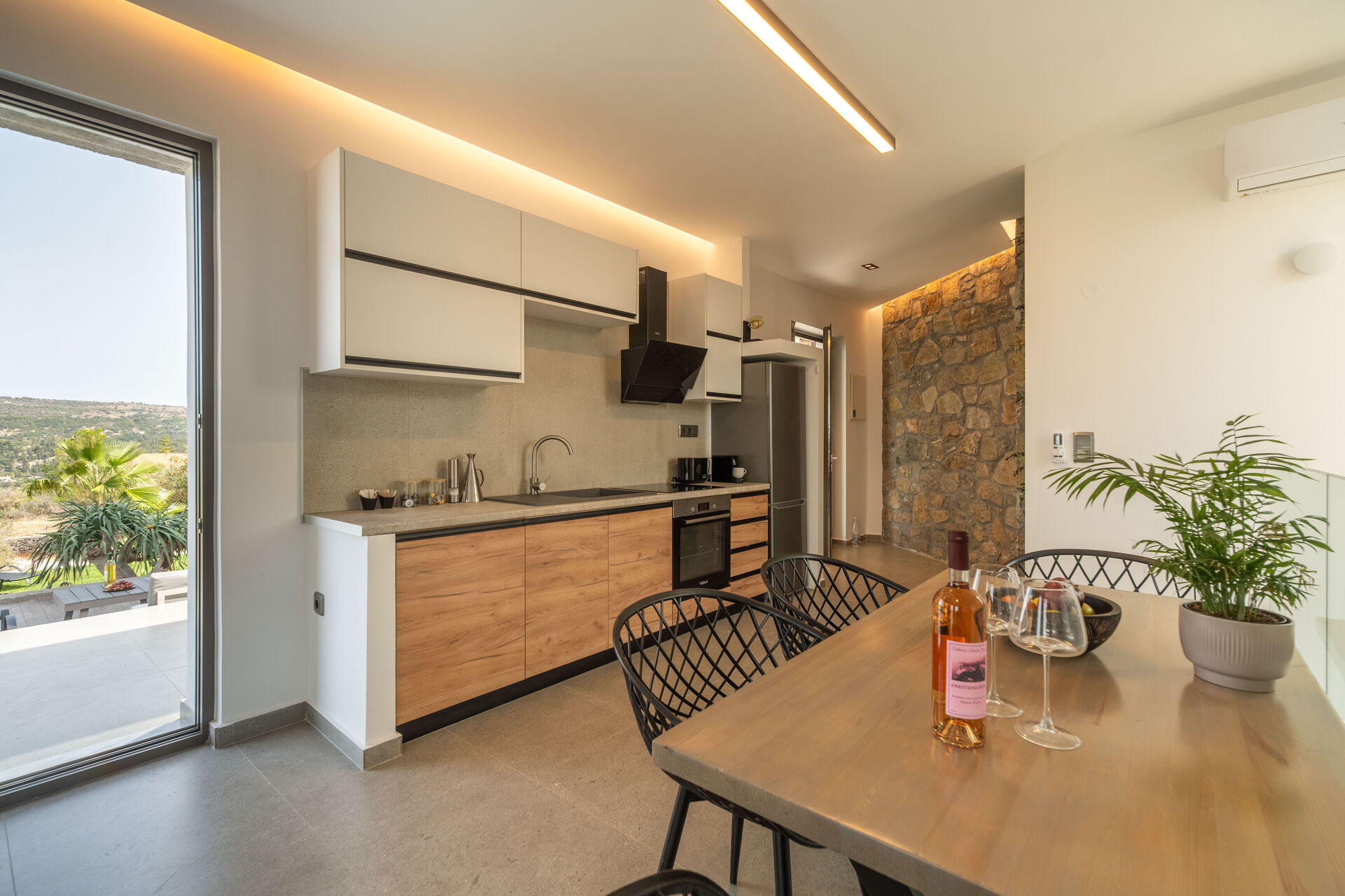 På utomhusområdet finns en privat pool med panoramautsikt, en jacuzzi och en härlig terrass möblerad för att njuta av måltider utomhus. Huset har en modern interiör och är mycket bekvämt inrett.