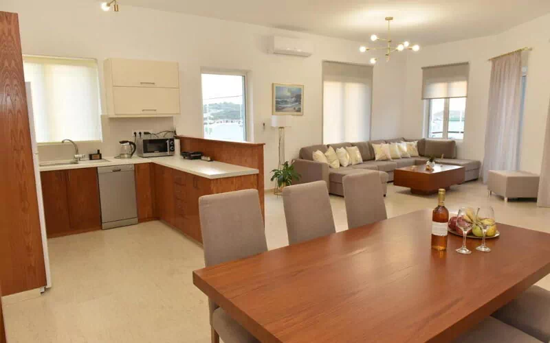The apartment was immaculately presented with everything a visitor could want, the pool was just right and the BBQ area was well equipped and ideal for self catering. Additionally, Chrissy was the most helpful and polite host and took pride in everything about the property and support for us prior to and during our holiday. A fantastic place in a lovely location. Highly recommended. Plenty of choices for eating and a couple of coffee shops and cocktail bars on the sea front. We hired and car which gave us the opportunity to explore Chania and other local areas of interest. We also took a trip to the water park at Heraklion and a morning fishing trip on a local fishing boat. Plenty to keep any holiday makers of any age entertained.