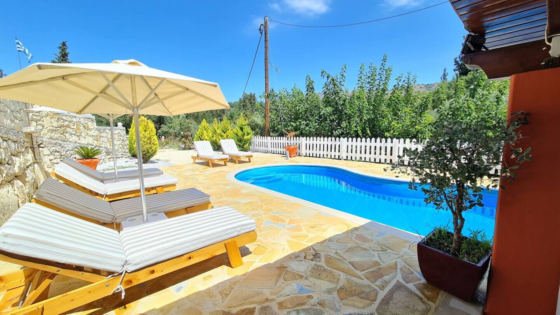 Villa Nikolas har 3 sovrum och rymmer upp till 6 personer. Semesterhuset ligger i lugna omgivningar, endast 1 km från byn Gavalochori där det finns butiker med basvaror, ett café och en taverna; och bara 3 km från kustbyn Almyrida (butiker av alla slag, restauranger och strand). Läget är perfekt för en avkopplande semester och som bas för att utforska den fantastiska ön Kreta.