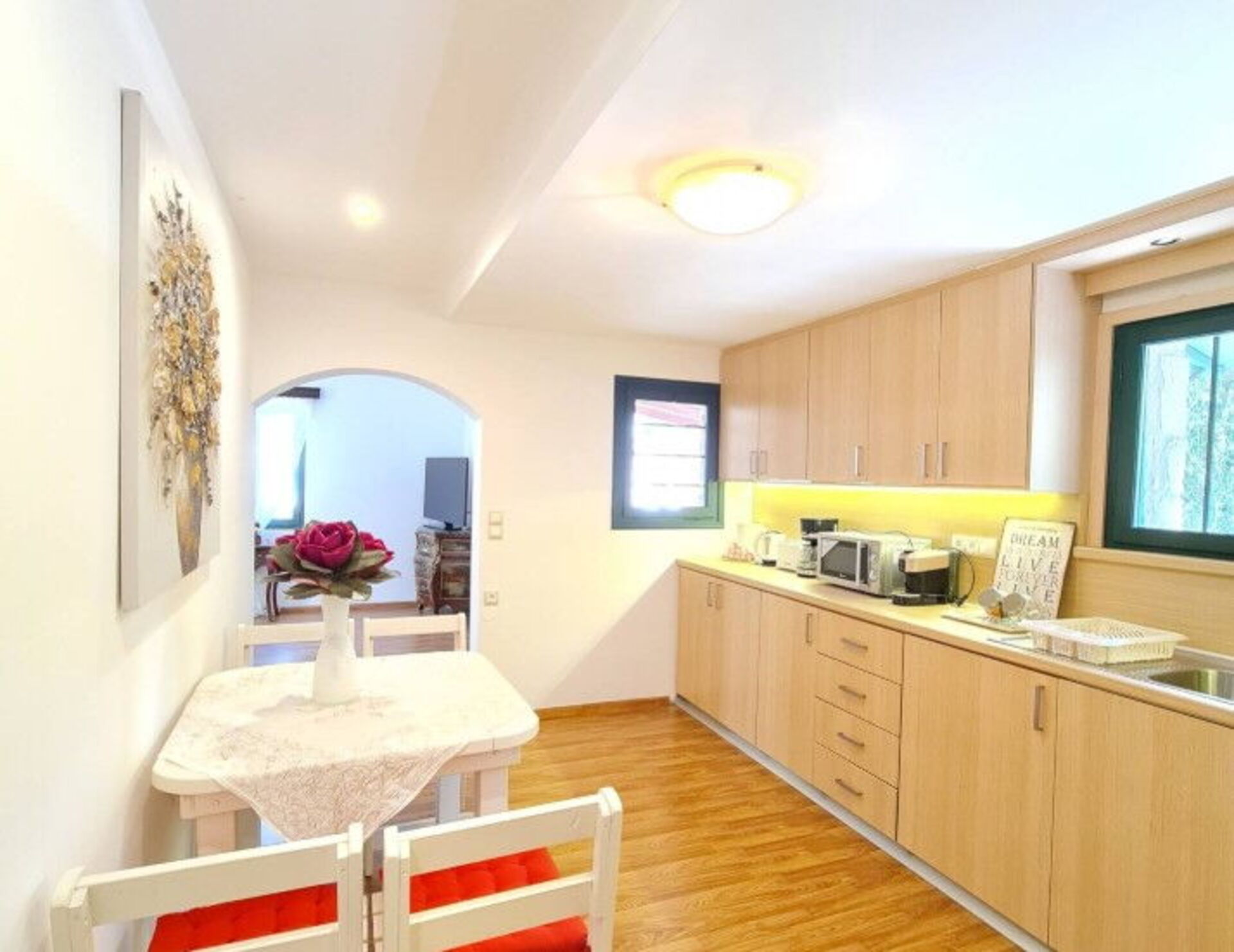 Huset är smakfullt inrett med fin möblering. På fastigheten finns även en privat pool där gästerna kan svalka sig under soliga dagar.