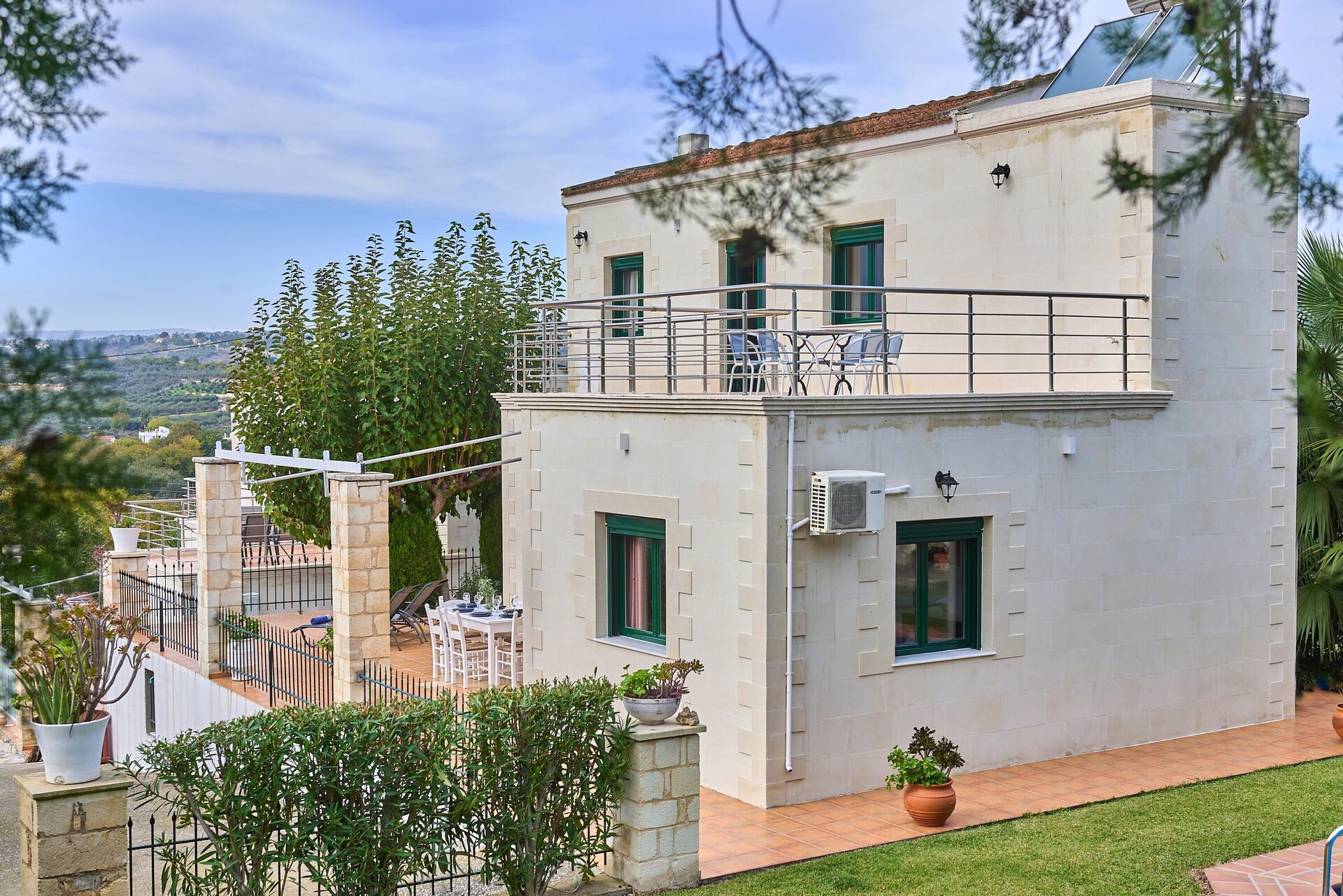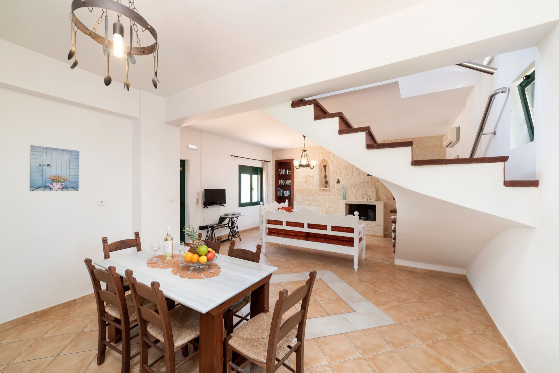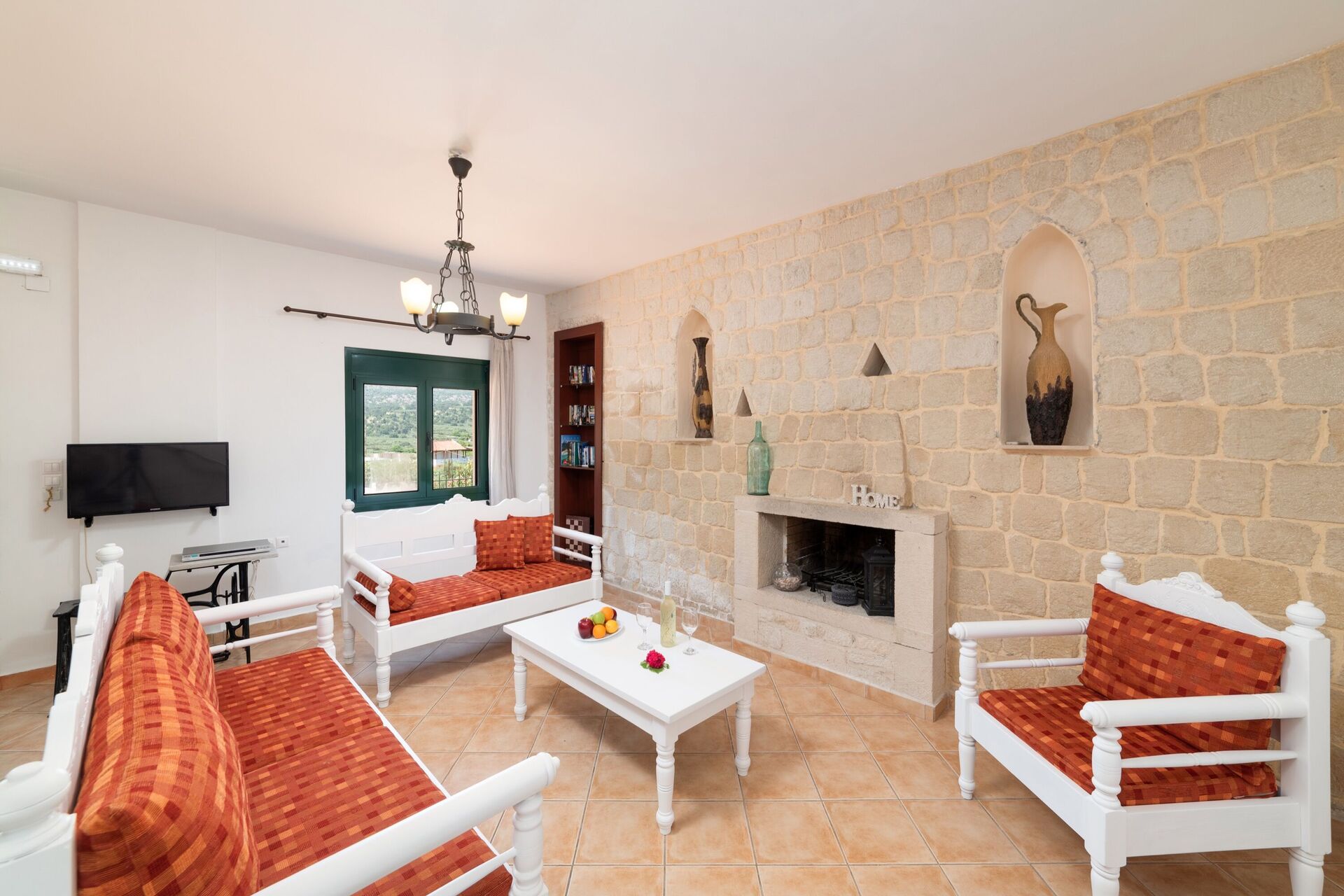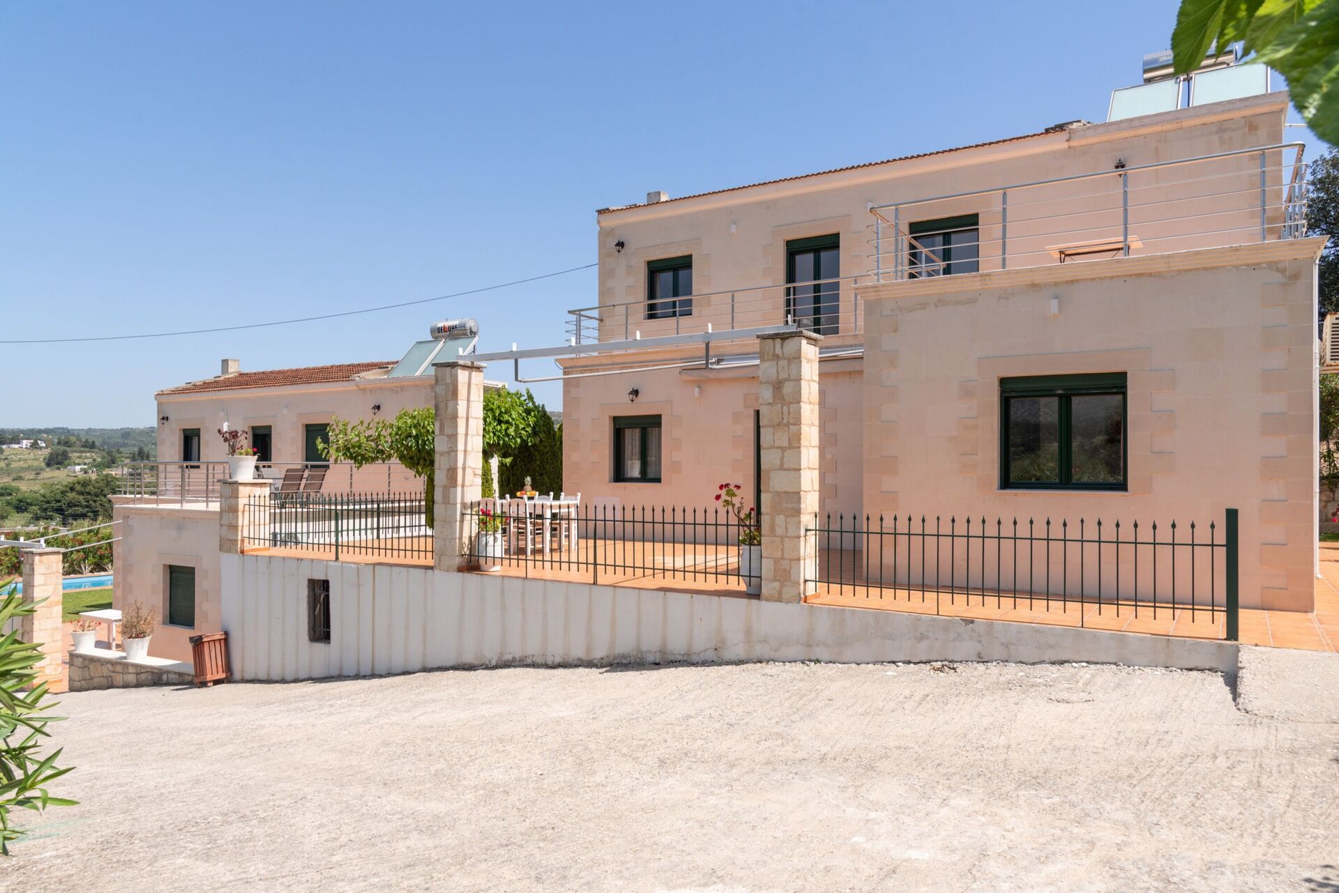 Inomhus erbjuder villorna i två våningar luftkonditionering och är smakfullt och stilfullt inredda med lokala stenar och traditionella inslag från Kreta.