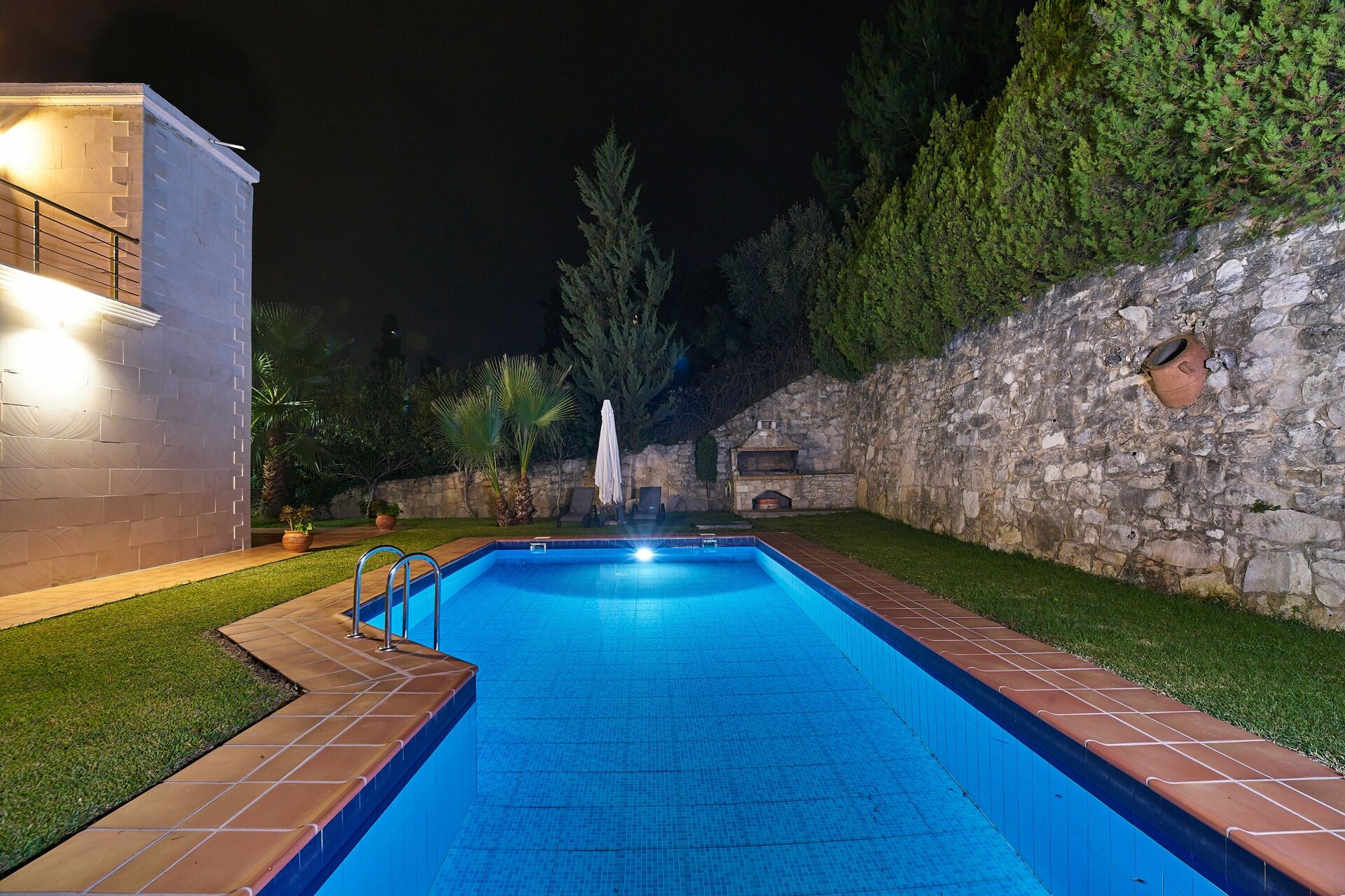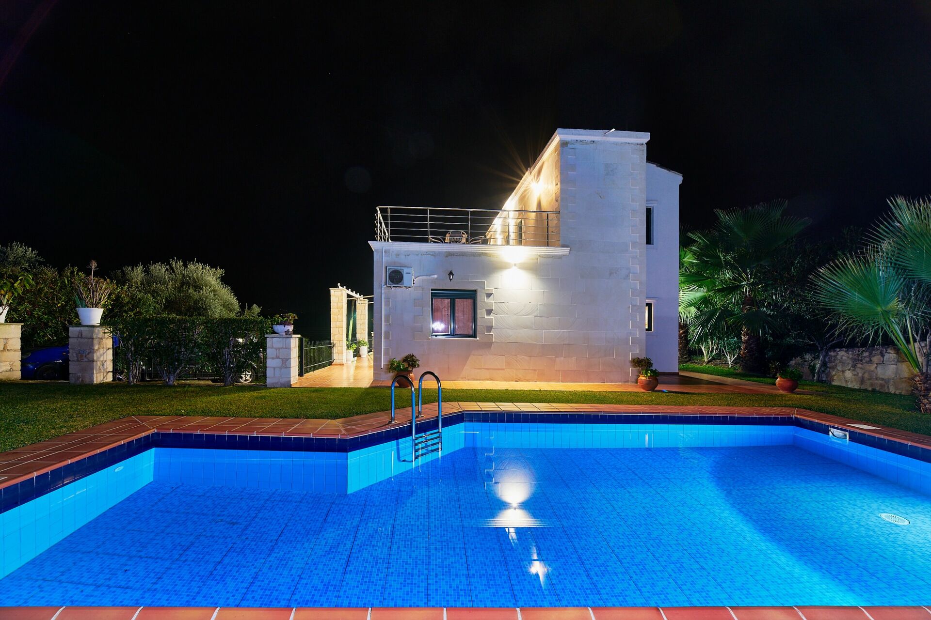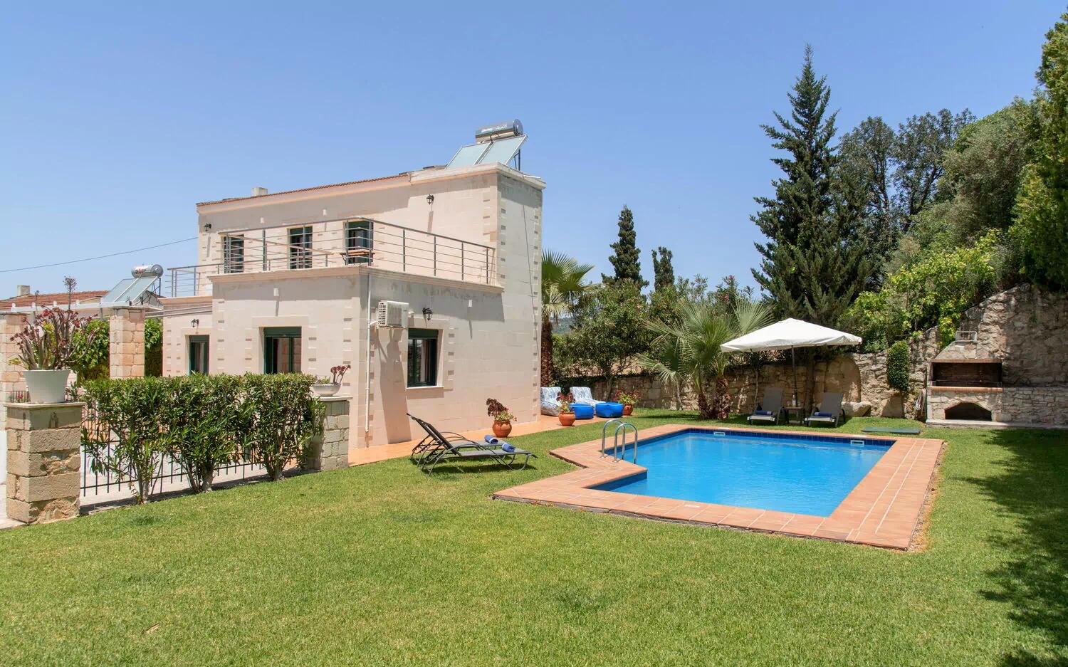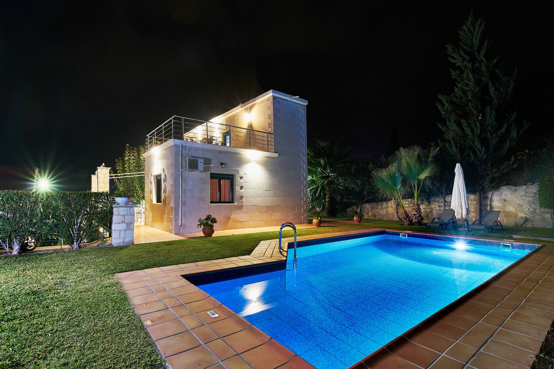 Inomhus erbjuder villorna i två våningar luftkonditionering och är smakfullt och stilfullt inredda med lokala stenar och traditionella inslag från Kreta.