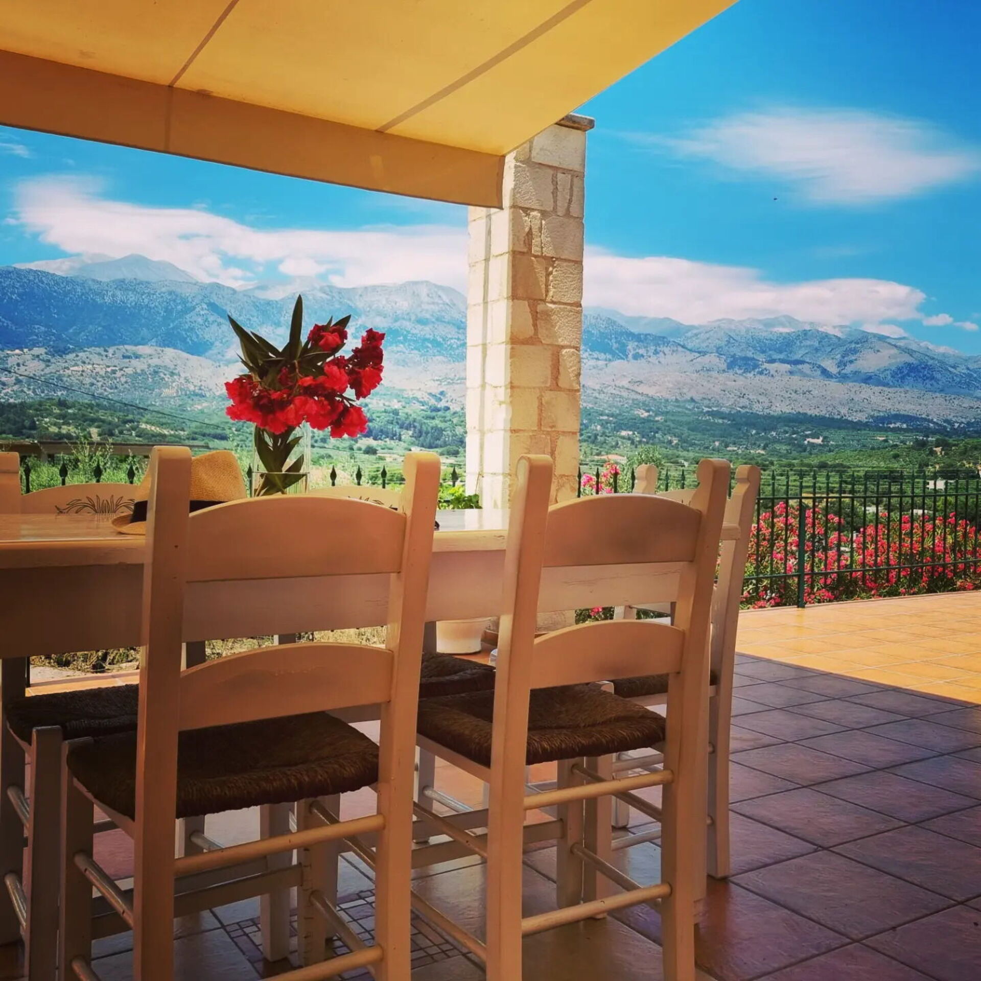 Beautiful villa in walking distance to the little village Vryses. From the house you have a breathtaking view over 2500 meters high mountains in the distance. I got a little bit of the same feeling as when staying in Tuscany or Provence. The owner runs a small supermarket in the village and help you with everything you might need during your stay.