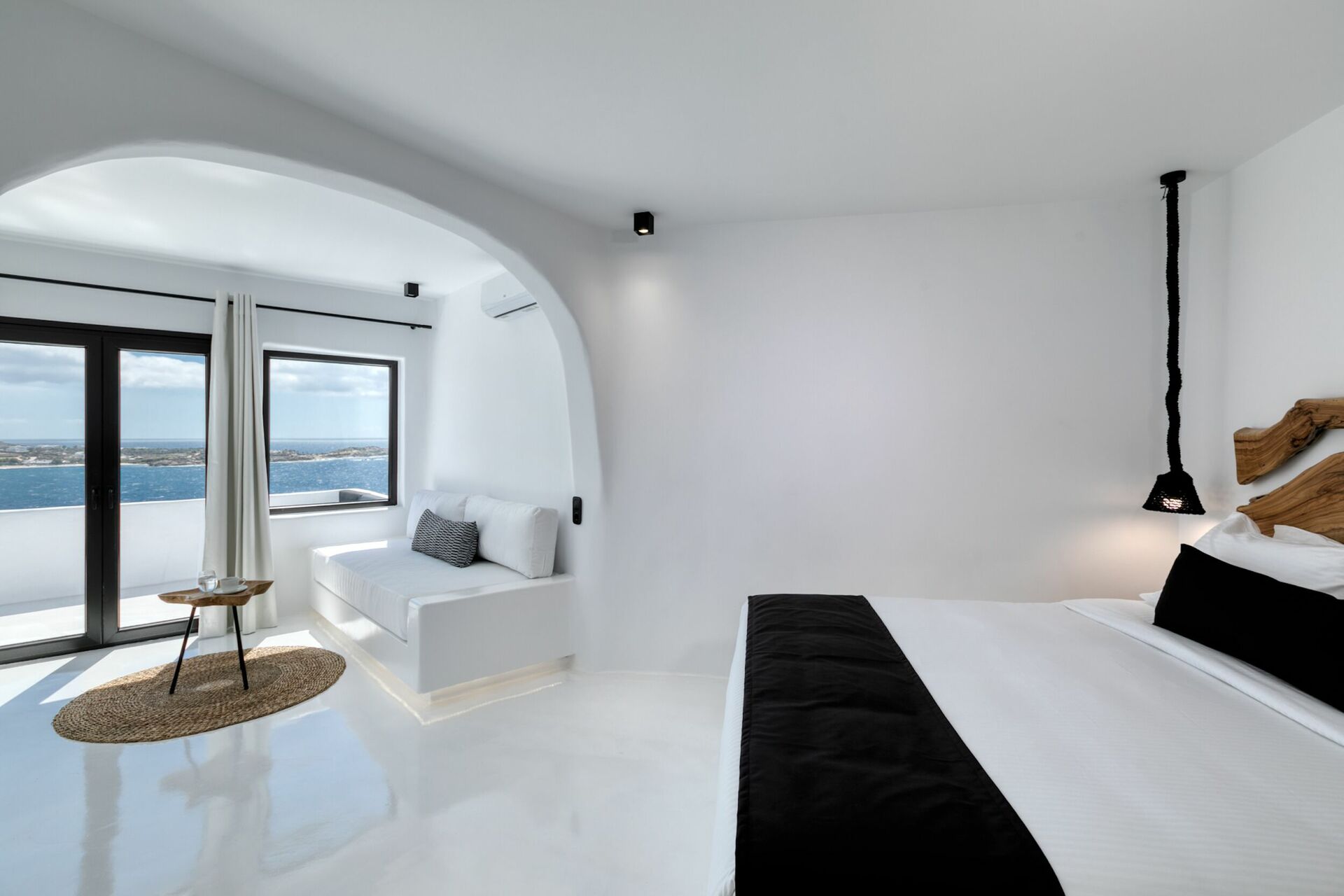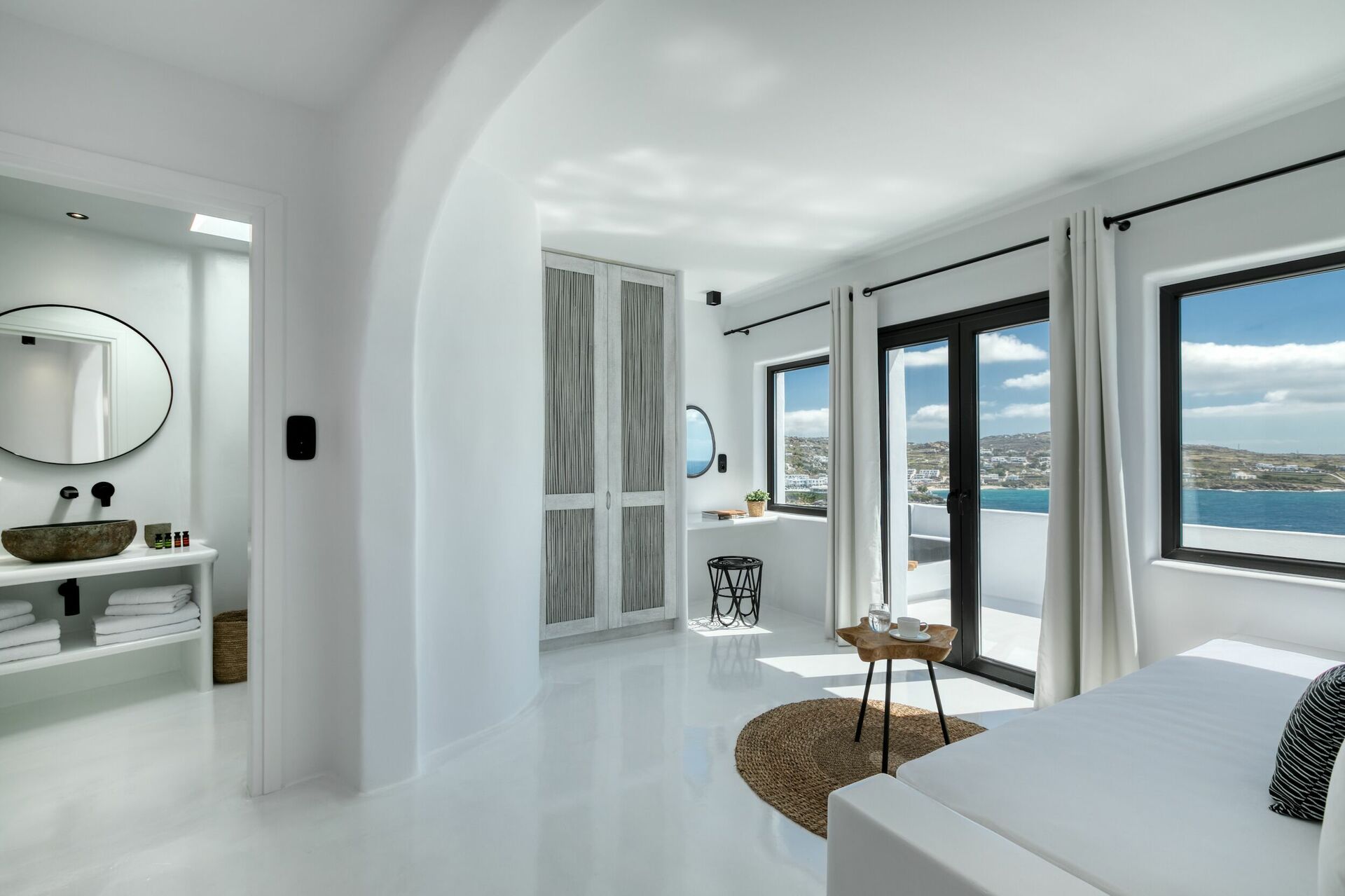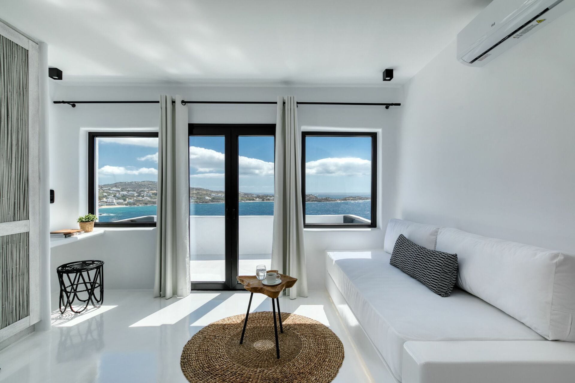 - Sovrum 1: king size-säng, TV, eget badrum med dusch, bekväm soffa, terrass med havsutsikt.
