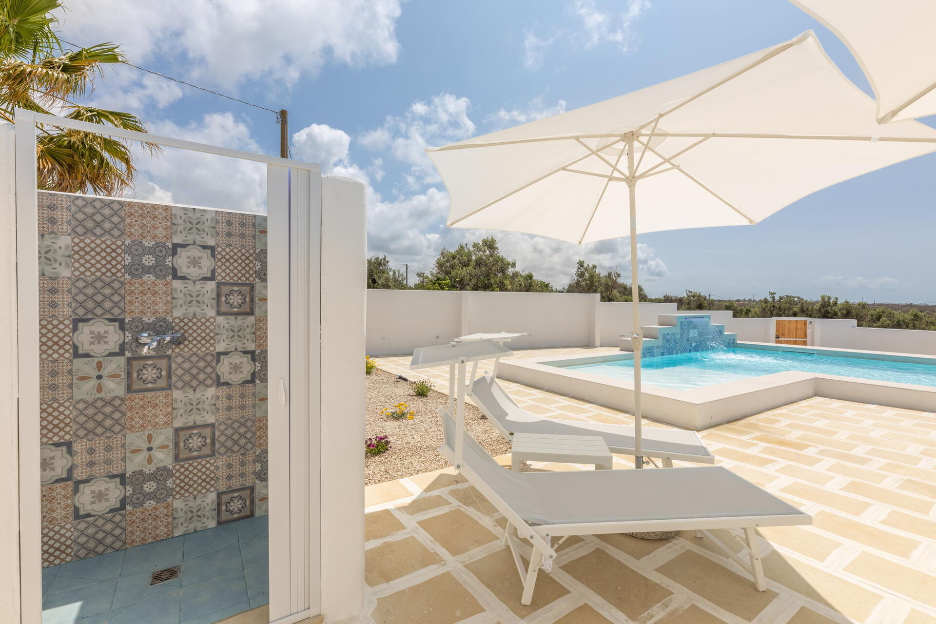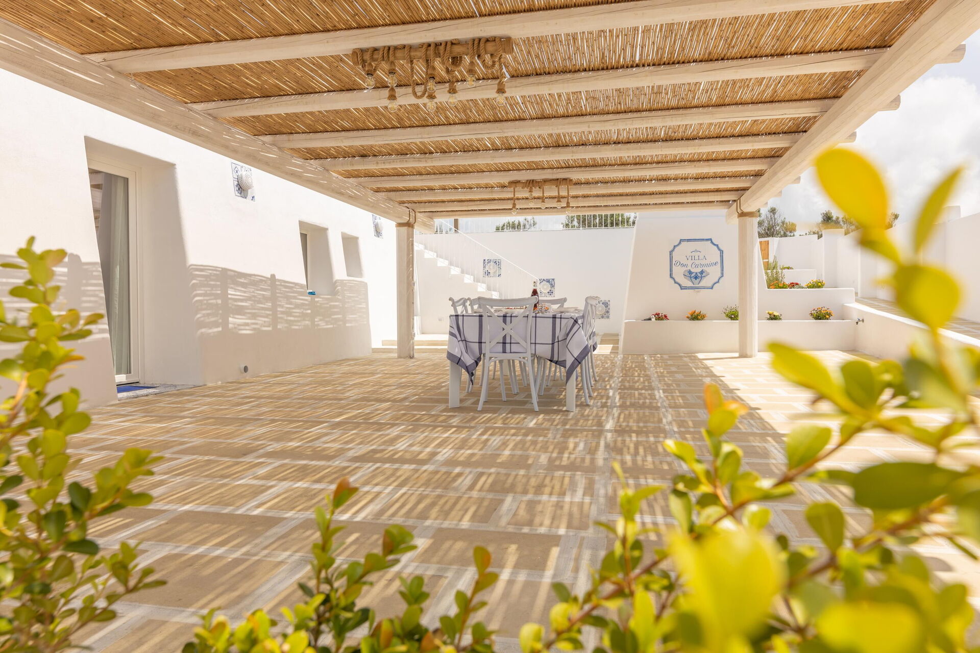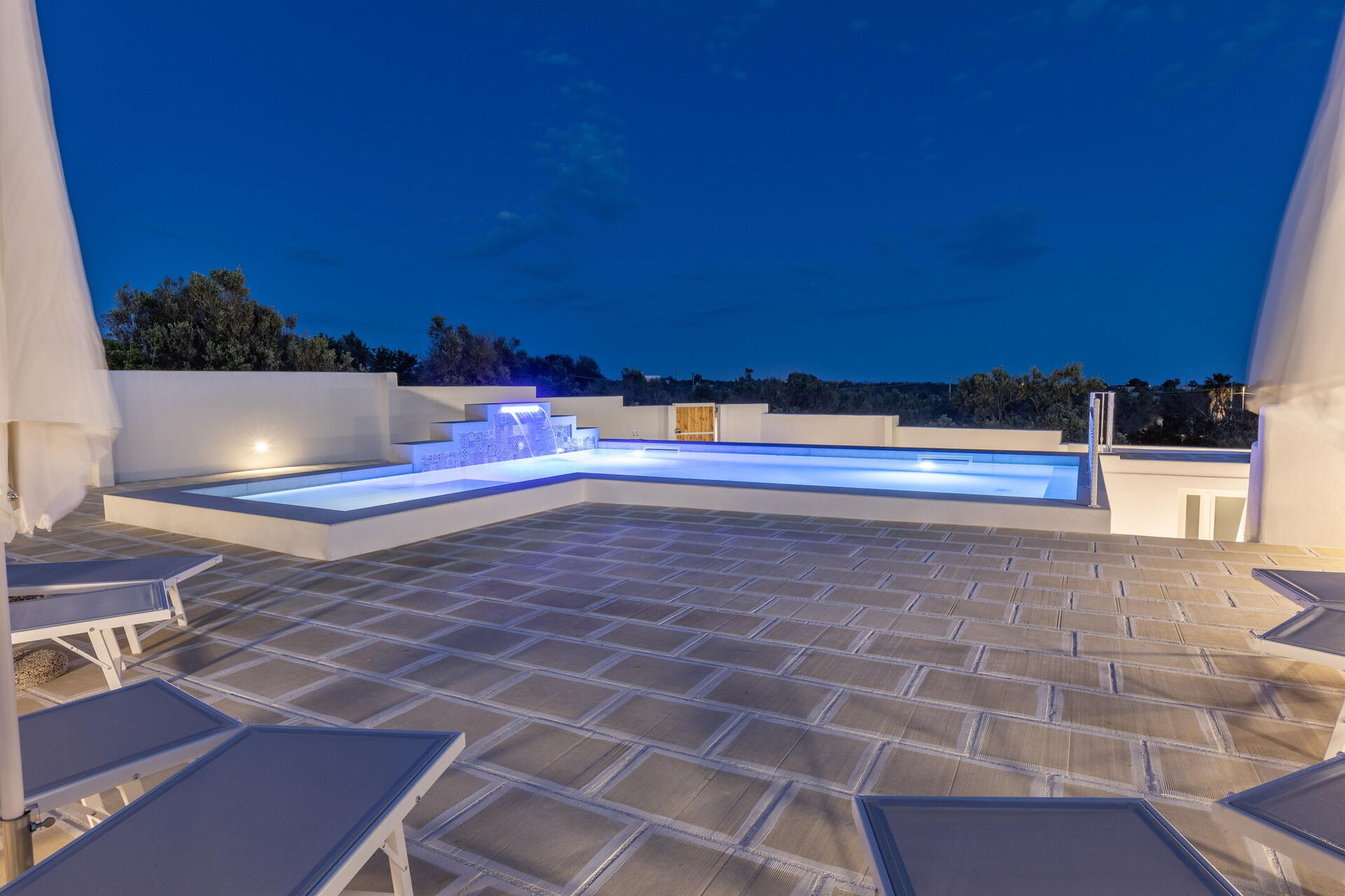 Uteplatserna är rymliga med flera gemensamma utrymmen där gästerna kan njuta av sin vistelse med familj eller vänner. Du kan koppla av på verandan med fantastisk utsikt, utrustad för uteservering, eller i det stora poolområdet, perfekt för oförglömliga stunder under den apuliska solen.