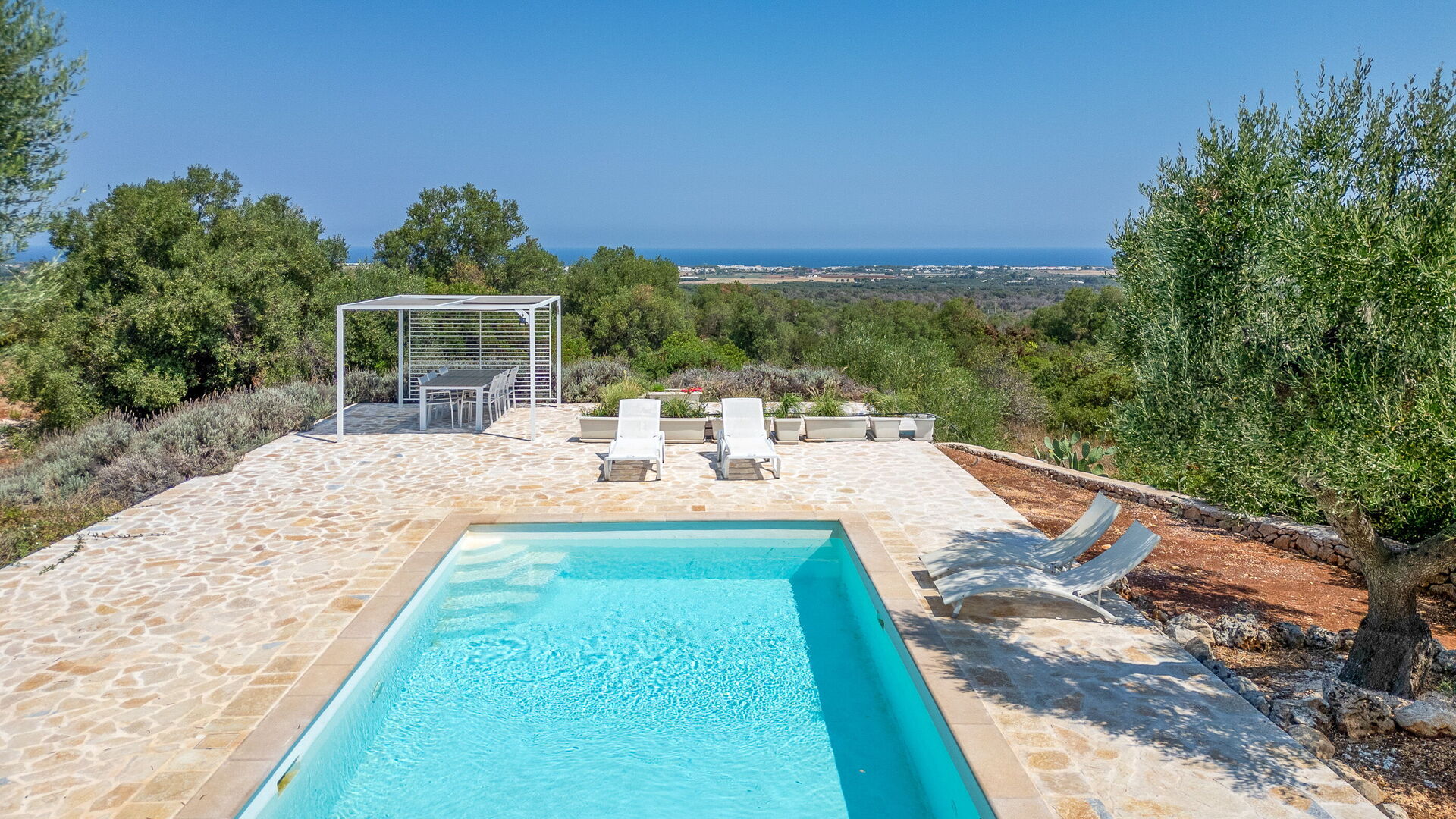 Villa Butterfly är ett underbart semesterhus med pool och fantastisk havsutsikt i Apulien nära Carovigno.