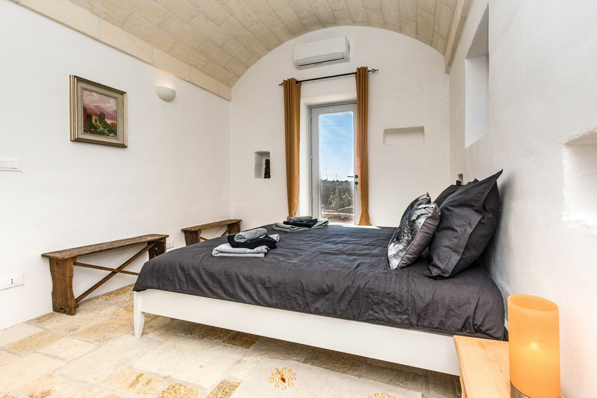 Detta bra hus i Puglia ligger på den vackra landsbygden i Valle d'Itria (Itria-dalen). Huset ligger bara 8 km från Ostuni ("den vita staden"). Detta är en utmärkt utgångspunkt för att uppleva sevärdheter kända för sin konst och historia, som Ostuni, Alberobello, Carovigno, Cisternino, Monopoli och Polignano a Mare.