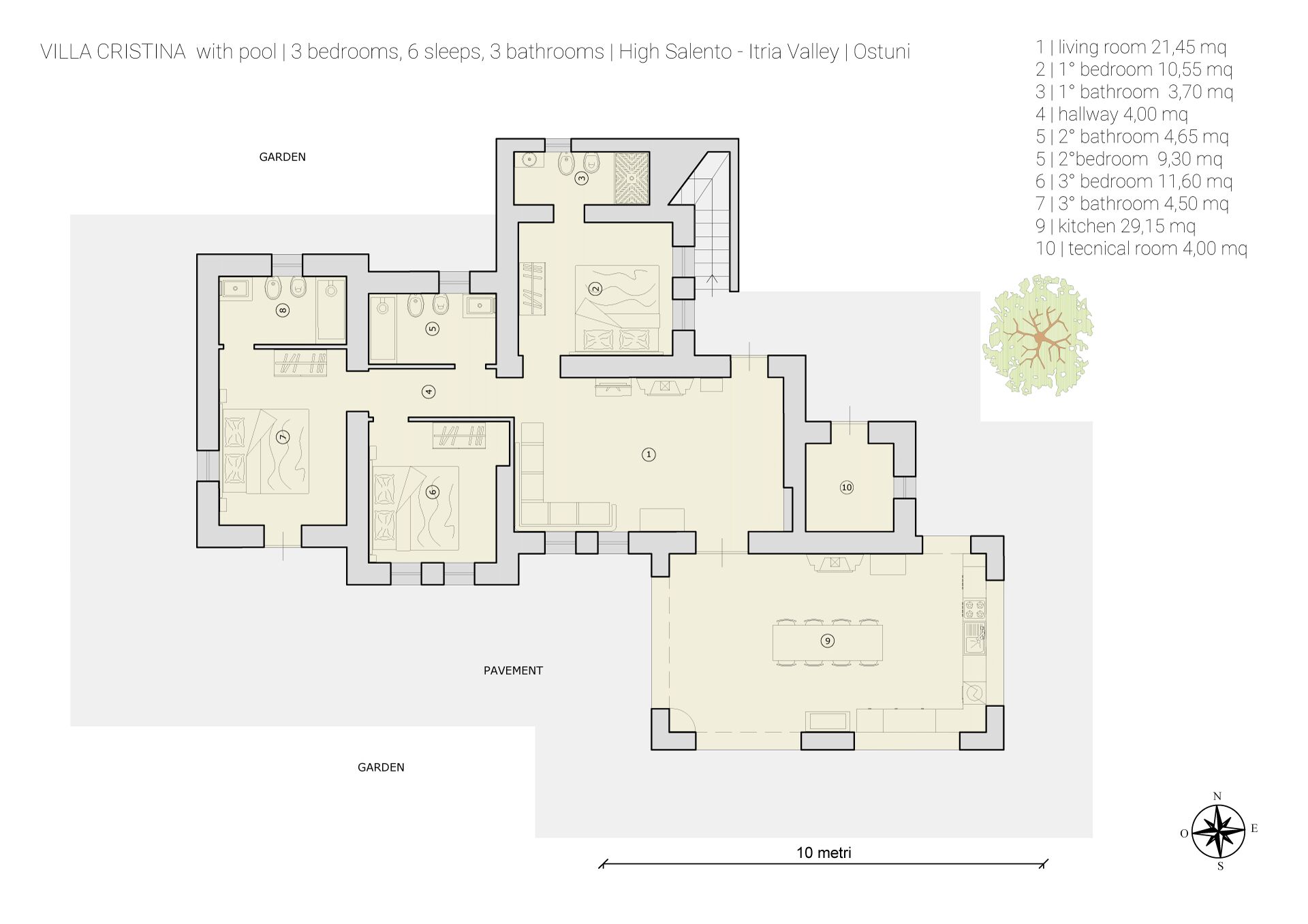 Villa Cristina har en tomt på 8000 m2 med många träd och en stor olivlund. Uteområdet är välutrustat med en fin pool. Interiören är ljus och inbjudande.