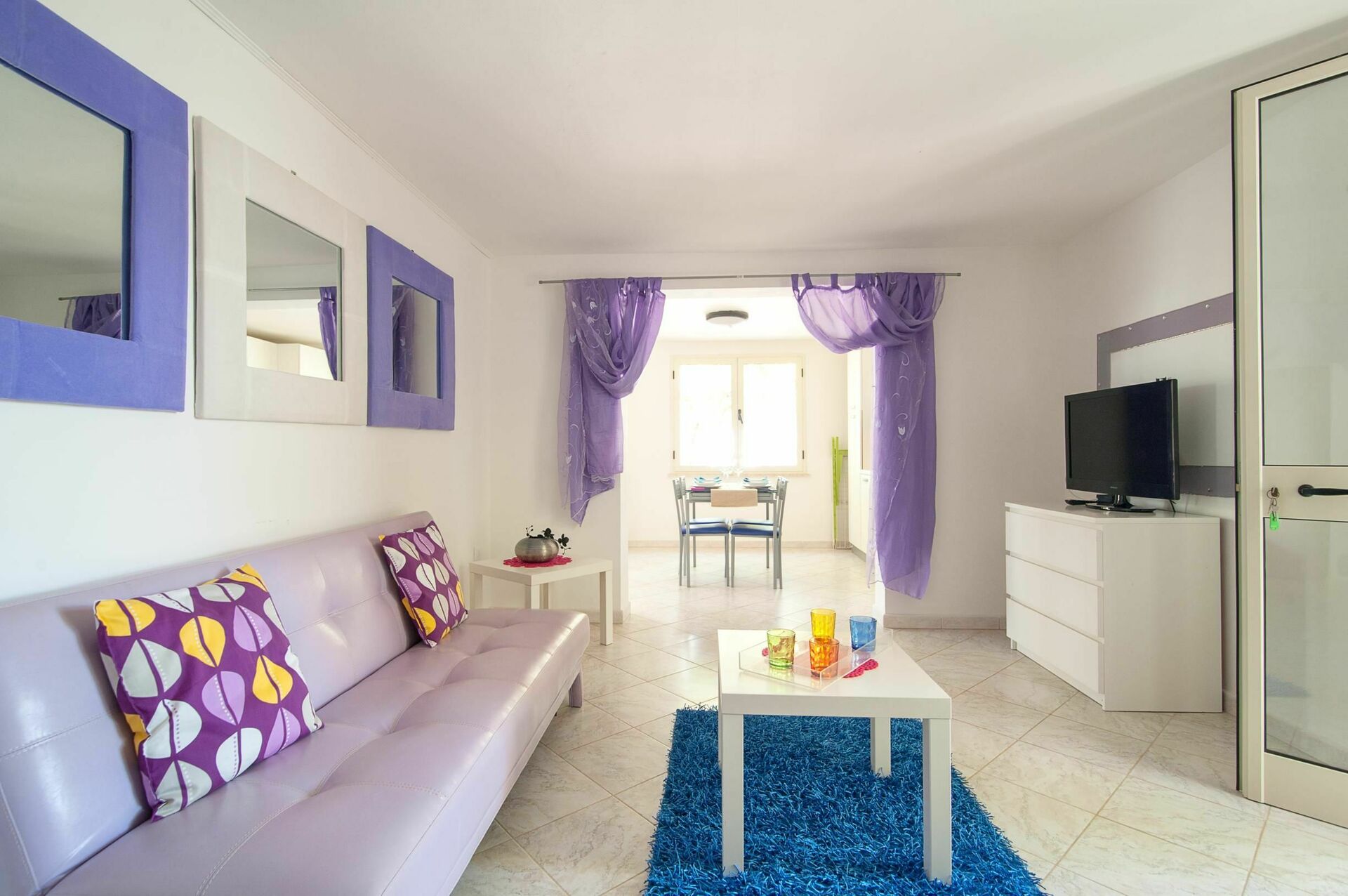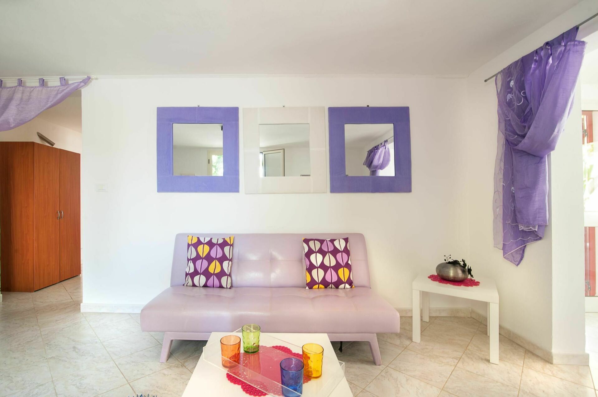 Vardagsrum med dubbel bäddsoffa och 1 enkel bäddsoffa (extra på begäran) , fullt utrustat kök, dubbelrum, tvåbäddsrum, badrum med dusch