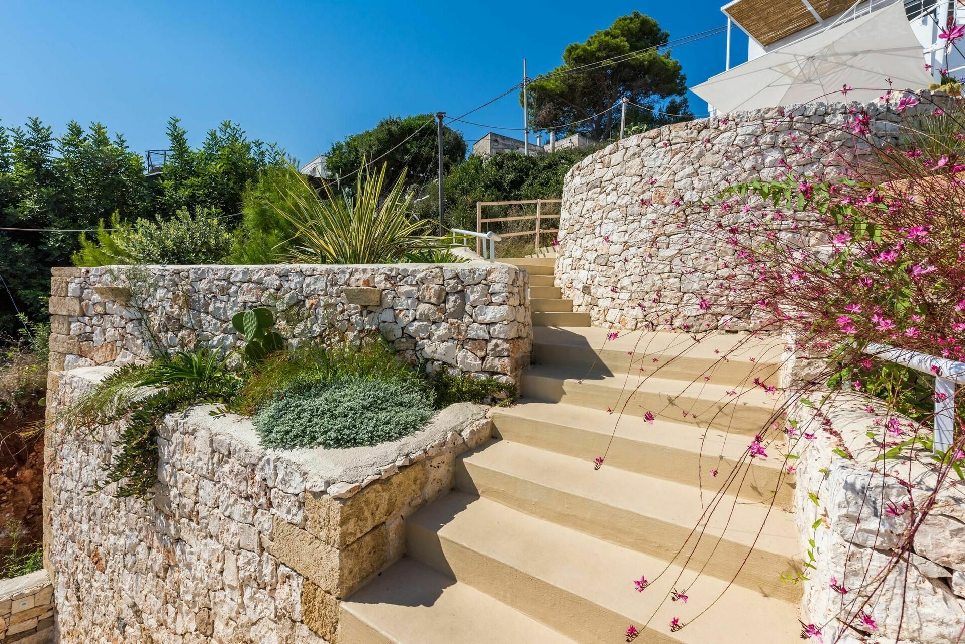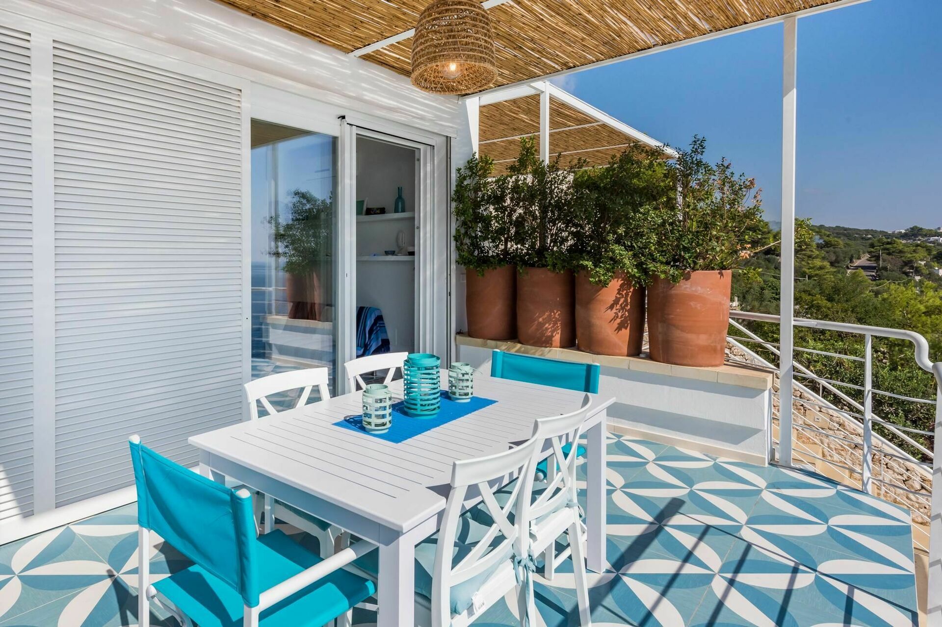 Den vackra, täckta terrassen är möblerad och är perfekt för uteserveringar, vilket gör en semester här speciell. Huset är en utmärkt utgångspunkt för att utforska några av de vackraste landskapen och städarna i Apulien.