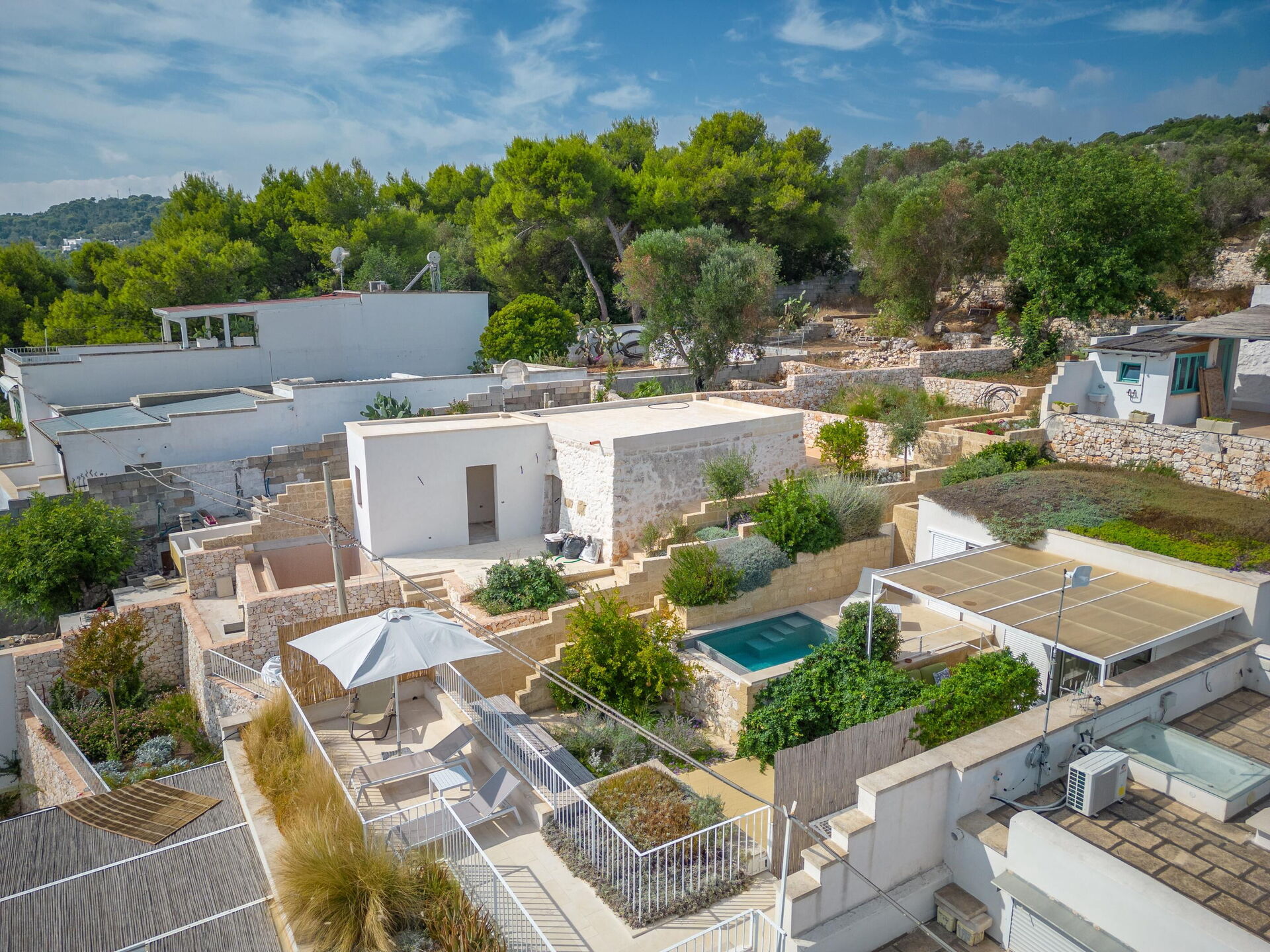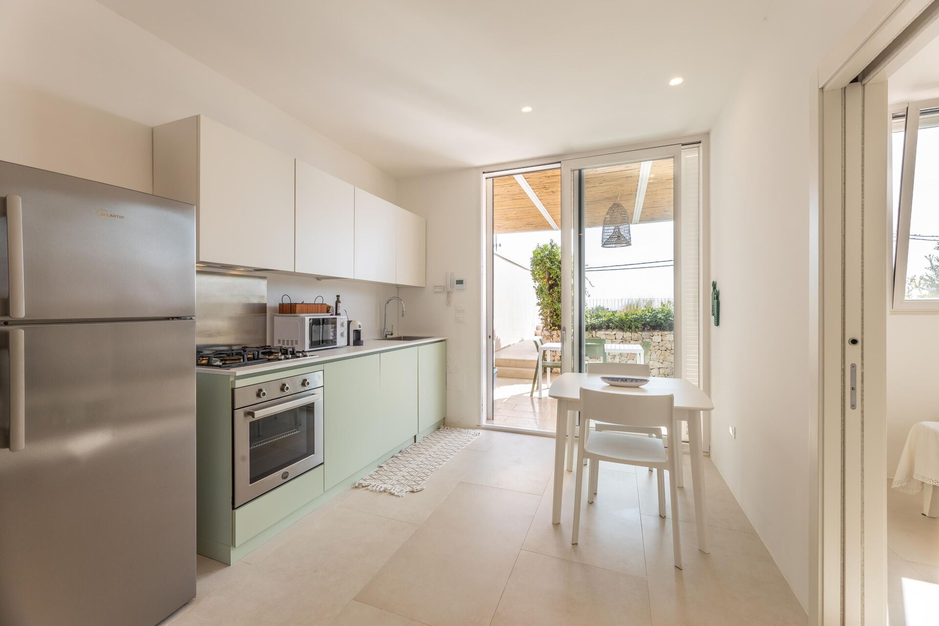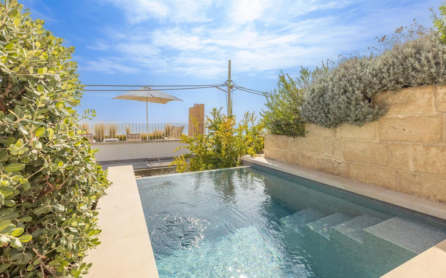 Utanför finns en privat pool som är ett utmärkt alternativ till stranden och perfekt för att svalka sig under soliga italienska dagar. Dessutom finns det en terrass med panoramautsikt över havet och solstolar och parasoller. Ett område med bord och stolar är den perfekta platsen för att äta utomhus och anordna middagar under bar himmel.