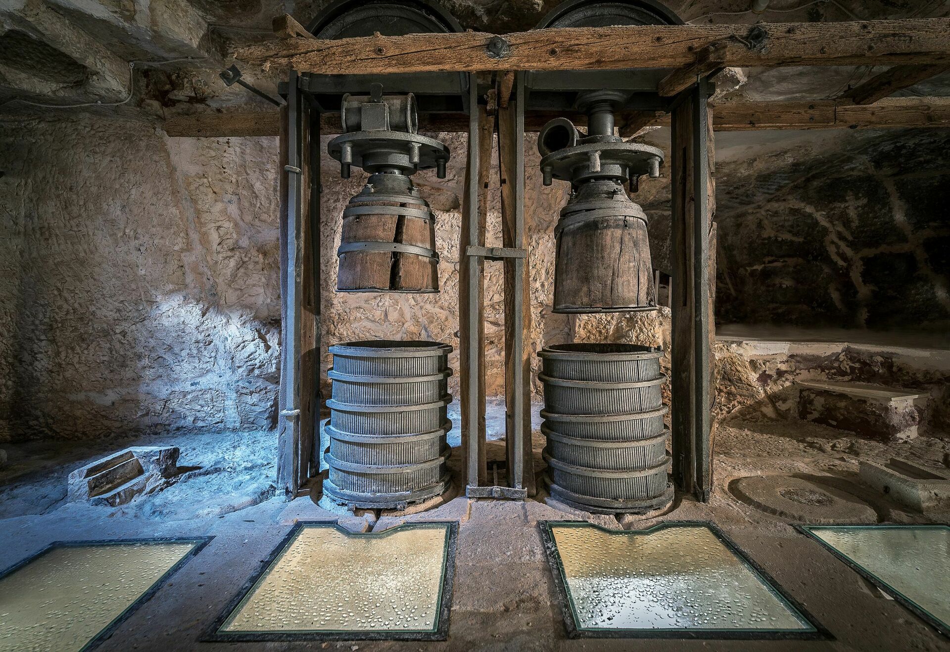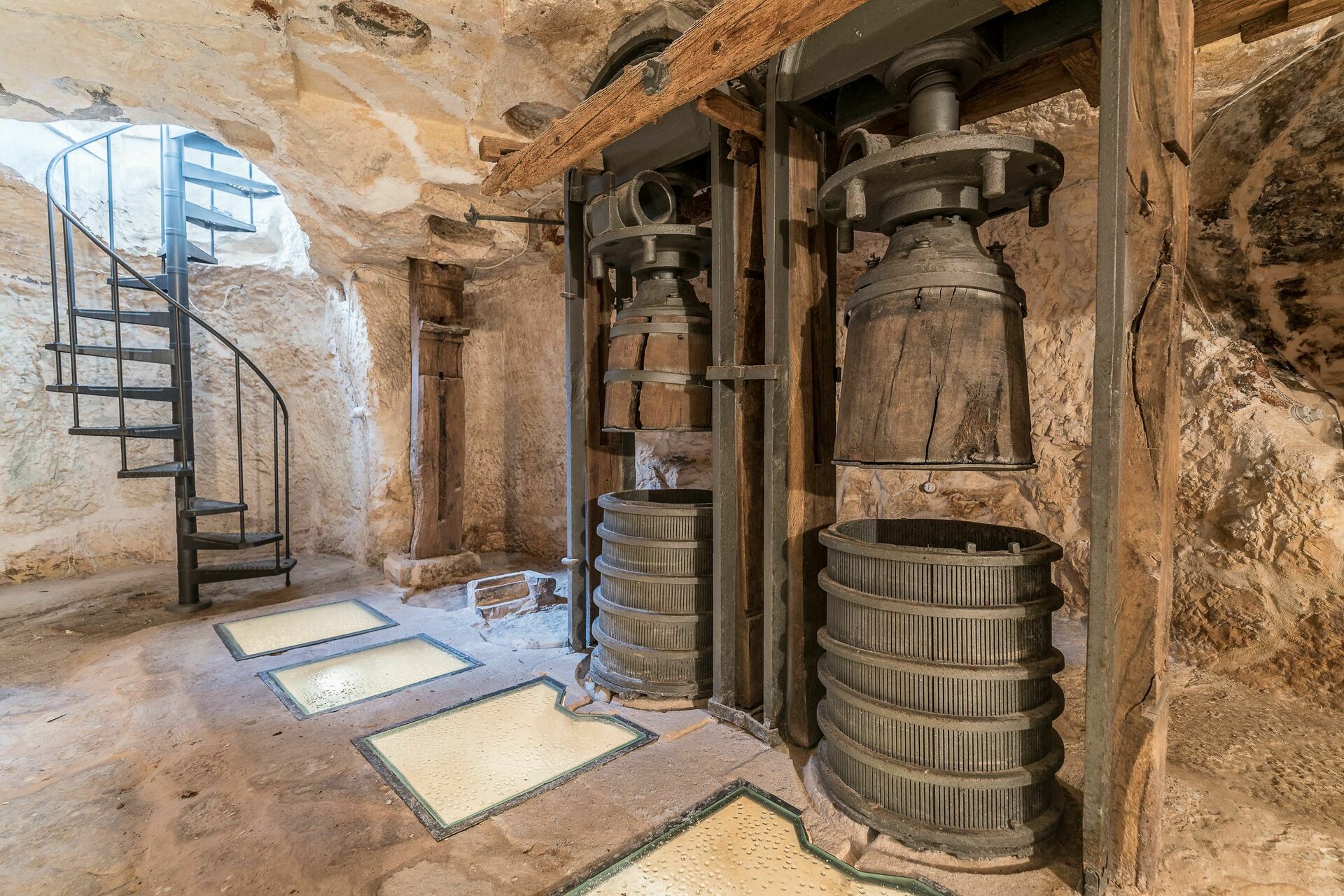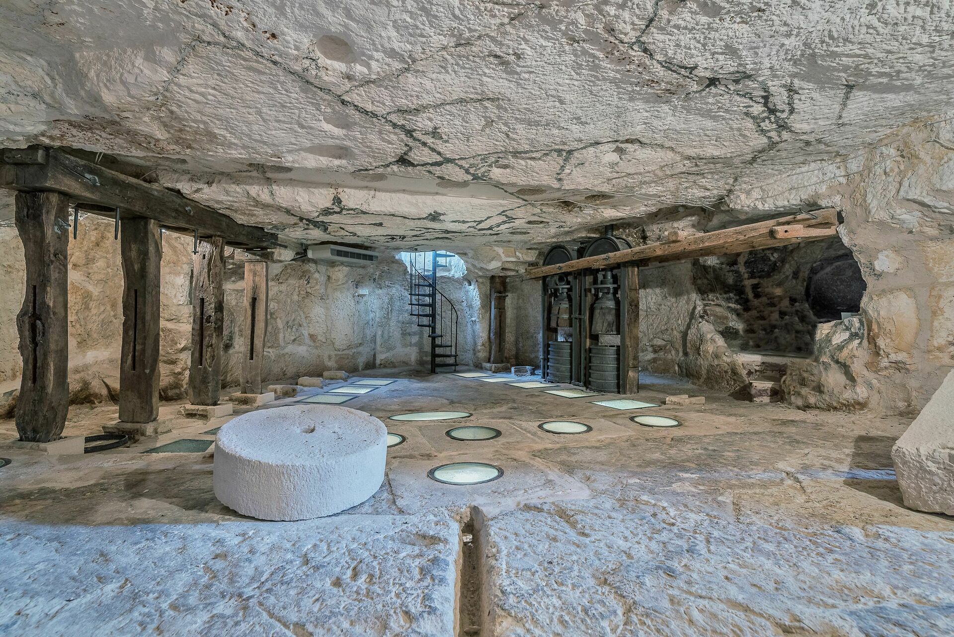 Undervåningen: Underjordisk olivolja kvarn.