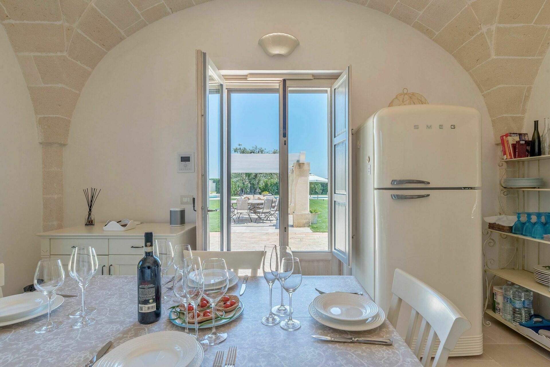 We stayed with our whole family of 7. One of the best houses we have ever stayed! The house, pool and gardens were beautiful. The location near Ostuni was perfect, secluded but only 10 mins away from town. The house was impeccably clean and extremely well appointed. Finally it was really easy to contact the management team for any questions or issues.