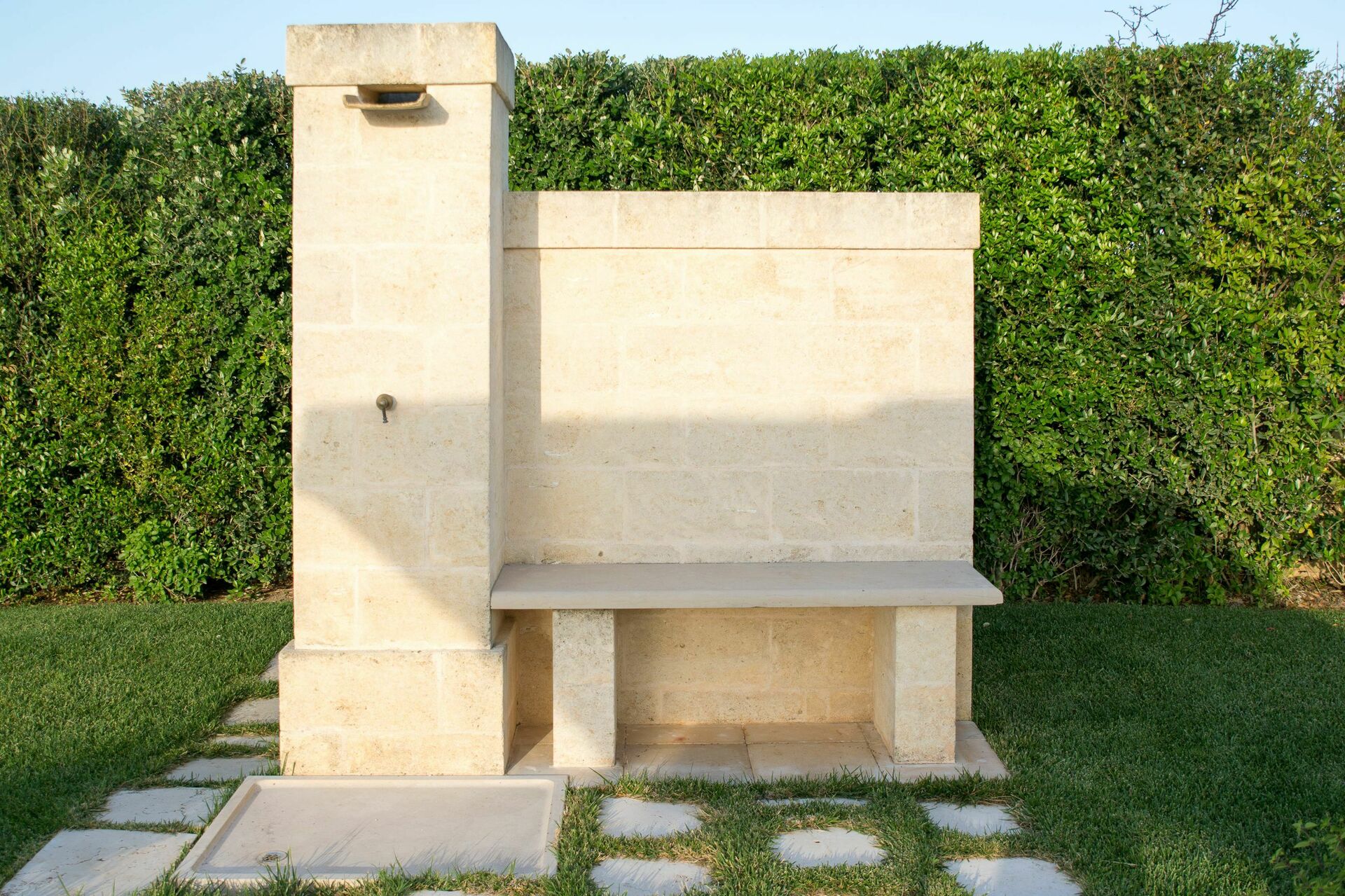 - Utomhusdusch i tuff vid poolområdet