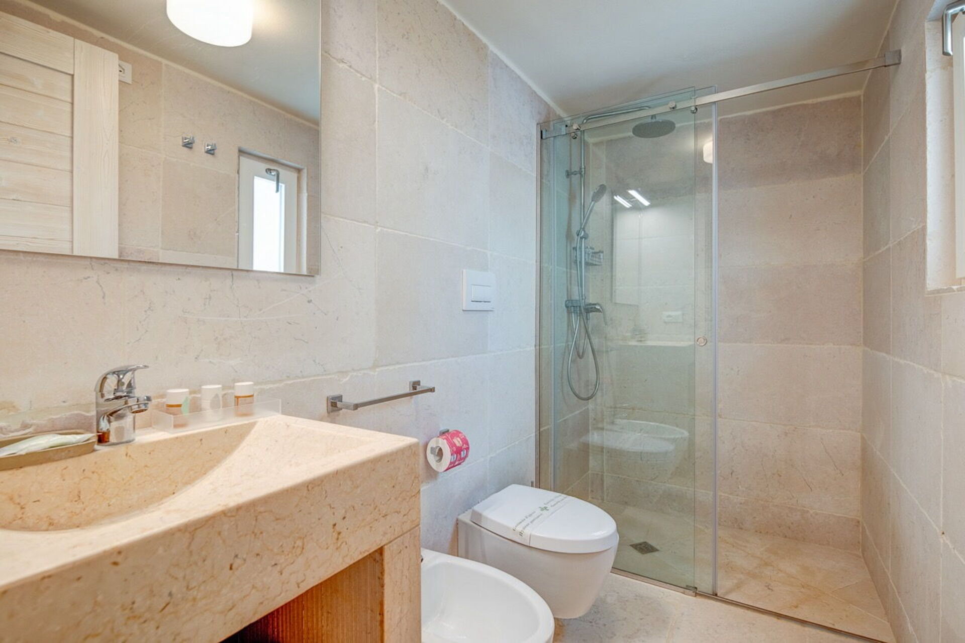 Bottenvåning: Stort vardagsrum med TV och bar; 3 dubbelrum, alla med king size-säng, eget badrum med dusch och tillgång till uteplats; dubbelrum med stort privat badrum med dusch (tillgängligt från utsidan och från insidan via ett av de andra sovrummen); TOALETT.