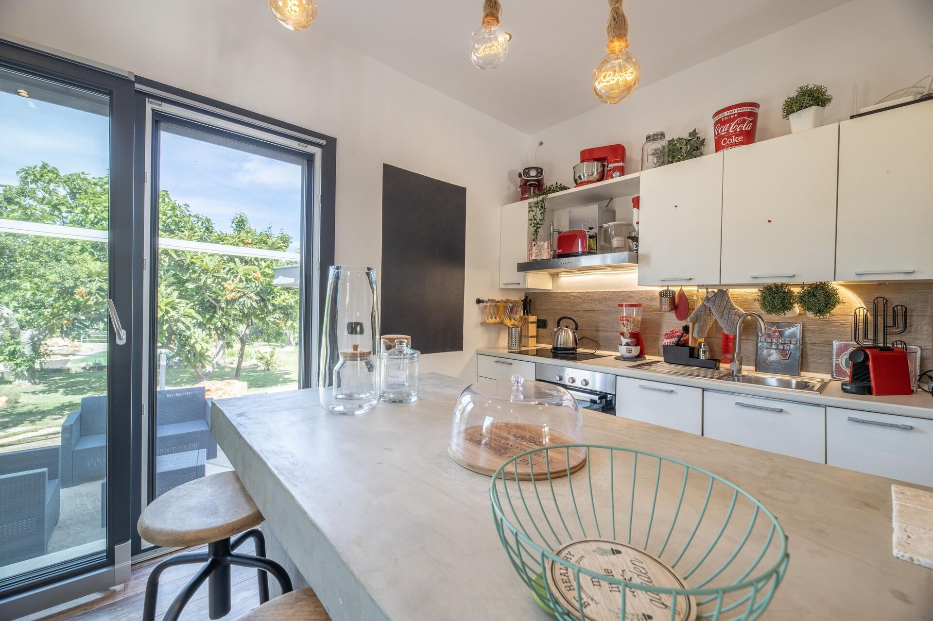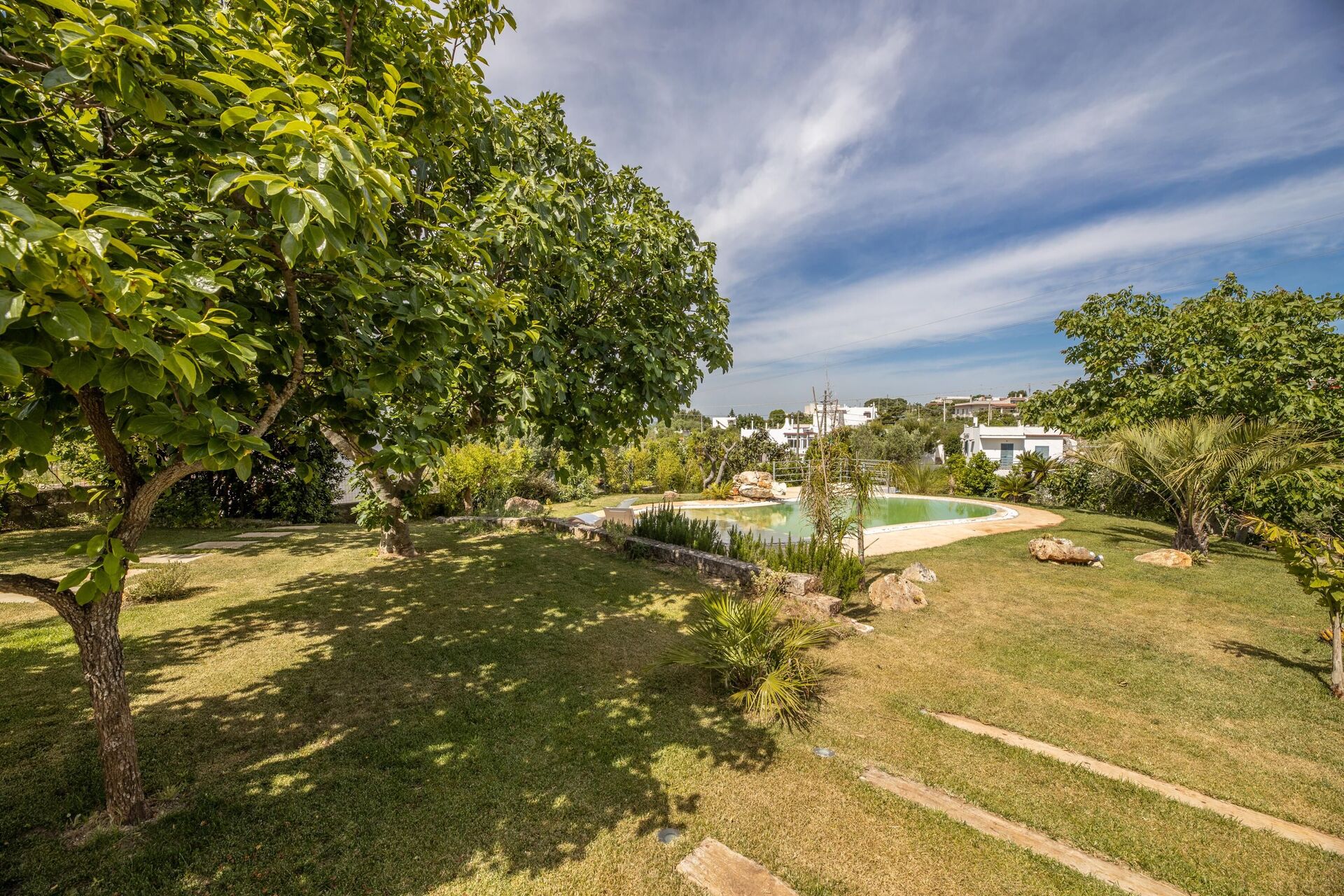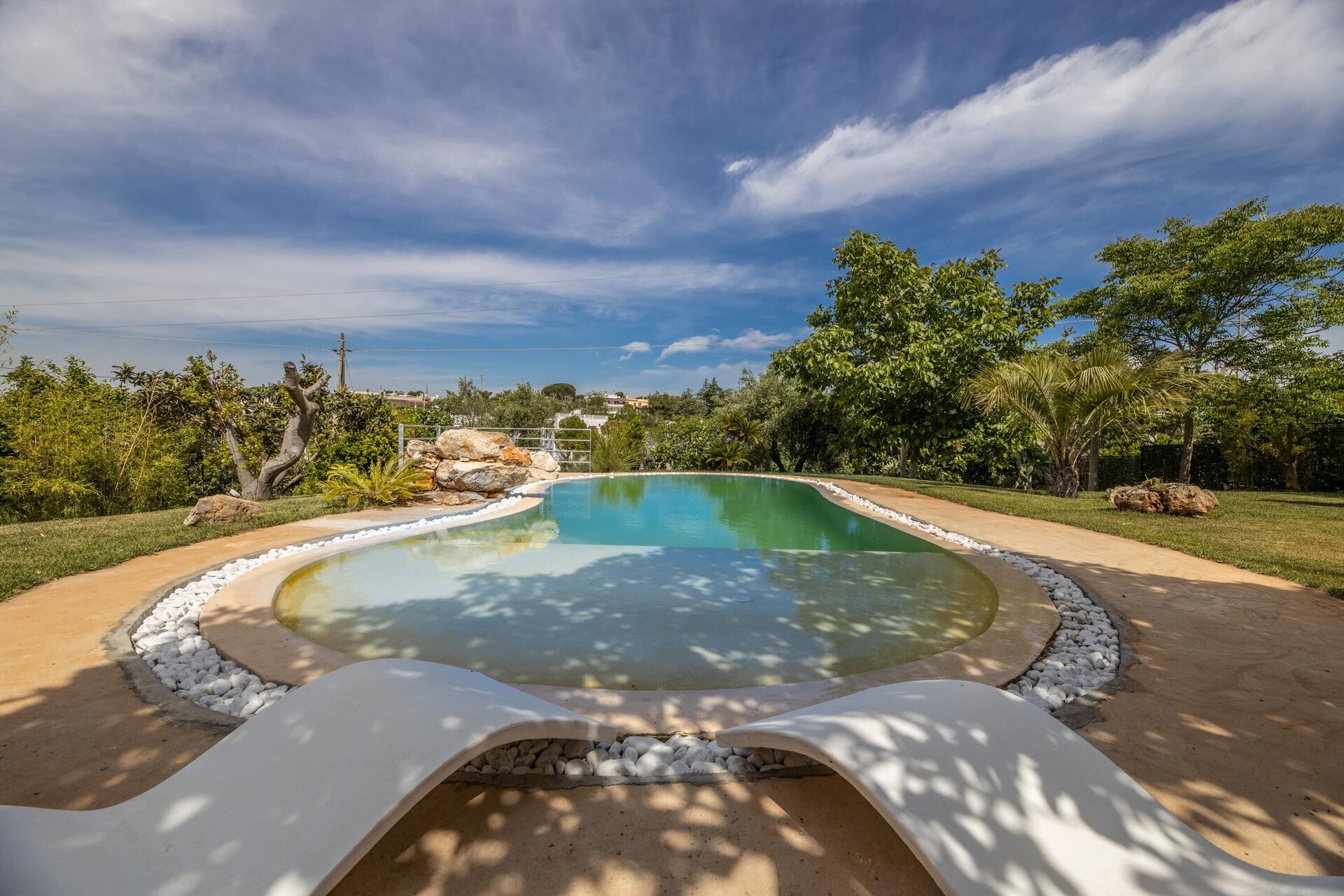 I den stora trädgården finns en trevlig privat pool och flera områden att njuta och koppla av.