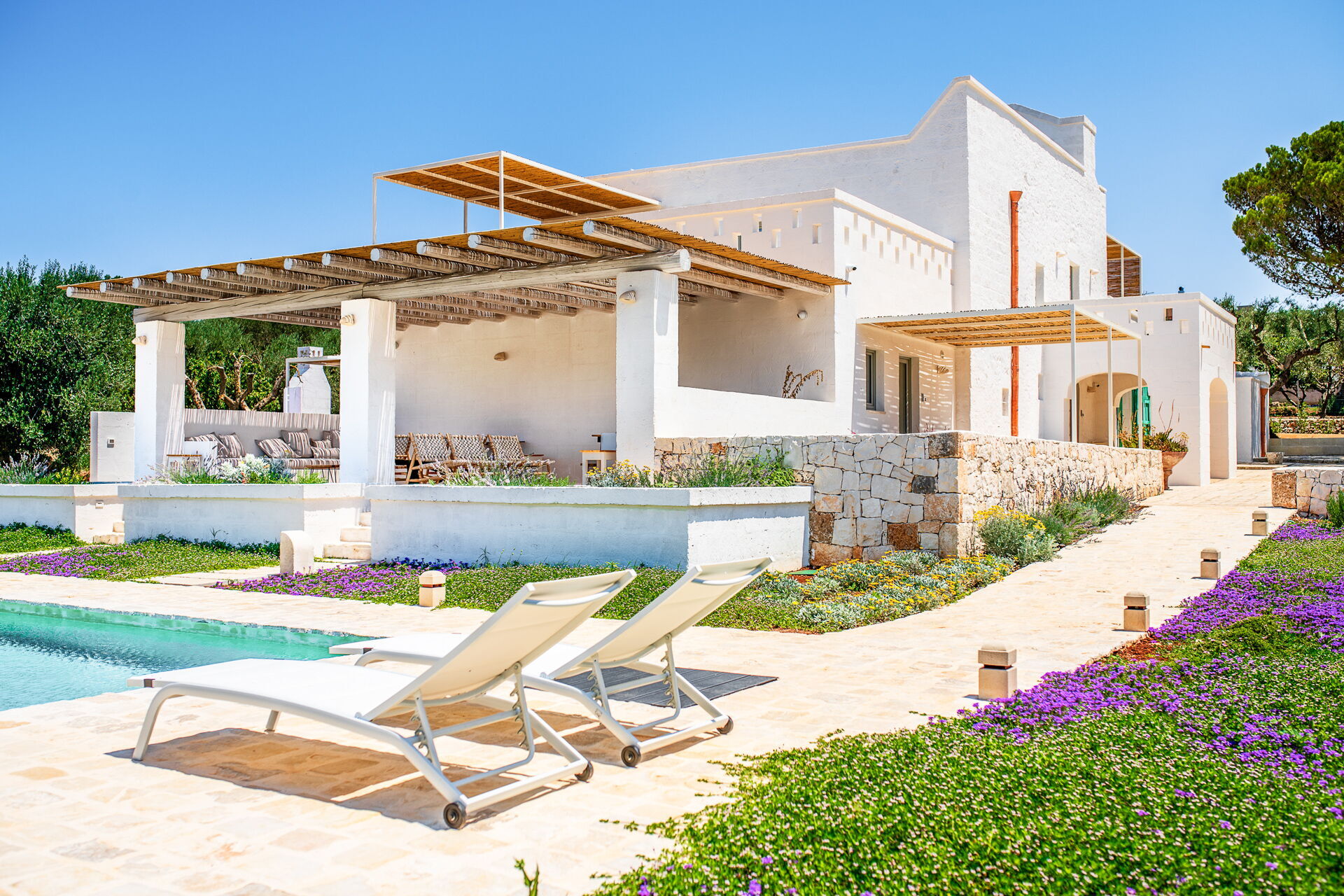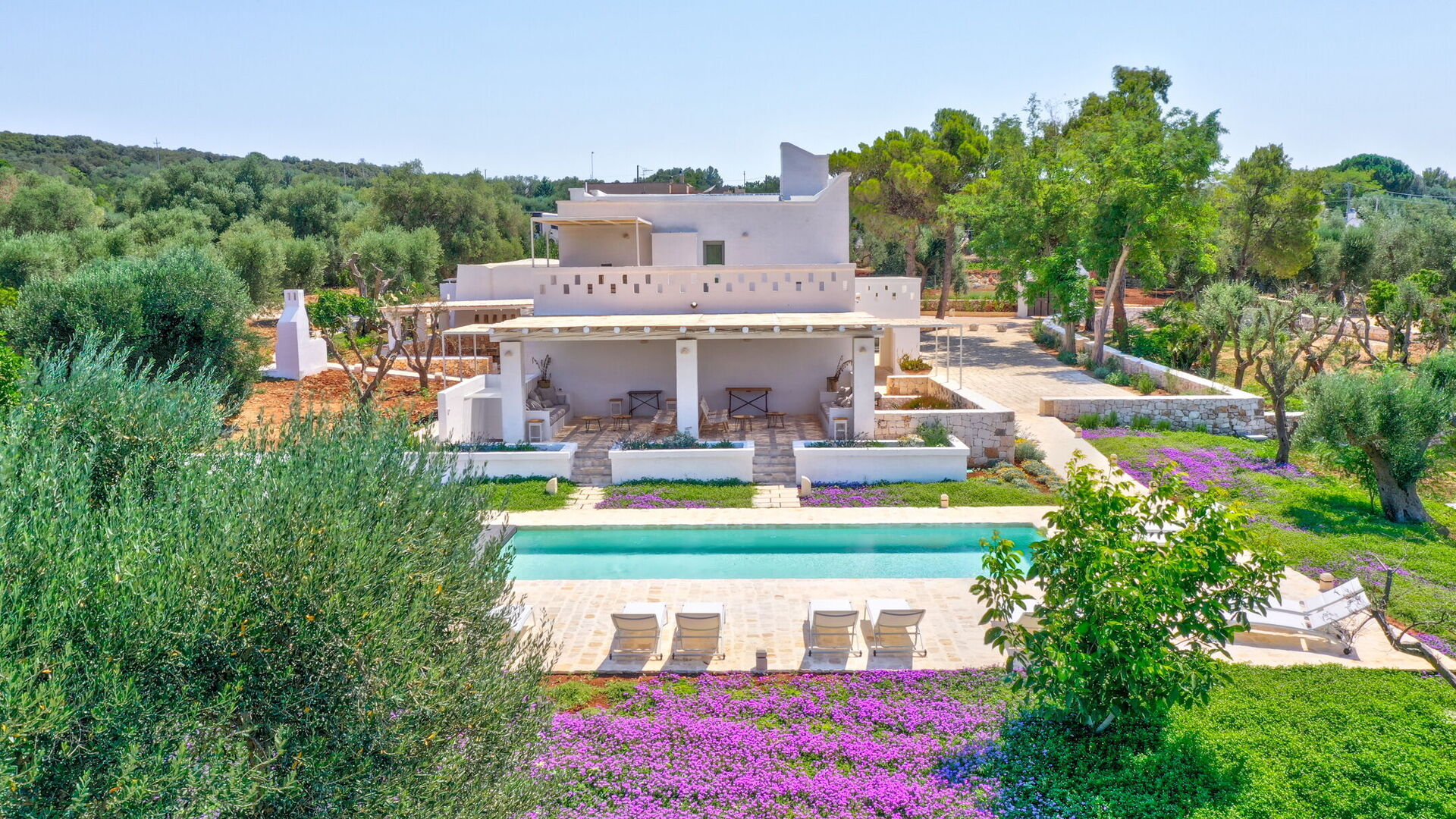 Masseria Borgopietra är en lyxig modern villa på landsbygden nära Ostuni i Puglia.