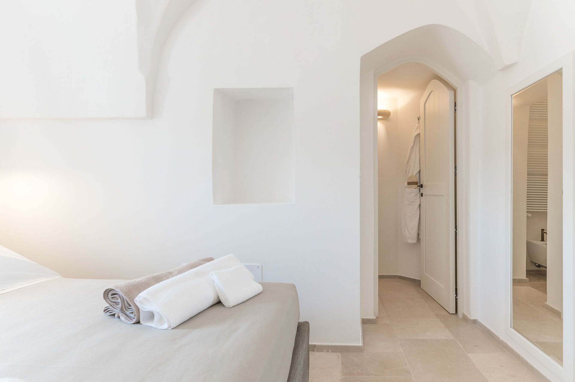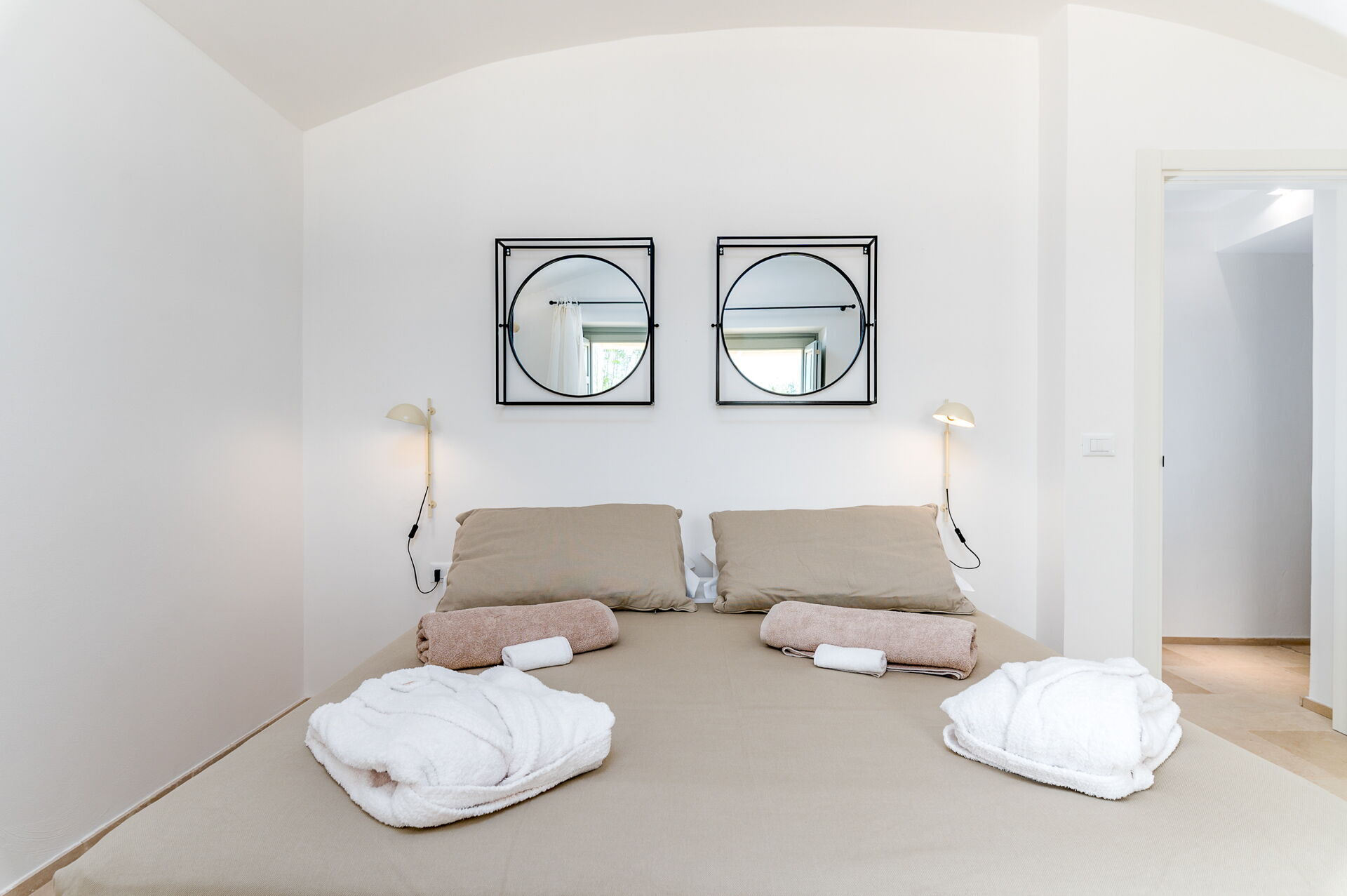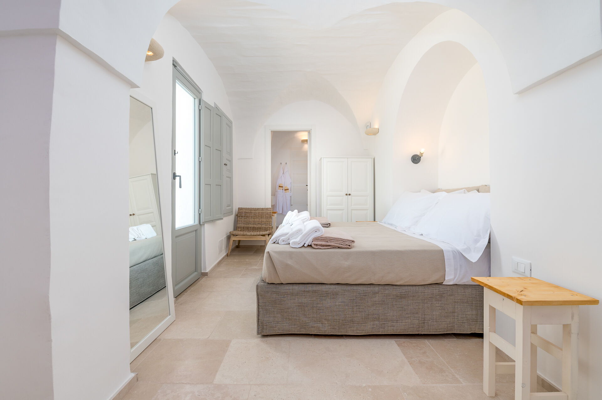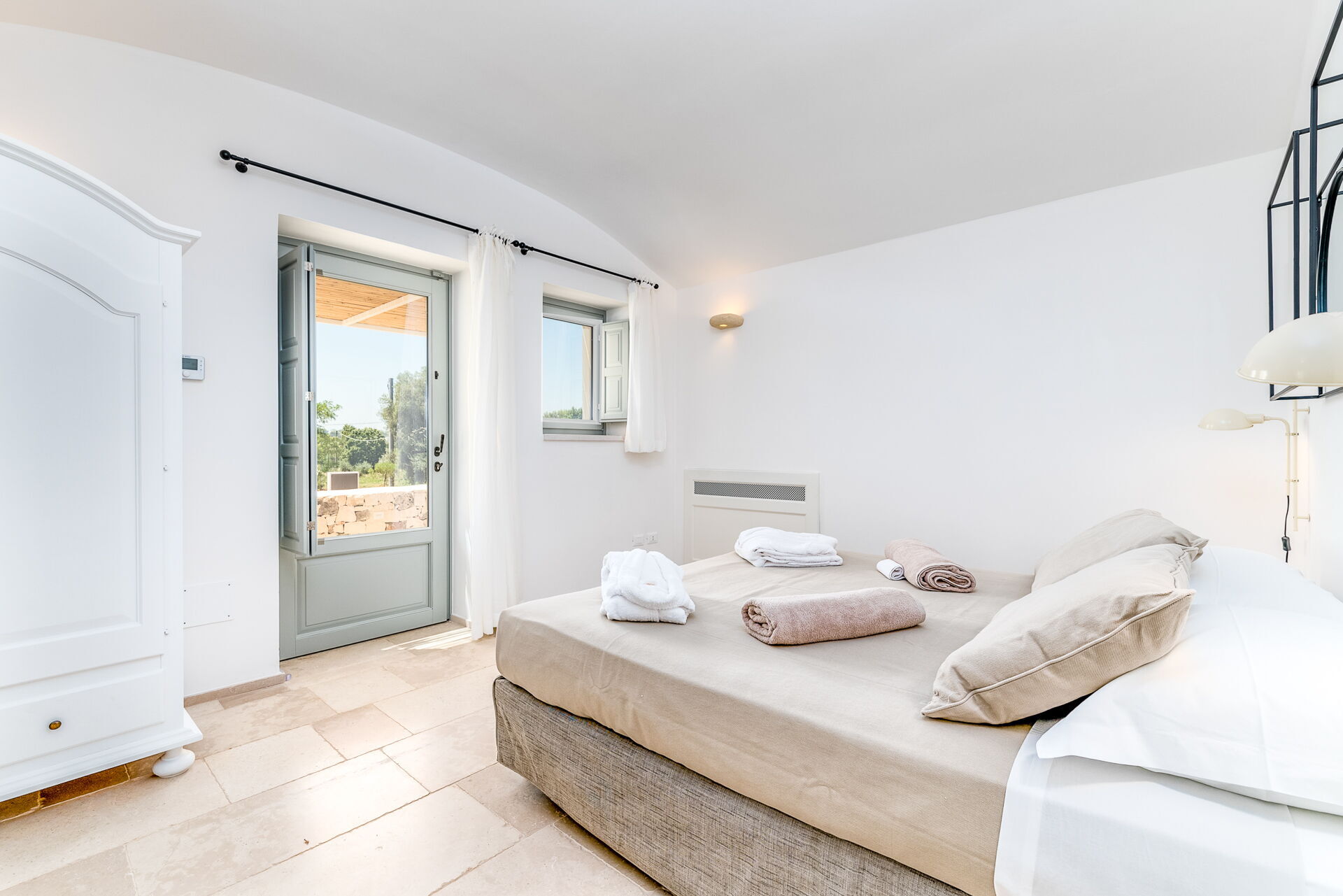 Alla sovrum har direkt tillgång till en terrass med bord och fåtölj.