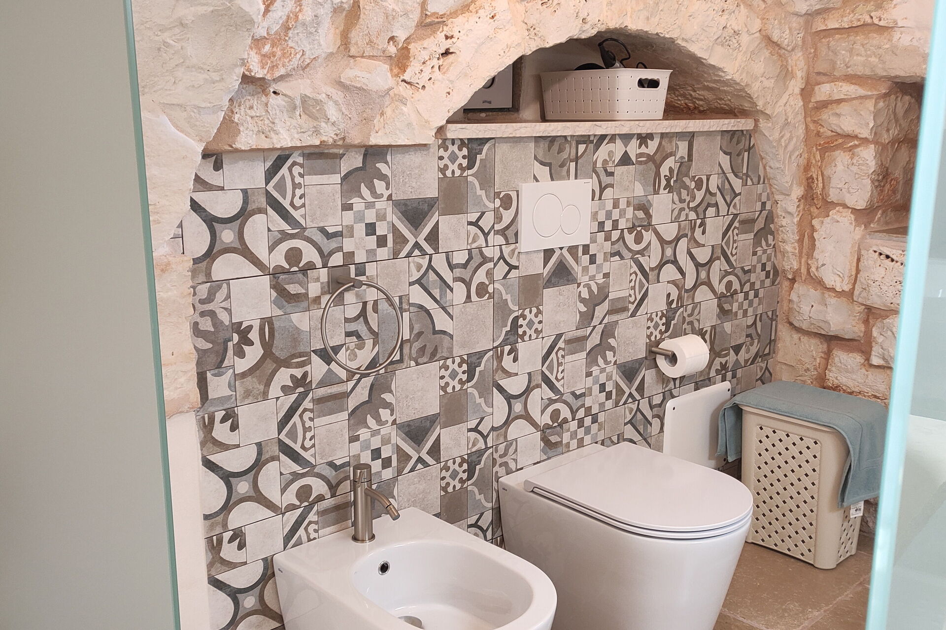 Den Gästen dieses einzigartigen Trullo steht zur Verfügung: 3 Schlafzimmer und 2 Bäder für 6/7 Personen. Ausgestatteter und eingezäunter Garten. Klimaanlage in jedem Schlafzimmer und in den Wohnzimmern. Privates Schwimmbad zum exklusiven Gebrauch der Gäste. Aussendusche neben dem Schwimmbad, Überdachte und ausgestattete Terrasse mit Tisch, Stühlen, TV, Barbecue und Holzofen. Internetzugang (W-LAN) gratis. Parkplatz