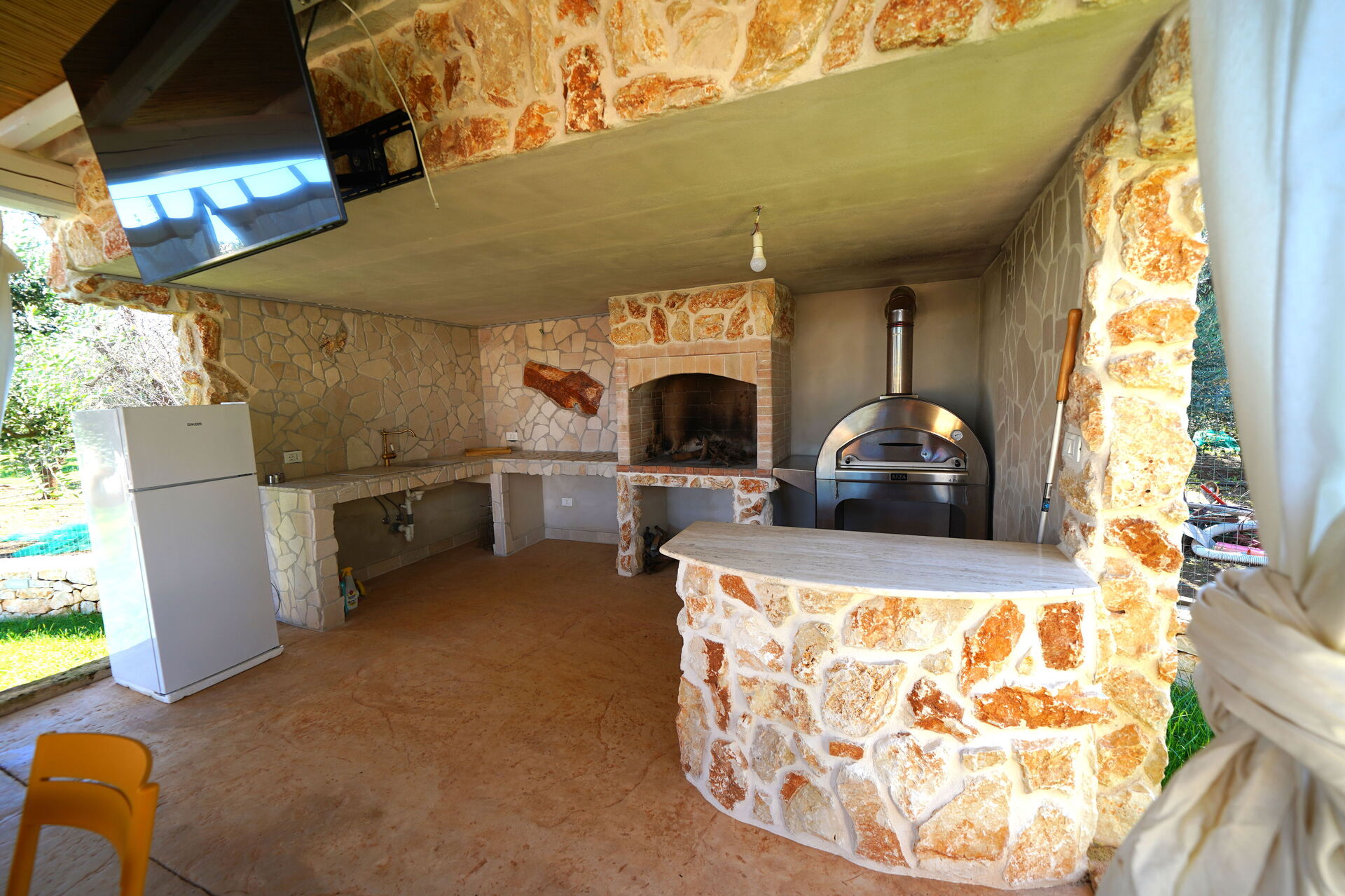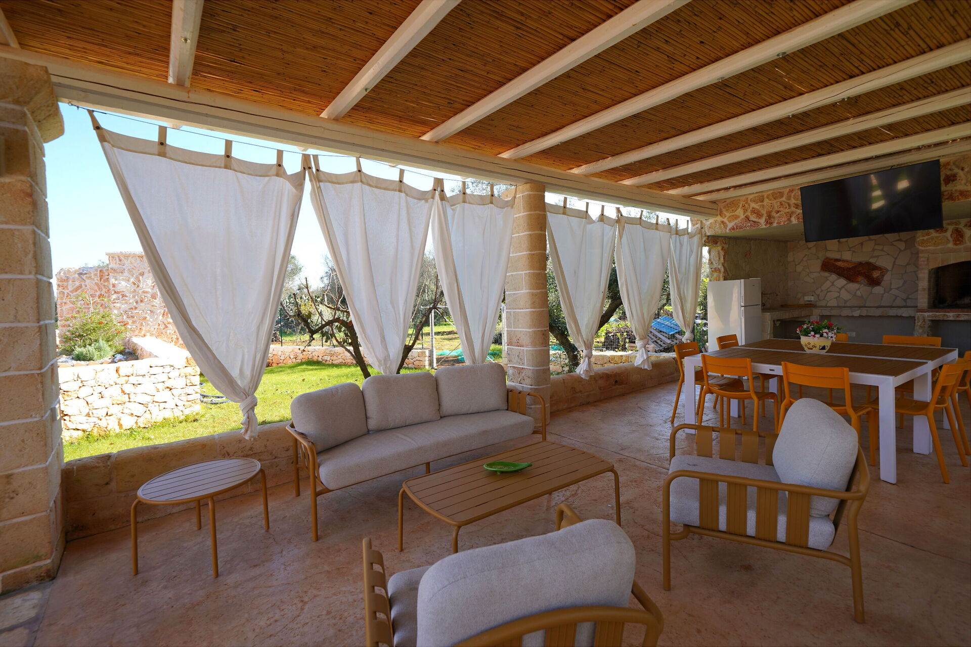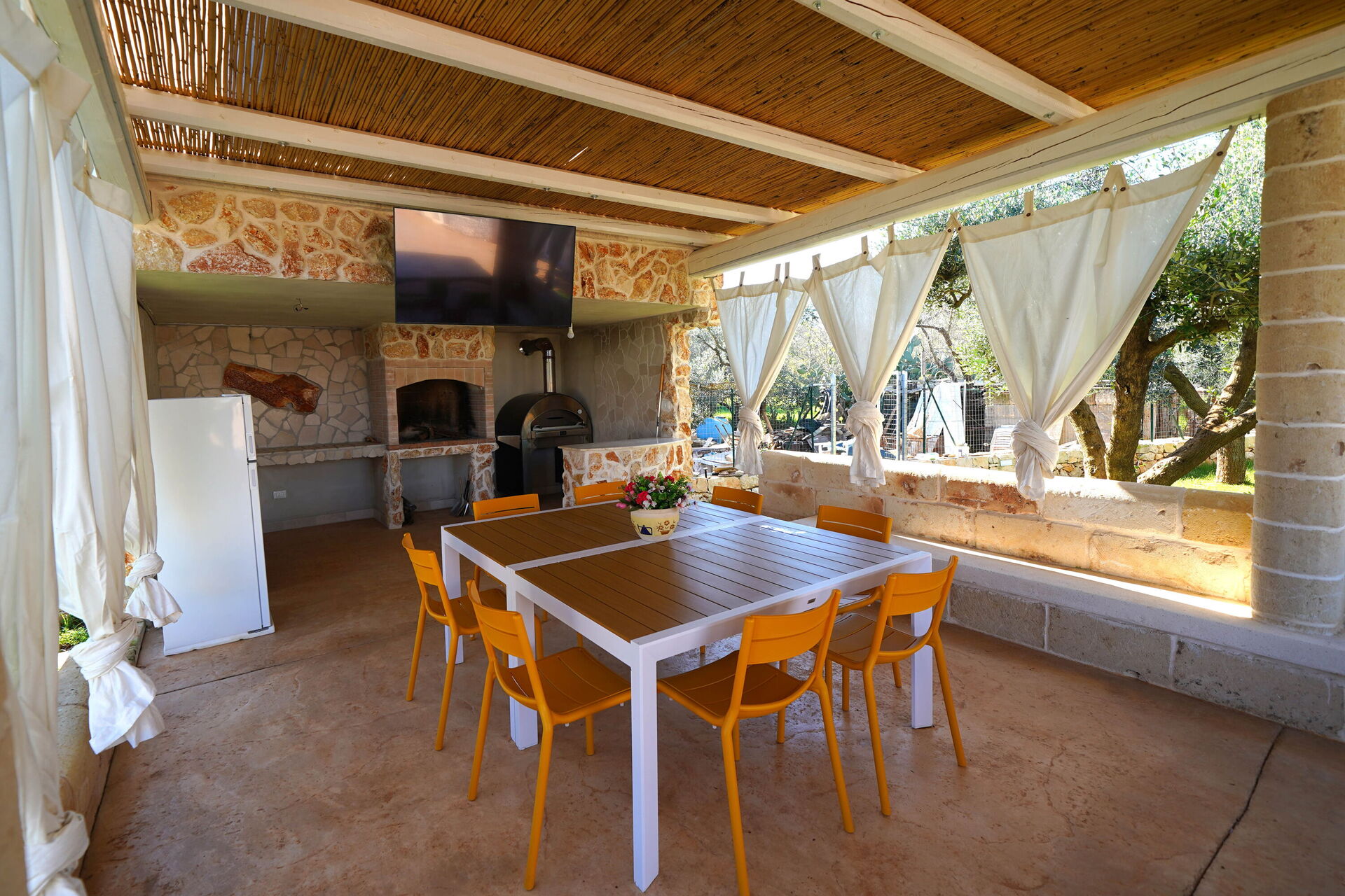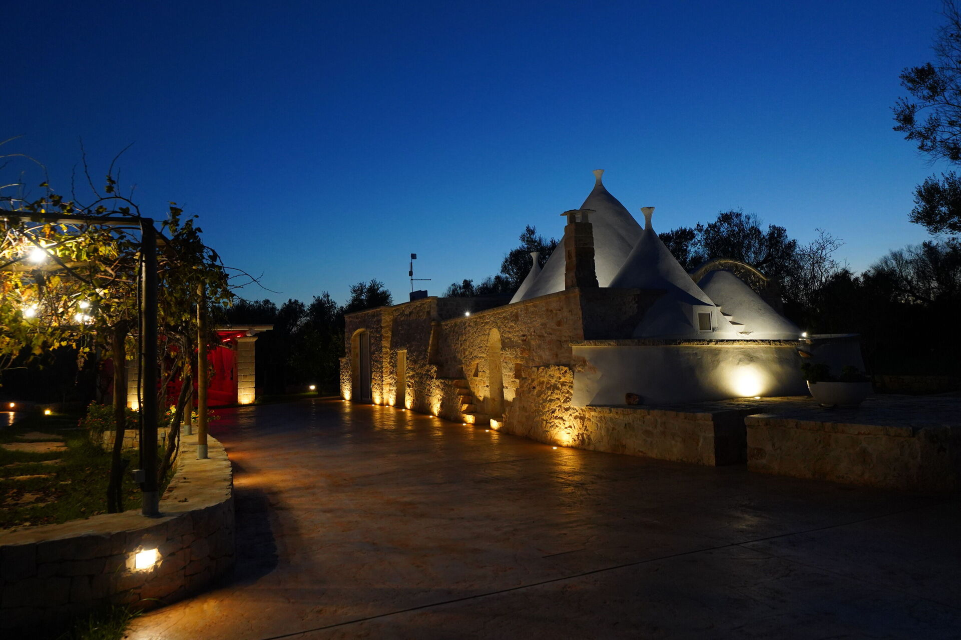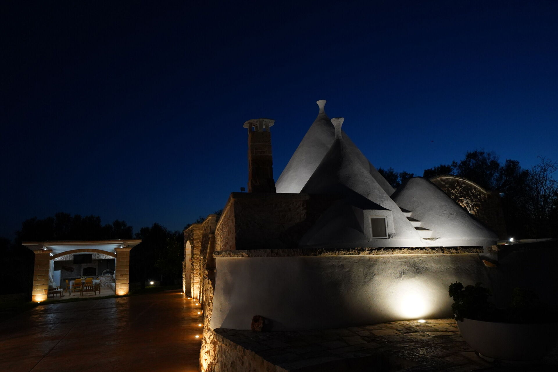 Utomhus omges Trullo Samanta av stora, välskötta ytor med frukt- och olivträd.