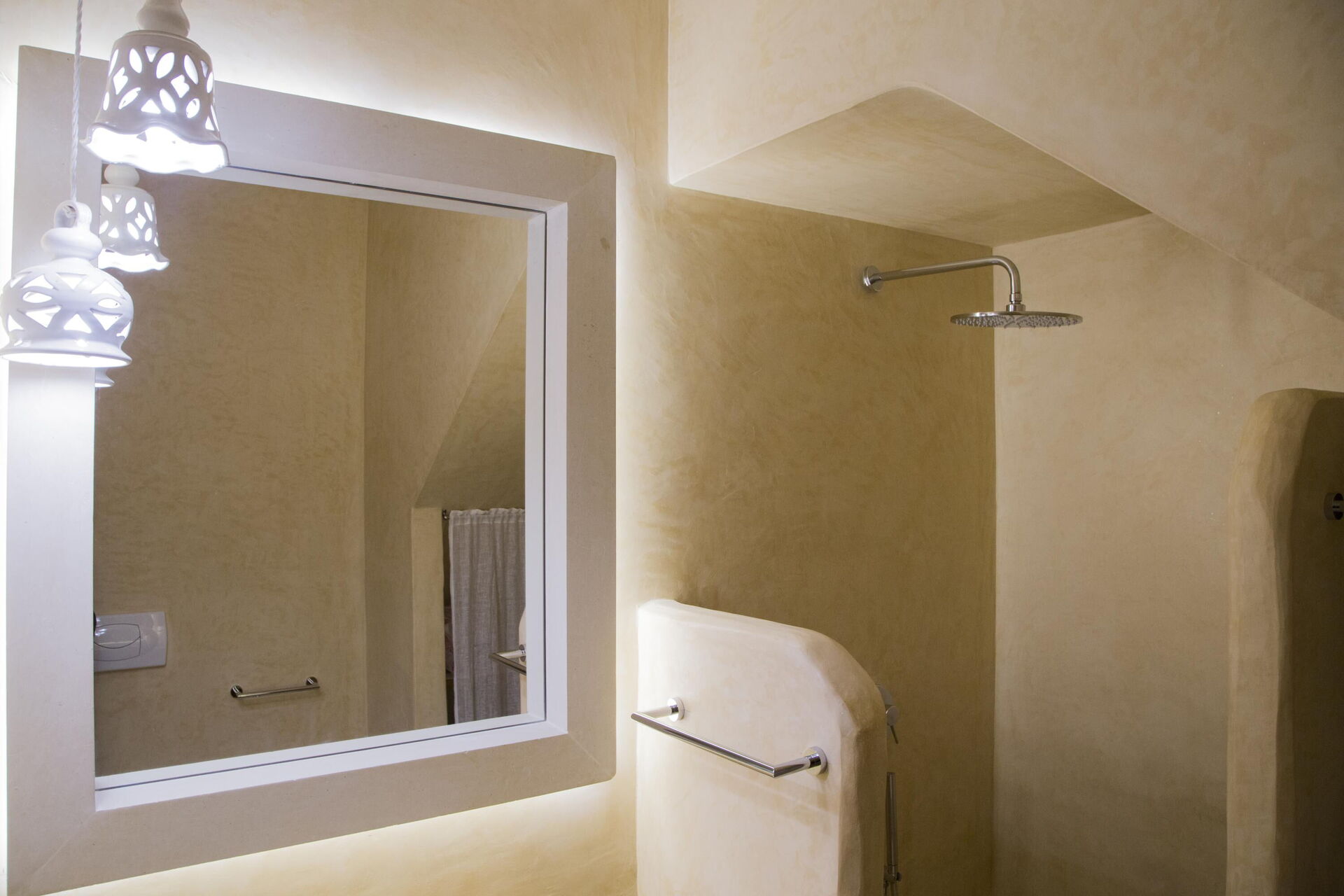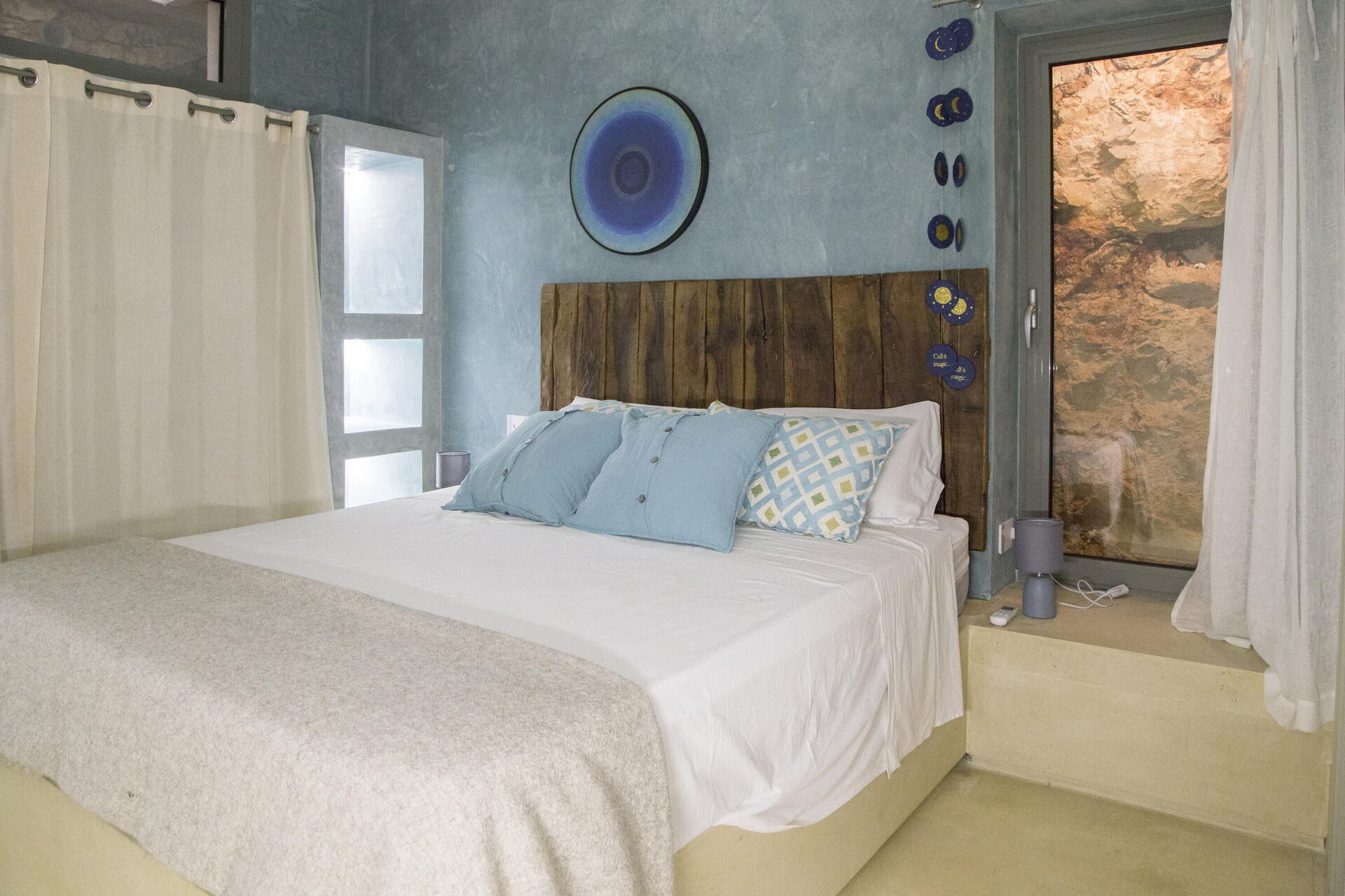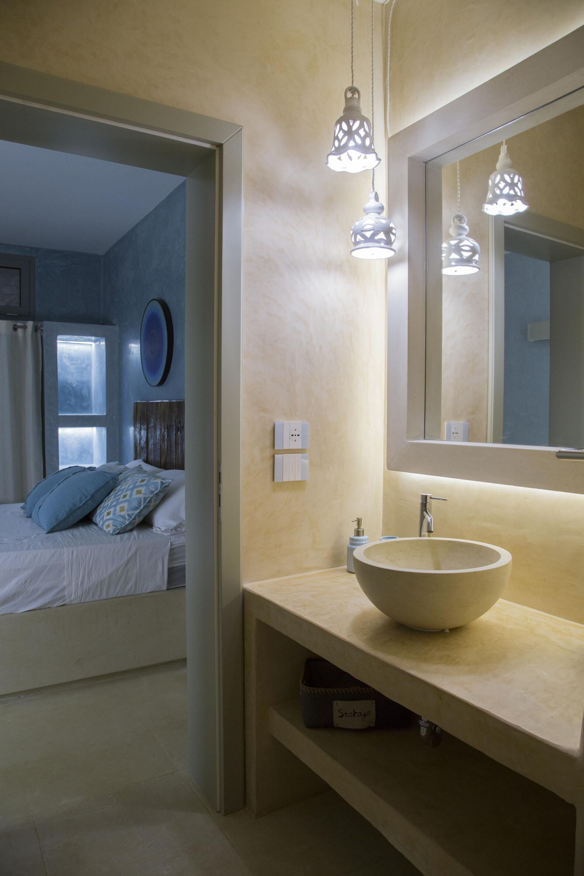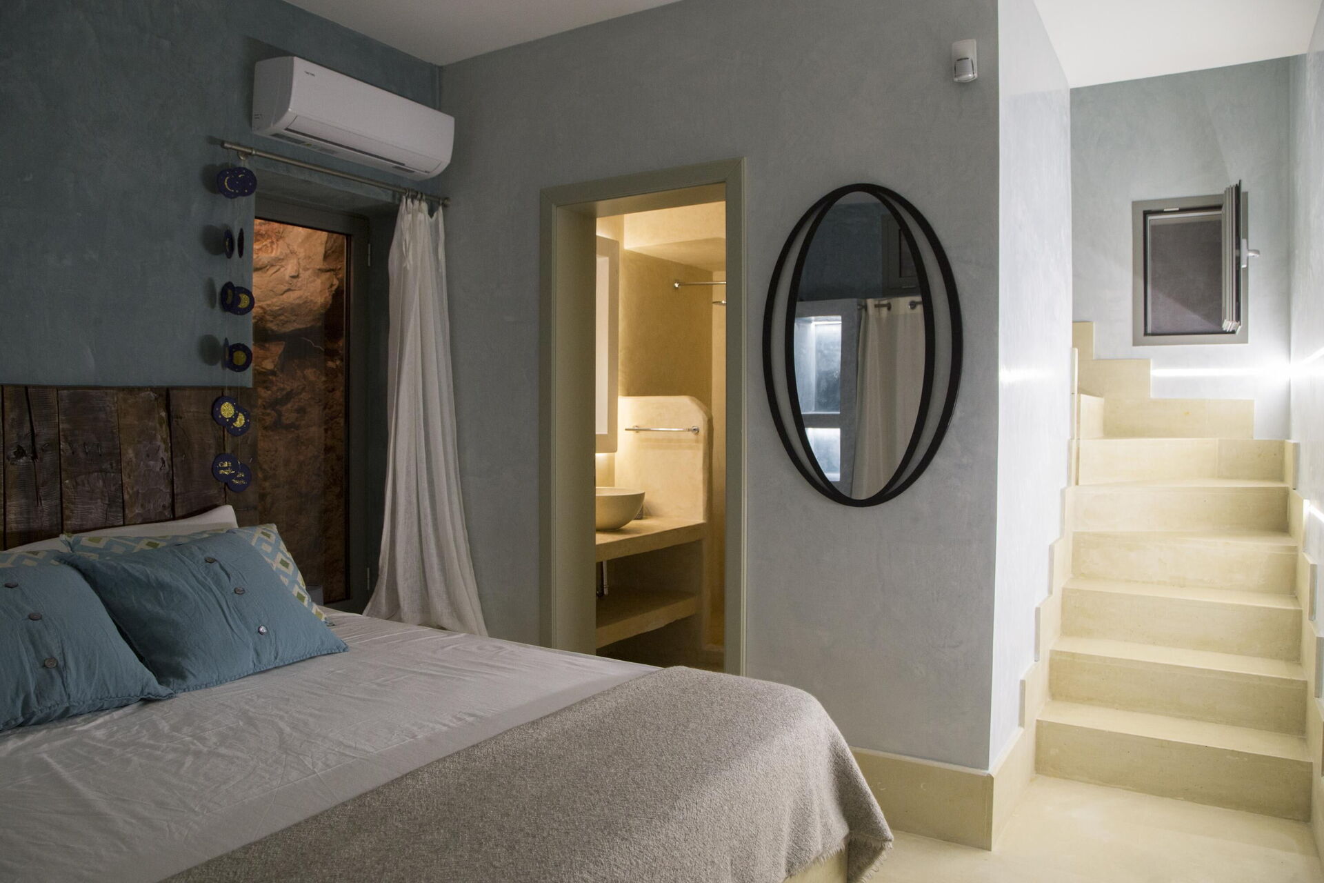 Nedre våning:1 dubbelrum (luftkonditionering, myggnät) med en-suite badrum med dusch (inget fönster),