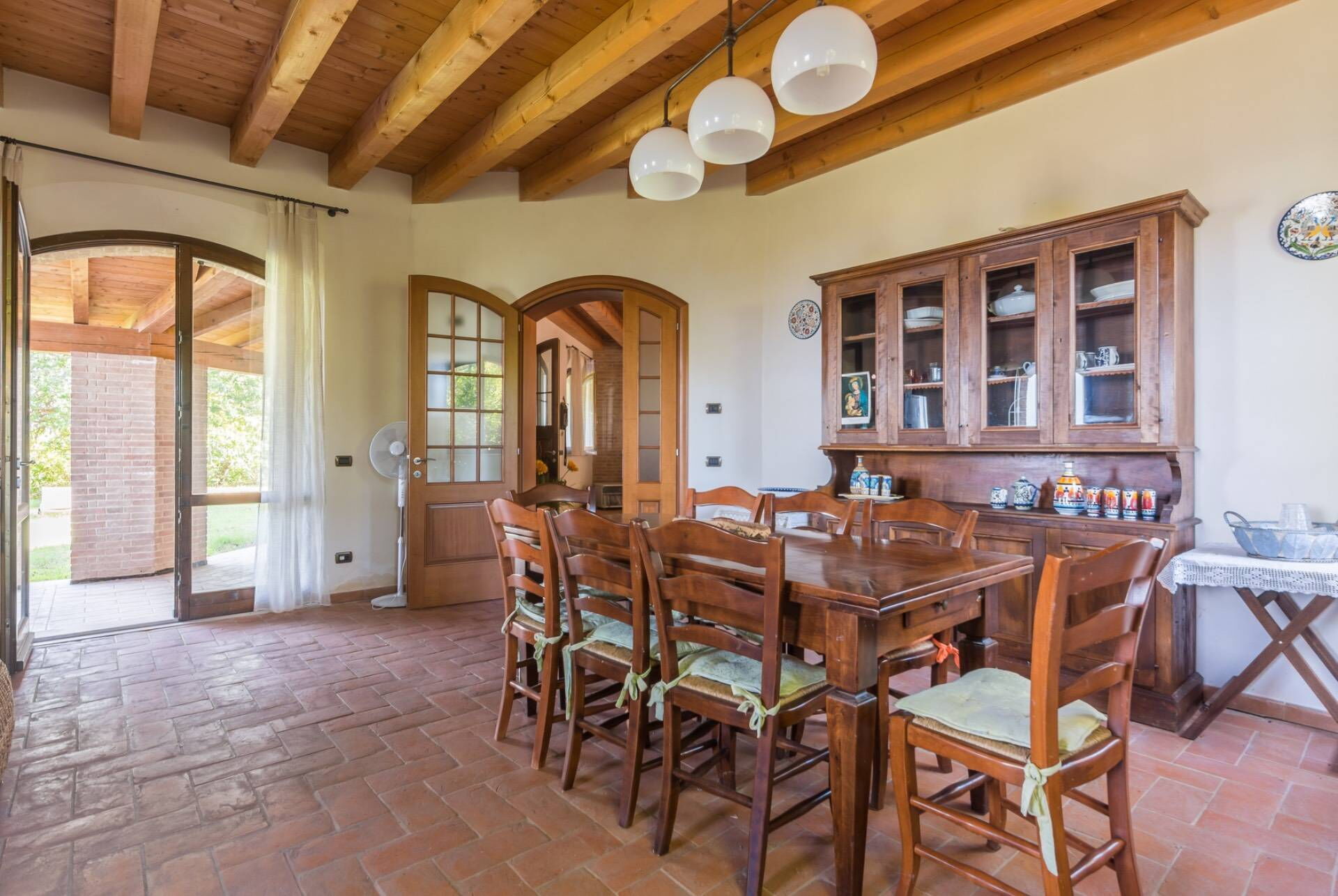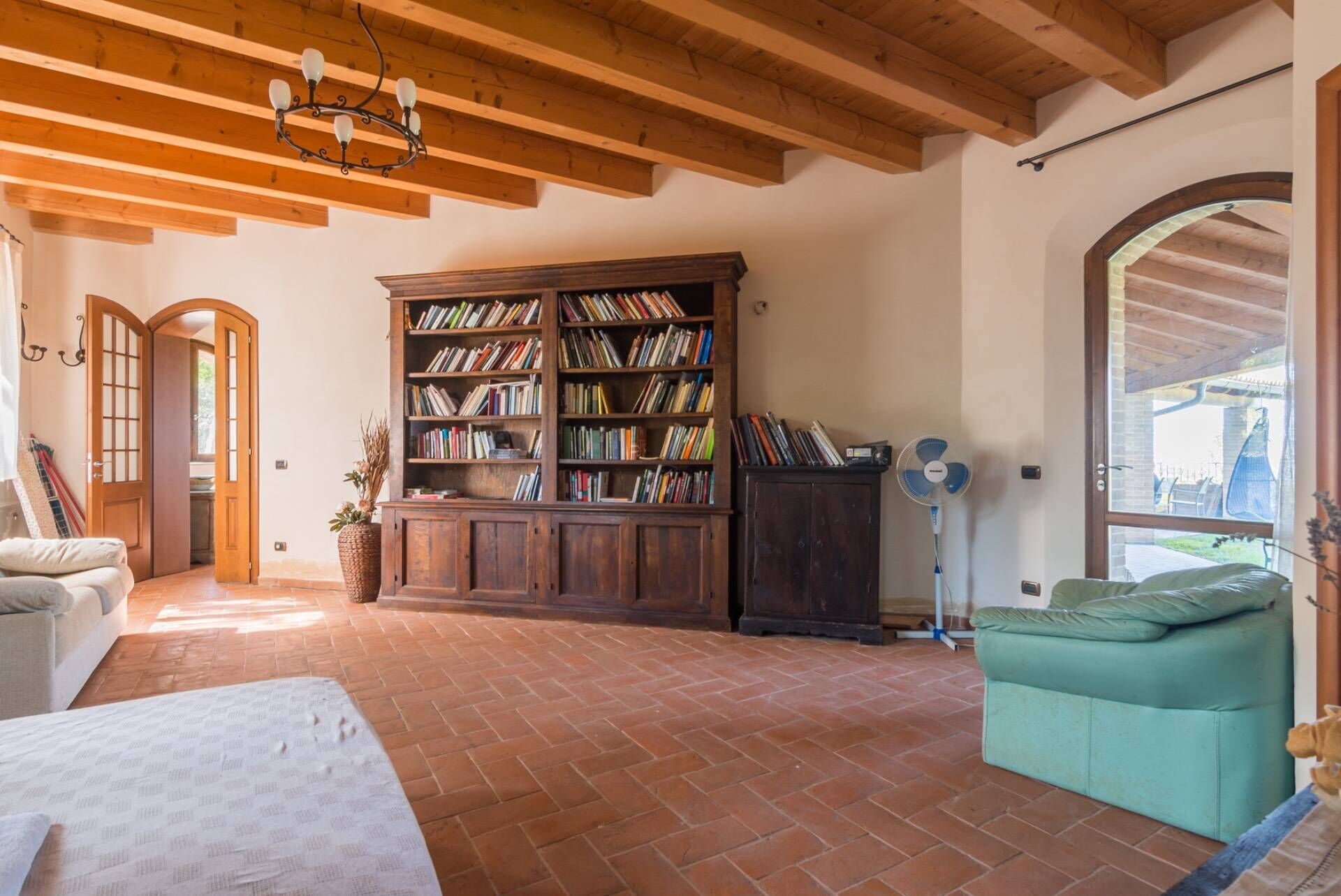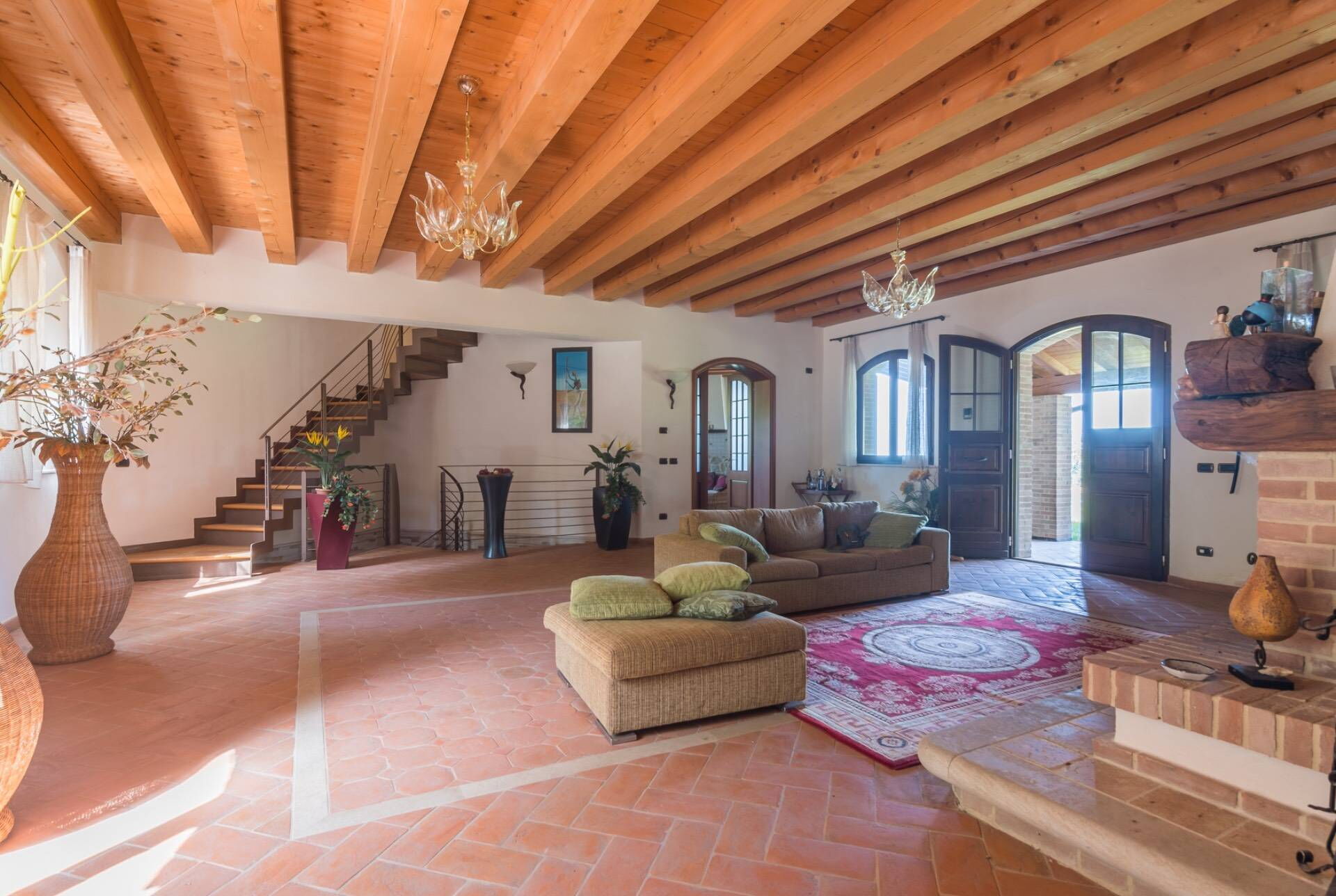 Villan, helt byggd i bio-konstruktion, är fördelad på tre våningar (bottenvåning, första våningen och källarvåningen) omgiven av en stor trädgård och med en egen skog: de bekväma inomhusmiljöerna är ljusa och utrustade med alla bekvämligheter. Sammanlagt har Villa Belvedere San Bartolo 5 sovrum och stora gemensamma utrymmen som även inkluderar en wellnessavdelning med bastu och inomhuspool (uppvärmningsbar på begäran endast under månaderna september till maj) med hydromassagehörna. Denna villa kan bekvämt rymma upp till 10/11 personer.