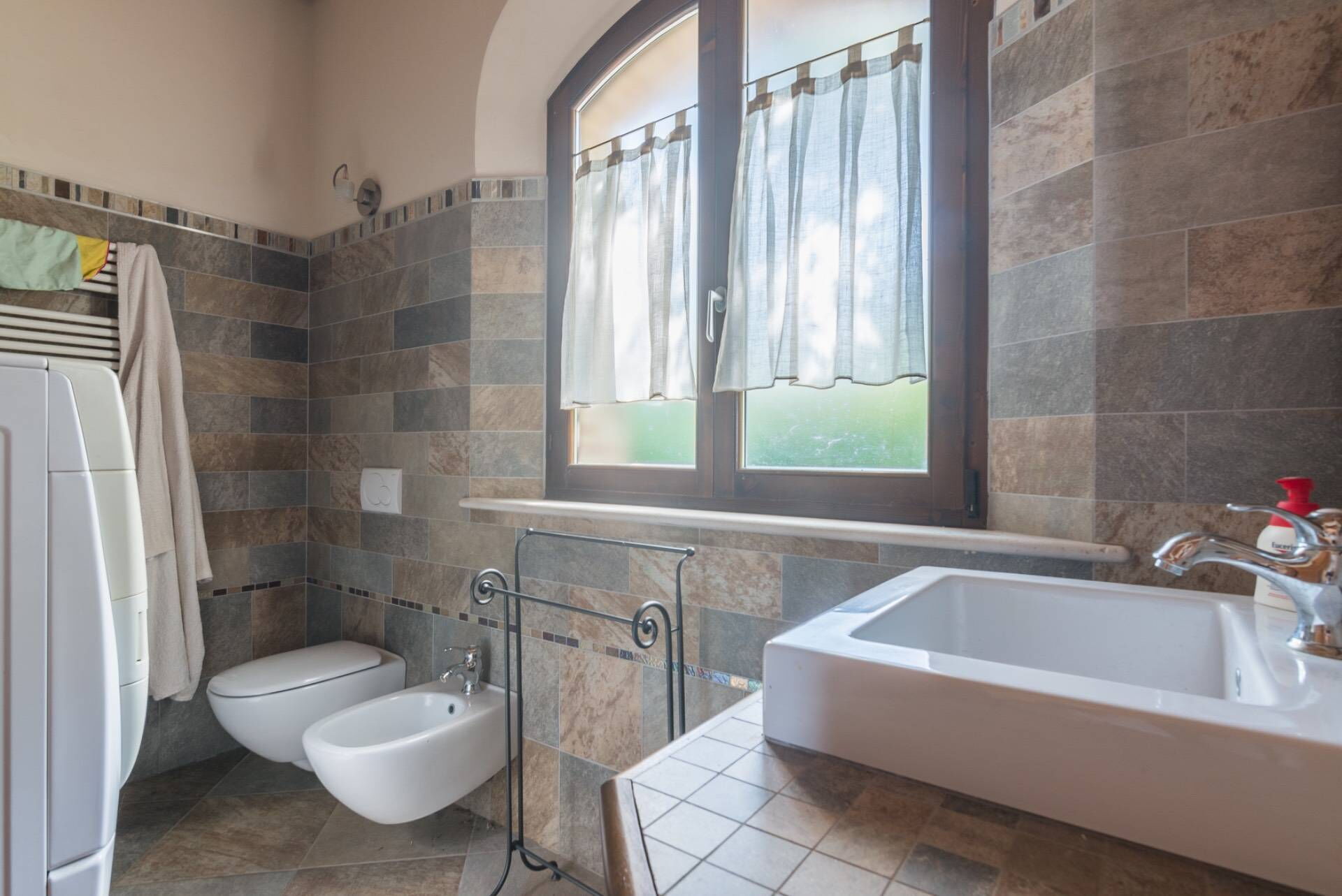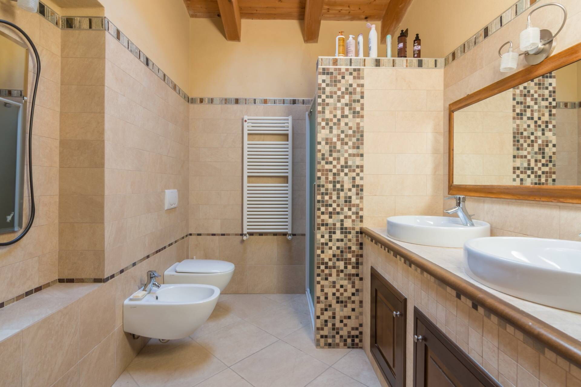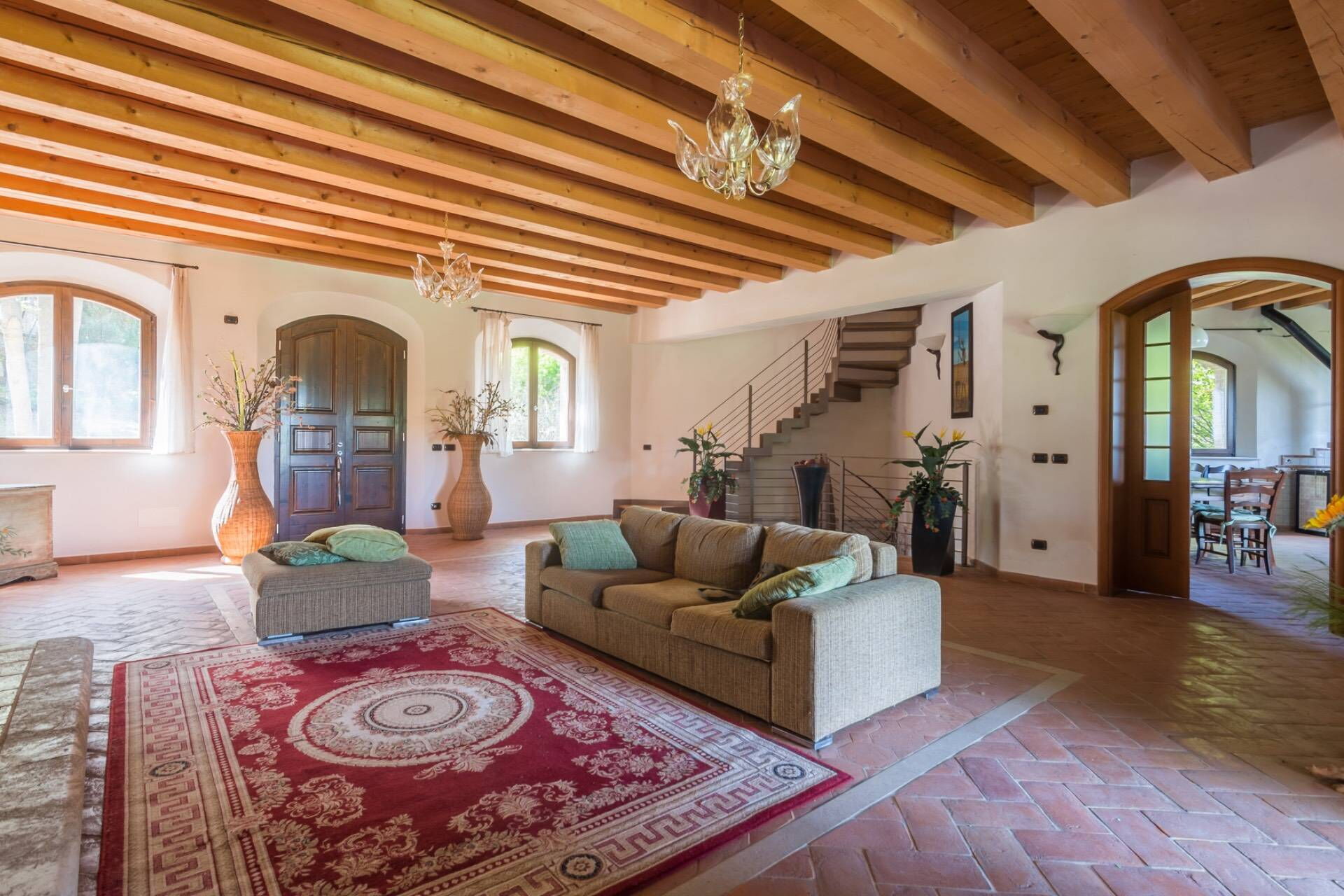 Villan, helt byggd i bio-konstruktion, är fördelad på tre våningar (bottenvåning, första våningen och källarvåningen) omgiven av en stor trädgård och med en egen skog: de bekväma inomhusmiljöerna är ljusa och utrustade med alla bekvämligheter. Sammanlagt har Villa Belvedere San Bartolo 5 sovrum och stora gemensamma utrymmen som även inkluderar en wellnessavdelning med bastu och inomhuspool (uppvärmningsbar på begäran endast under månaderna september till maj) med hydromassagehörna. Denna villa kan bekvämt rymma upp till 10/11 personer.