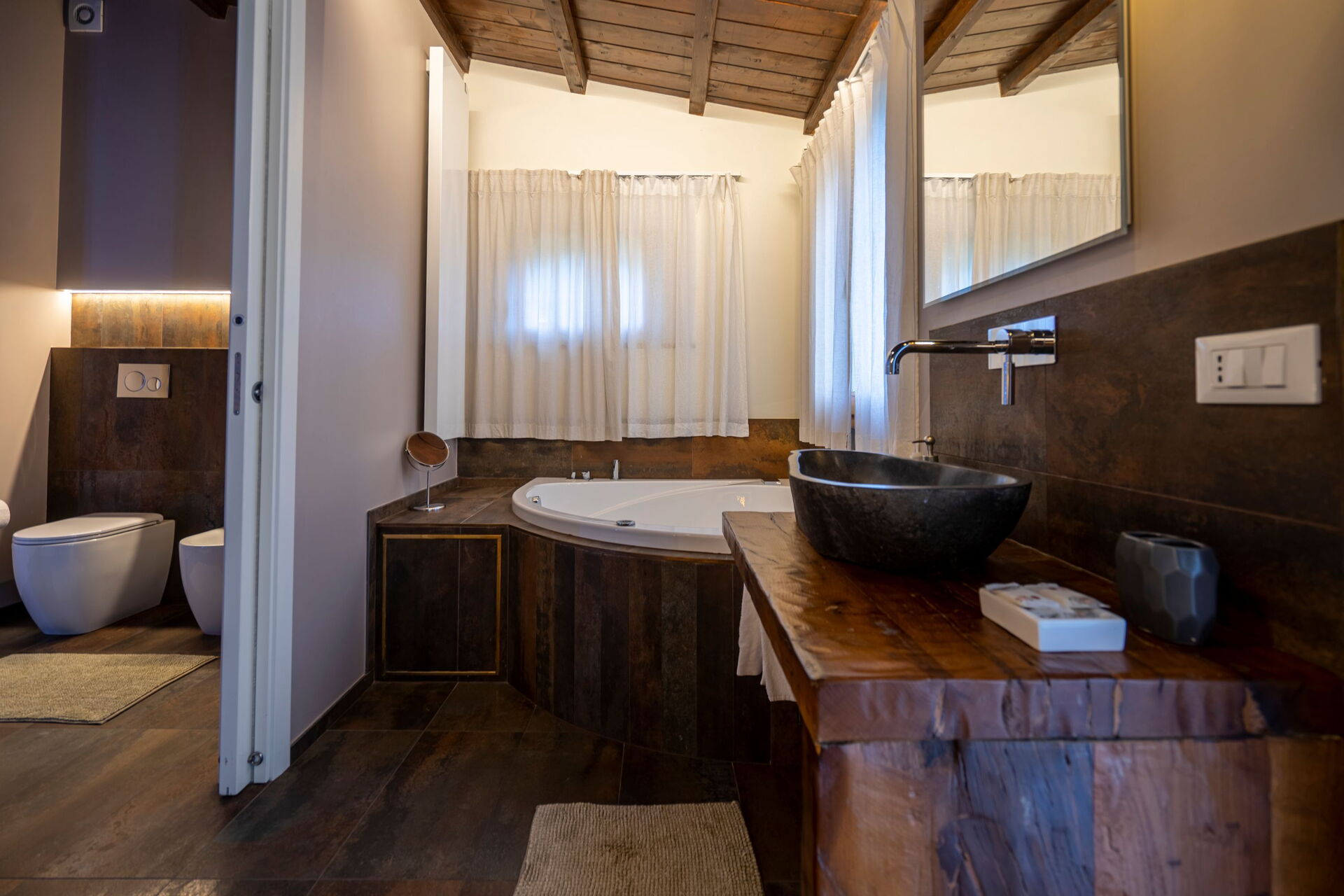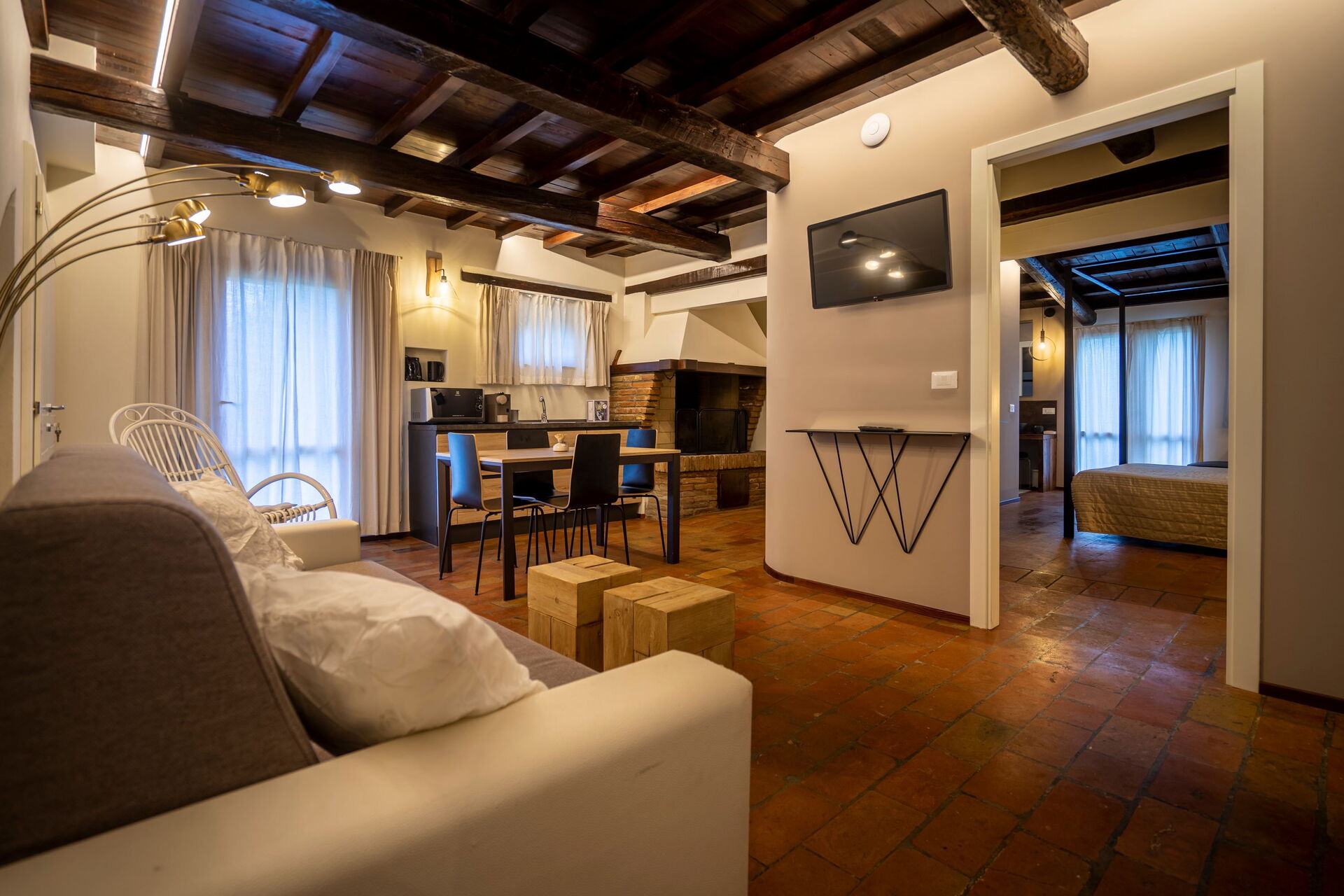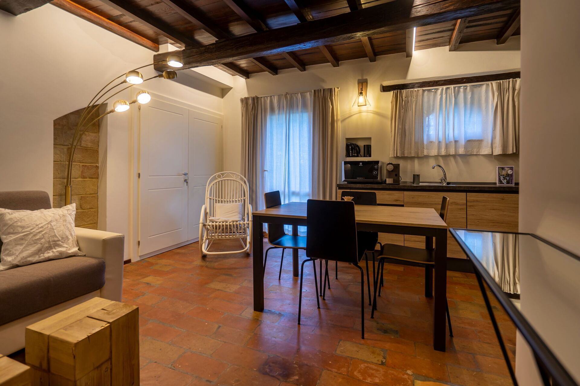 Vardagsrum (luftkonditionering, TV) med matplats och kök (spishäll, ugn, frys, kyl, diskmaskin, kaffebryggare); svit med vardagsrum med öppen spis, dubbel bäddsoffa, TV, 1 dubbelrum (luftkonditionering, TV, minibar) med eget badrum med duschkabin (perfekt för personer med nedsatt rörlighet), tillgång till privat uteplats med utsikt över parken; svit med vardagsrum med öppen spis, pentry (spishäll, kylskåp), enkel bäddsoffa, TV, 1 dubbelrum (luftkonditionering, TV, minibar) med hörnbadkar med färgterapi och privat badrum med multifunktionell dusch med färgterapi och turkiskt bad