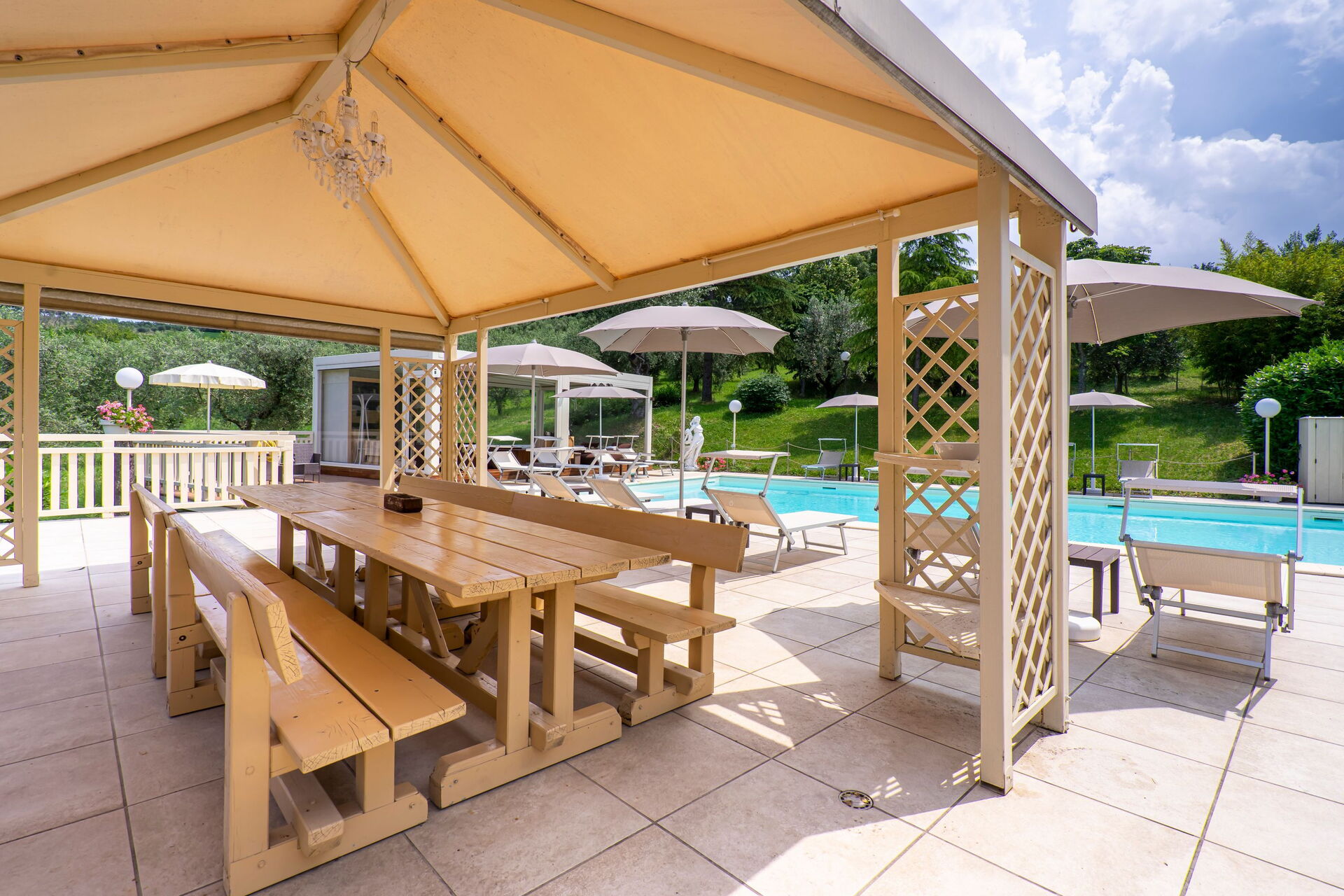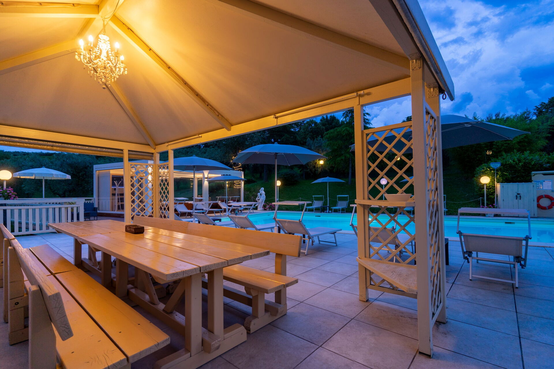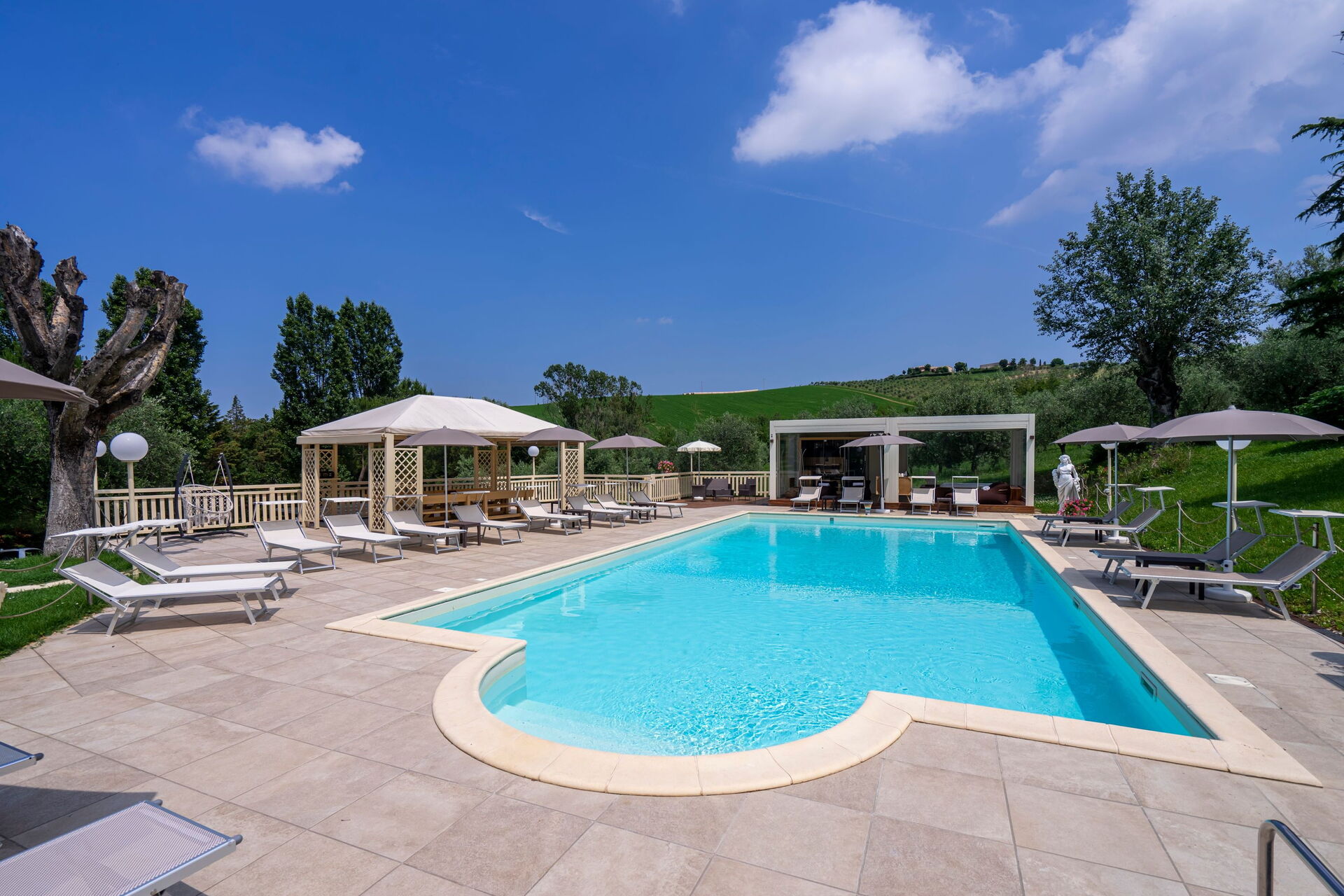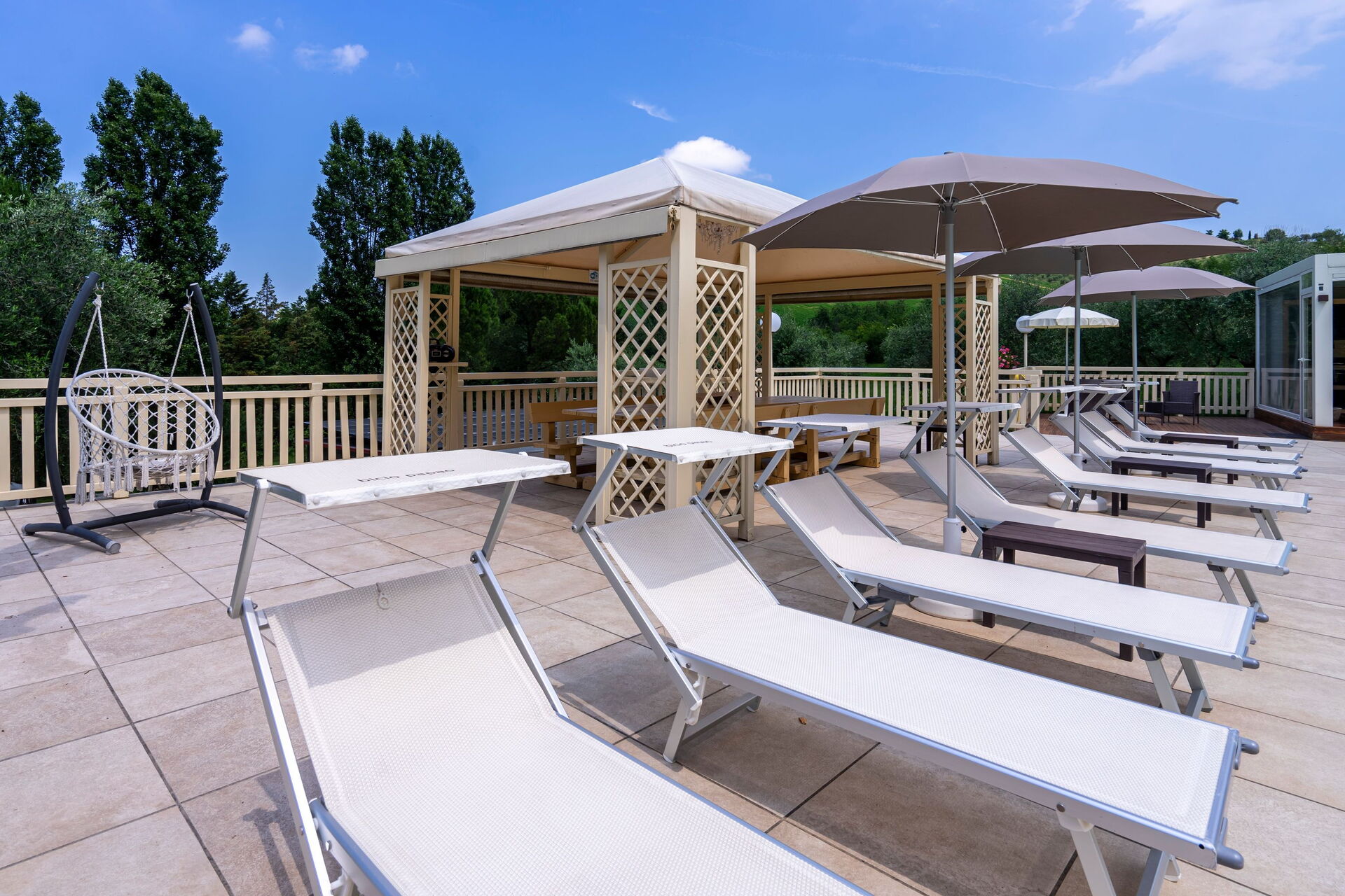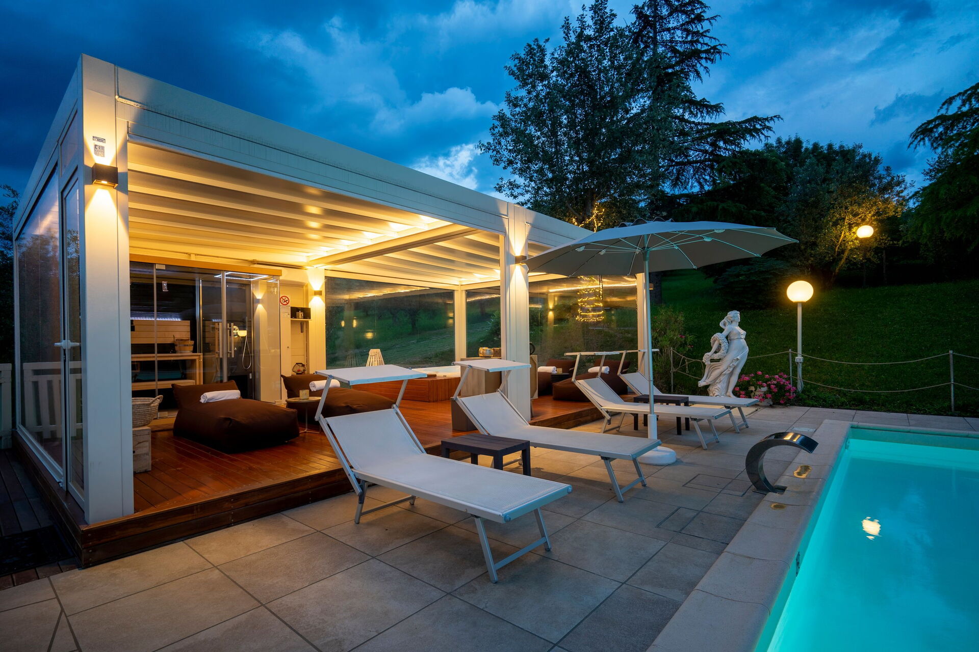 Panoramautsikten från de gemensamma utrymmena är härlig, poolen är den perfekta platsen att koppla av tillsammans eller varför inte njuta vid lusthuset på solterrassen. Och om det behövs ännu mer avkoppling finns ett utomhusspa med bastu, turkiskt bad (14.00 till 12.00) och uppvärmd badtunna.