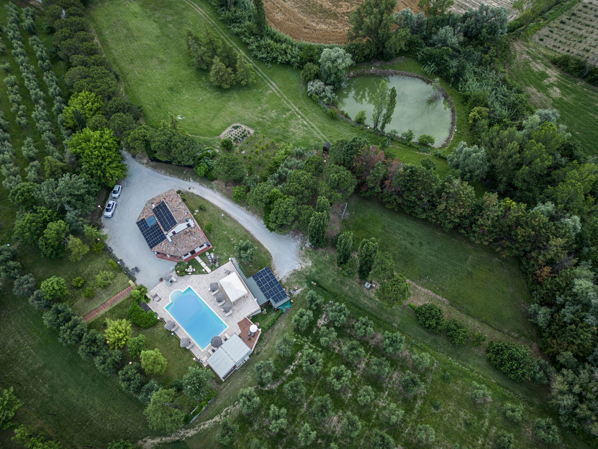 När det finns tillräckligt med avkoppling kan du spela fotboll på femmannaplanen, fiska i den lilla sjön eller ta en promenad bland oliv- och fruktträden på den flera hektar stora tomten.