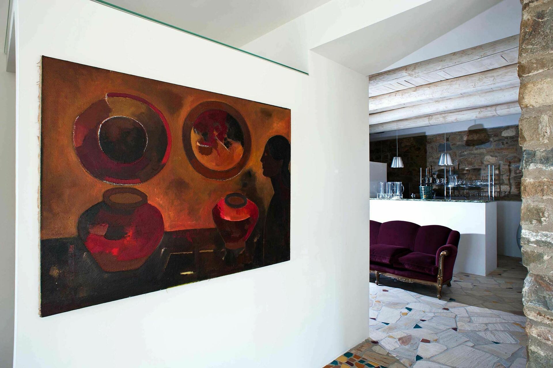 Restaurangen av stugan har utförts med traditionella konstruktionstekniker och material. Semesterhuset har en raffinerad interiör som är en perfekt blandning av gammaldags charm och moderna bekvämligheter. Villan har åtta lyxiga sovrum, alla med pentry och eget badrum. Gäster som hyr hela villan har också ett stort vardagsrum / matsal, ett härligt kök med öppen spis, vackra panoramaterrasser och poolen.