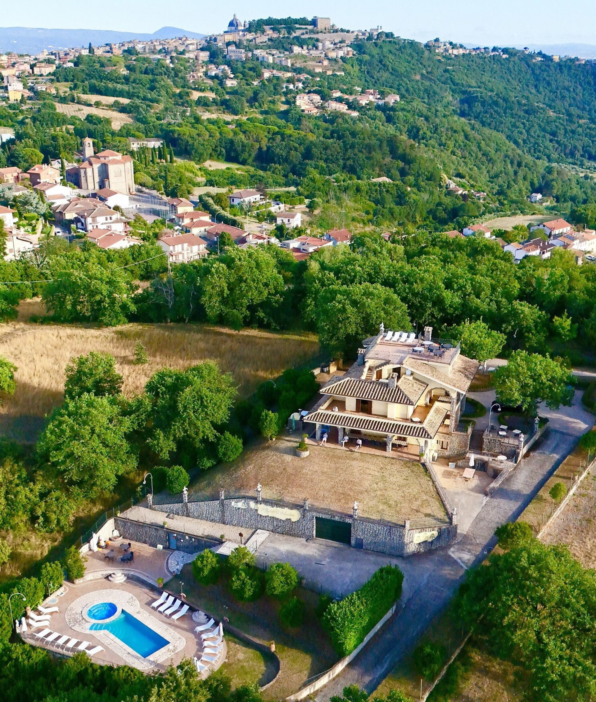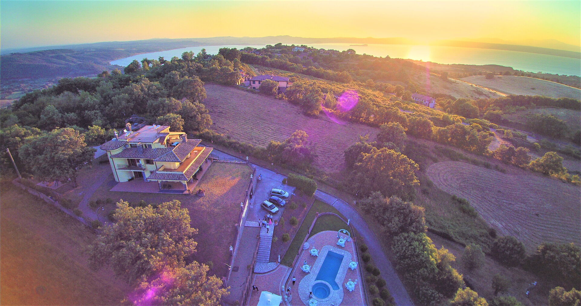 Exklusiv villa med privat pool på en kulle med panoramautsikt över Bolsena-sjön i Lazio. Semesterhuset ligger nära Montefiascone som är en av byarna vid denna vackra sjön i Italien.