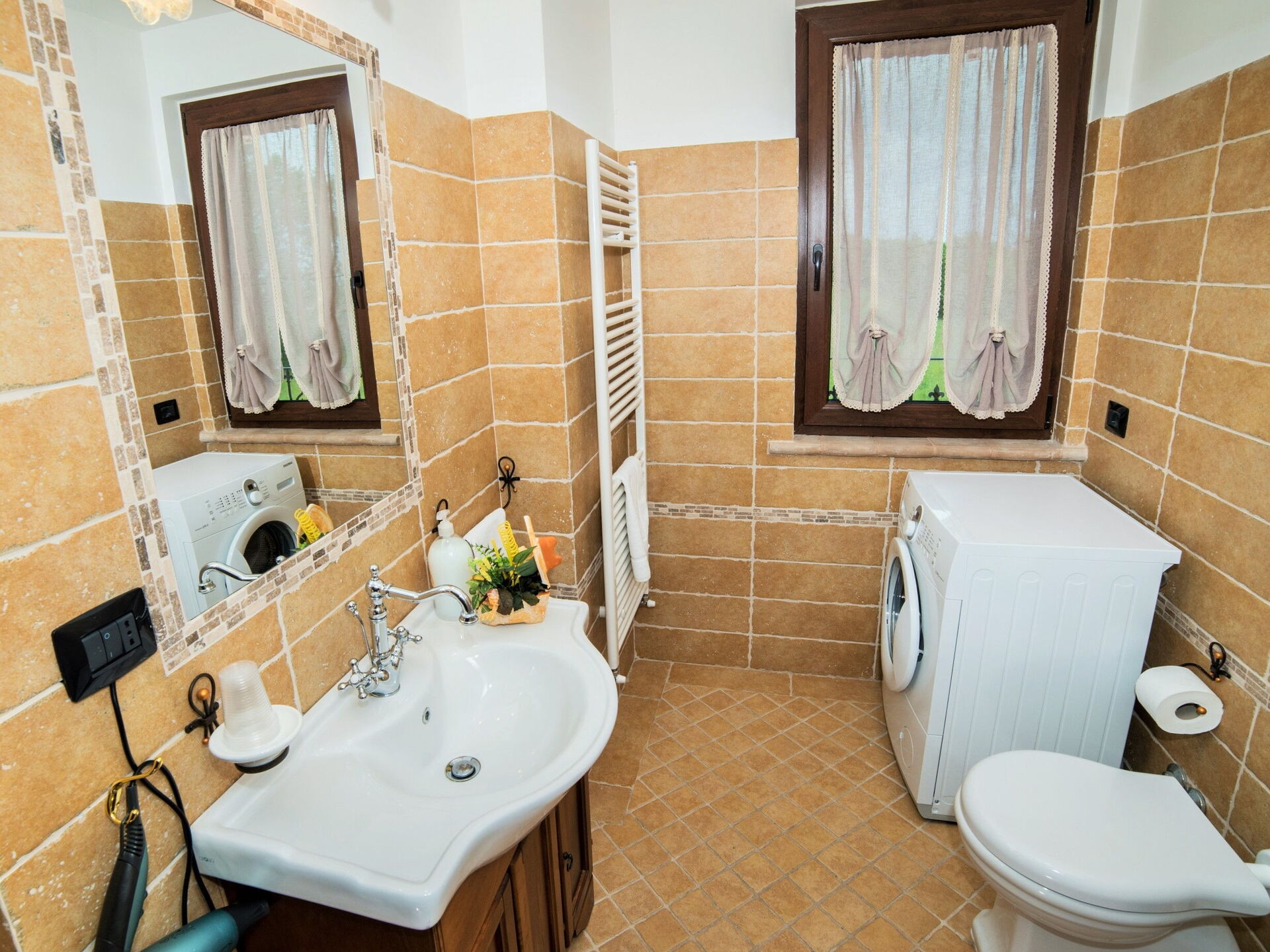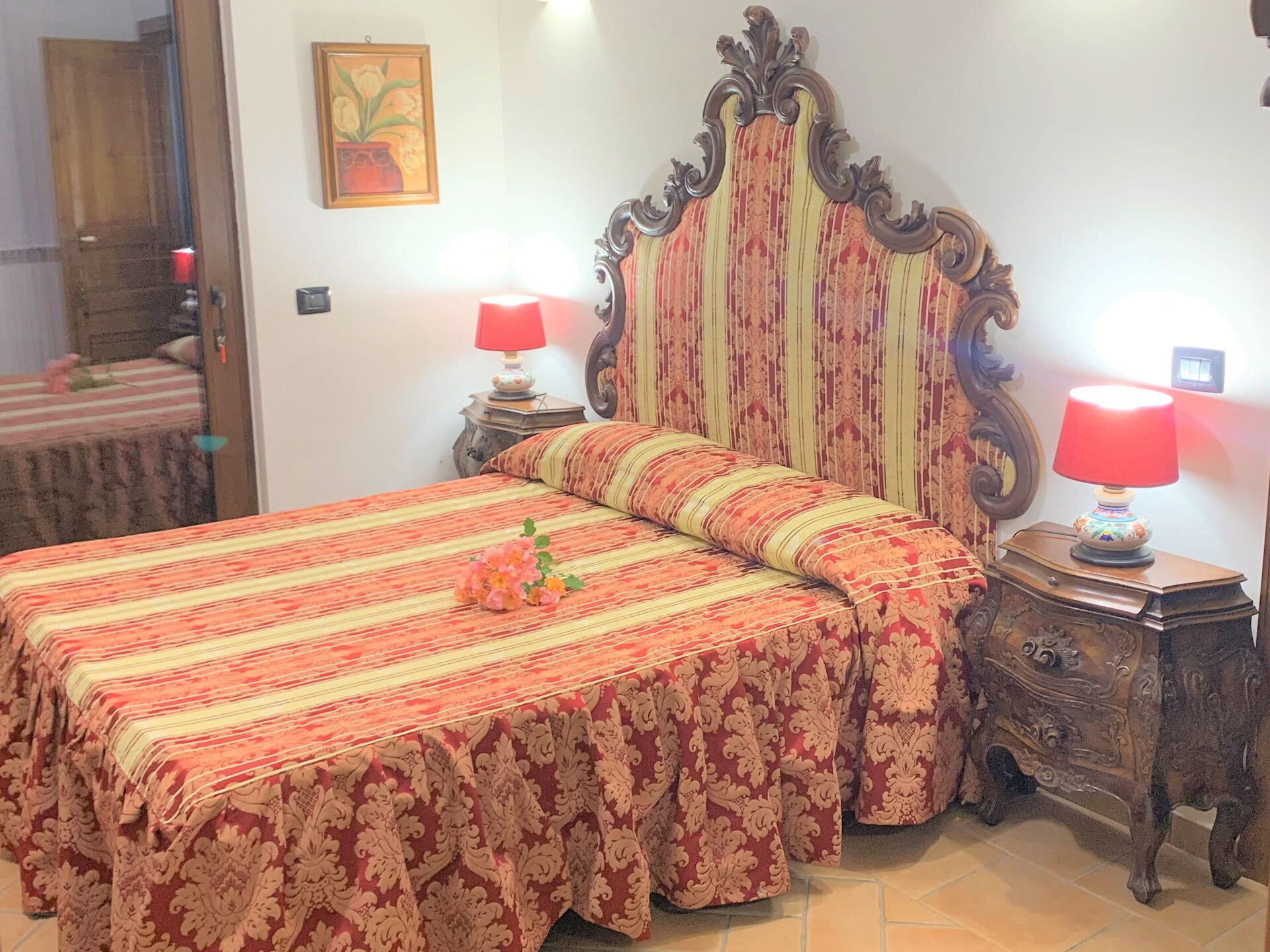 Andra våningen: vardagsrum (satellit-TV) med matplats och pentry (ugn, diskmaskin, espressomaskin, liten frys), sovrum med dubbelsäng (TV) med eget dusch (utan bidé), sovrum med loftstak dubbelsäng, duschrum. Från denna våning finns direkt tillgång till en fantastisk terrass med panoramautsikt och med bord, stolar och grill. Härifrån när även ytterligare en terrass på översta våningen, vilket ger fri utsikt över de omgivande bergen och Bolsena-sjön.