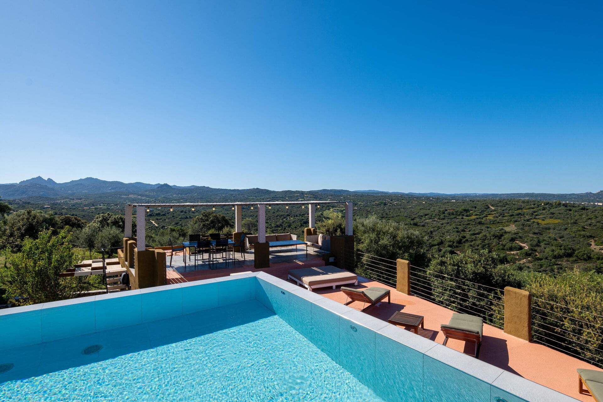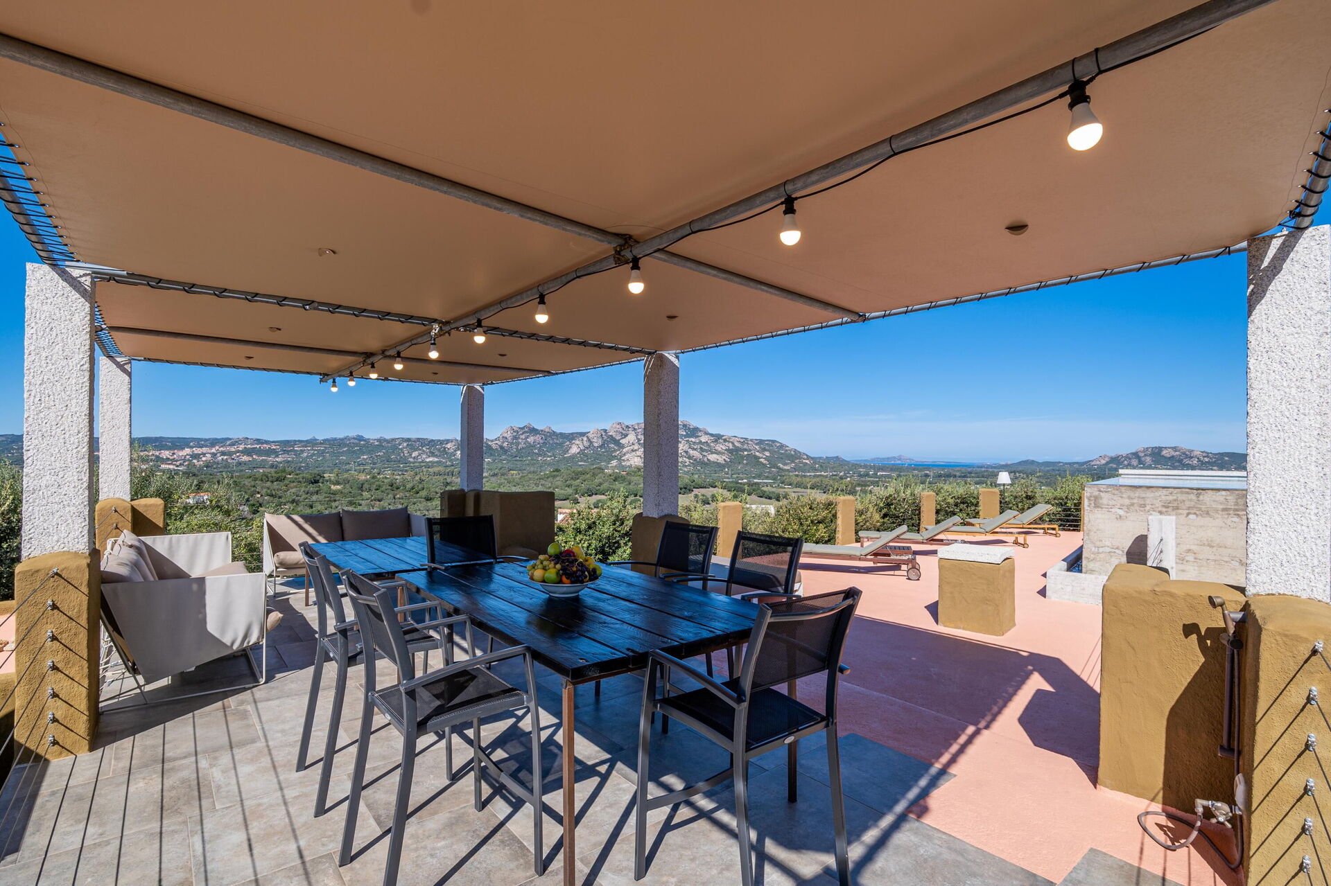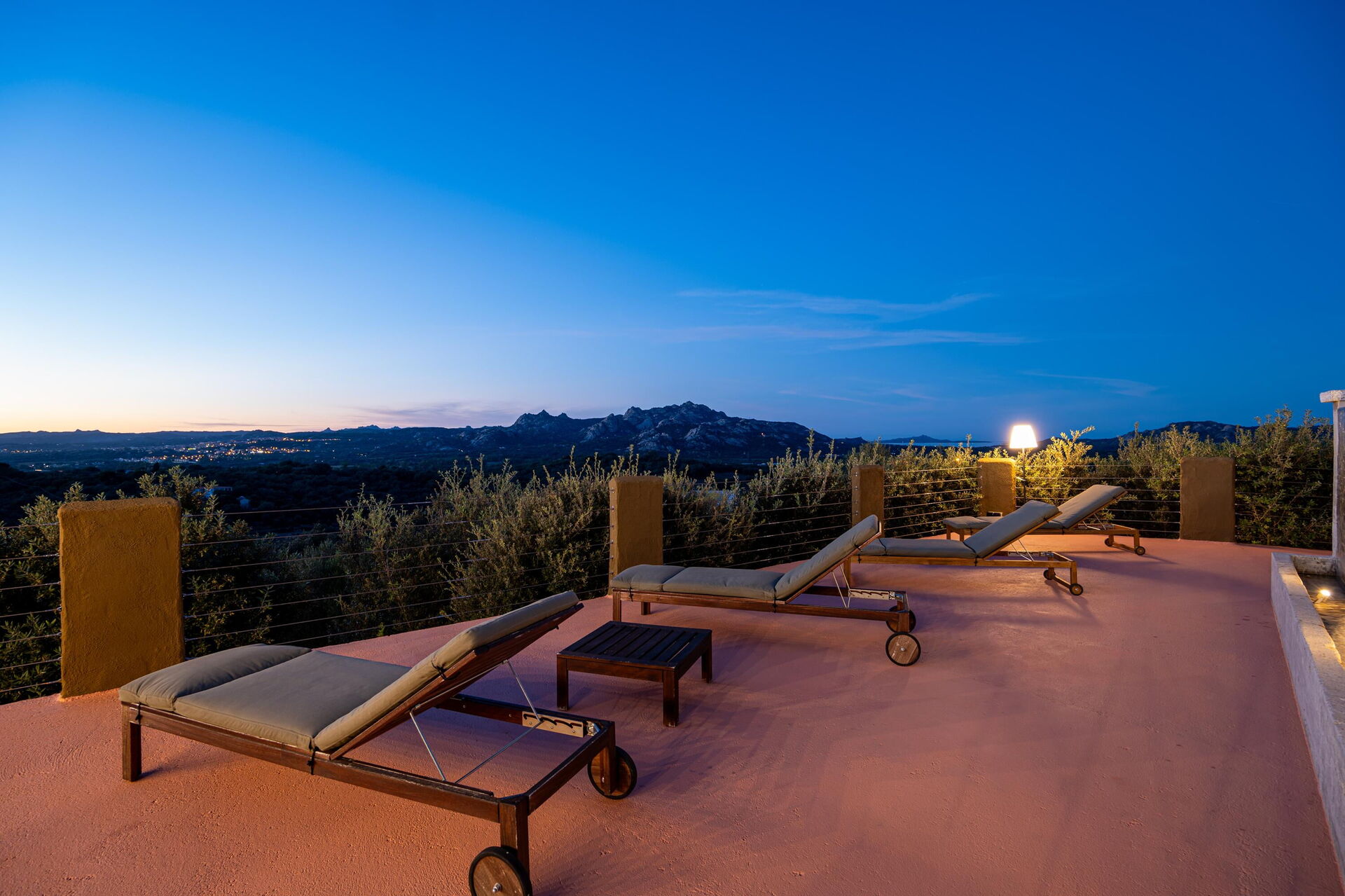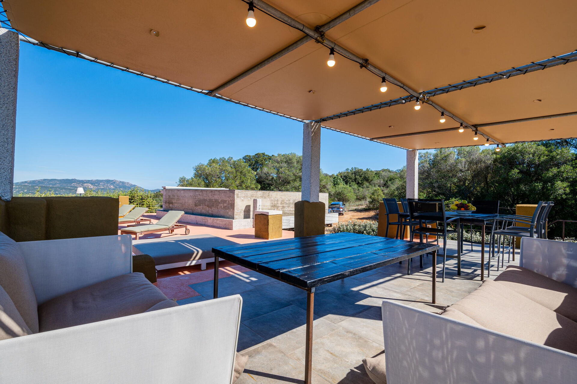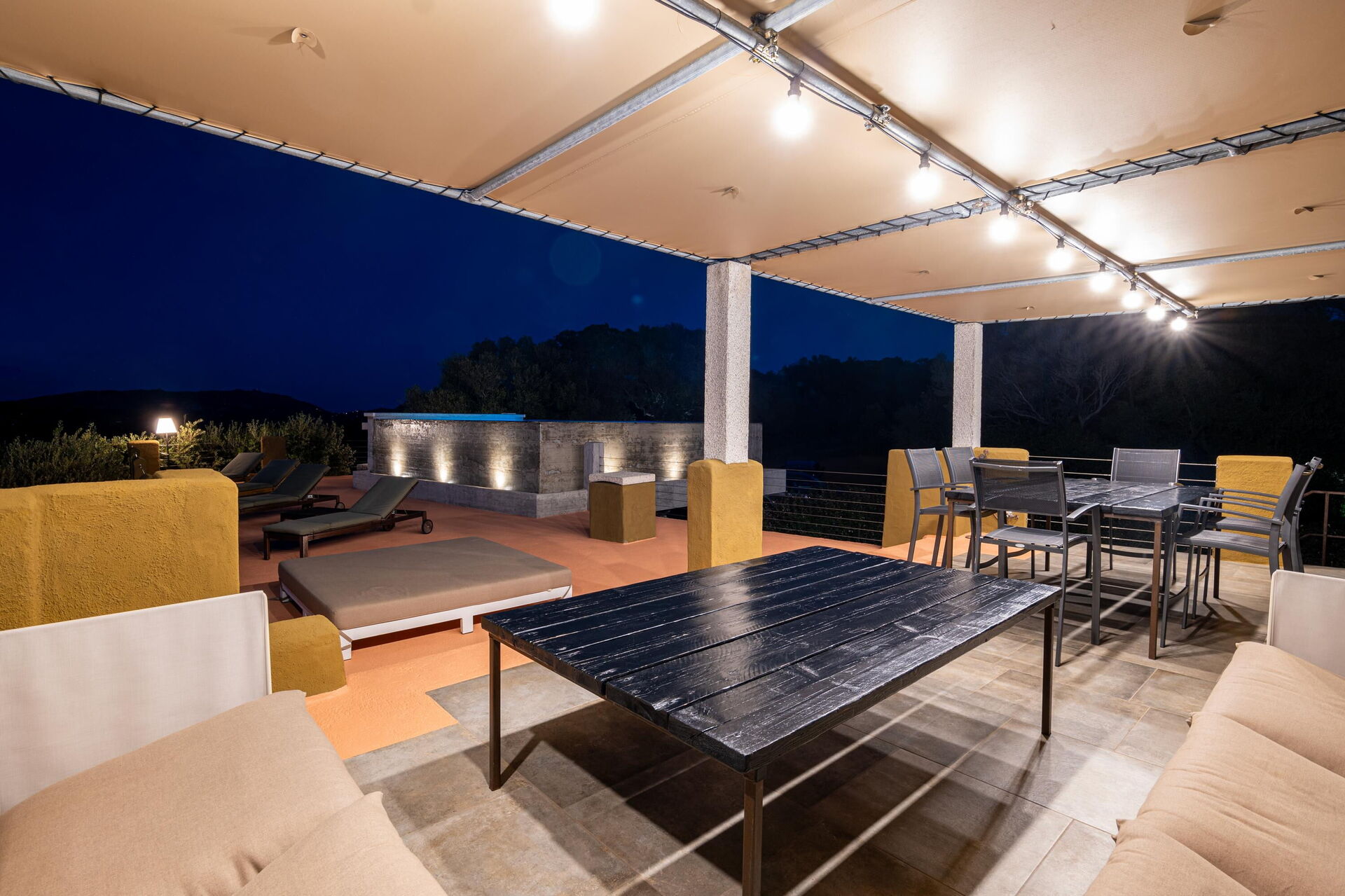 Utomhus erbjuder fastigheten flera gemensamma ytor med panoramautsikt: poolen är byggd på terrassen på första våningen för att gästerna ska kunna njuta av den magnifika utsikten över det omgivande landskapet och havet. På terrassen kan du också koppla av i en av solstolarna eller njuta av en måltid utomhus under den stora paviljongen.