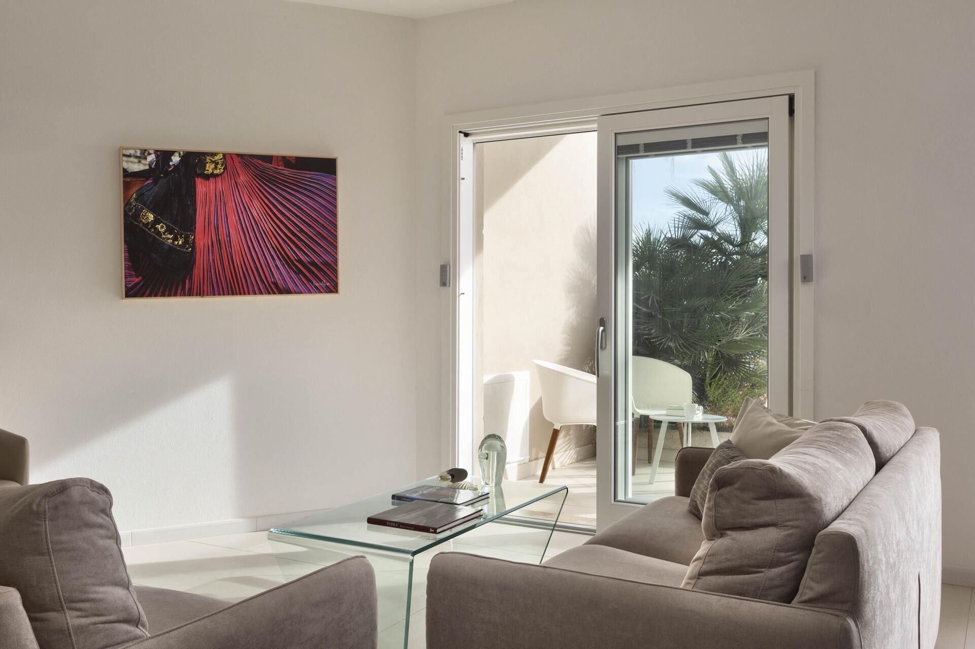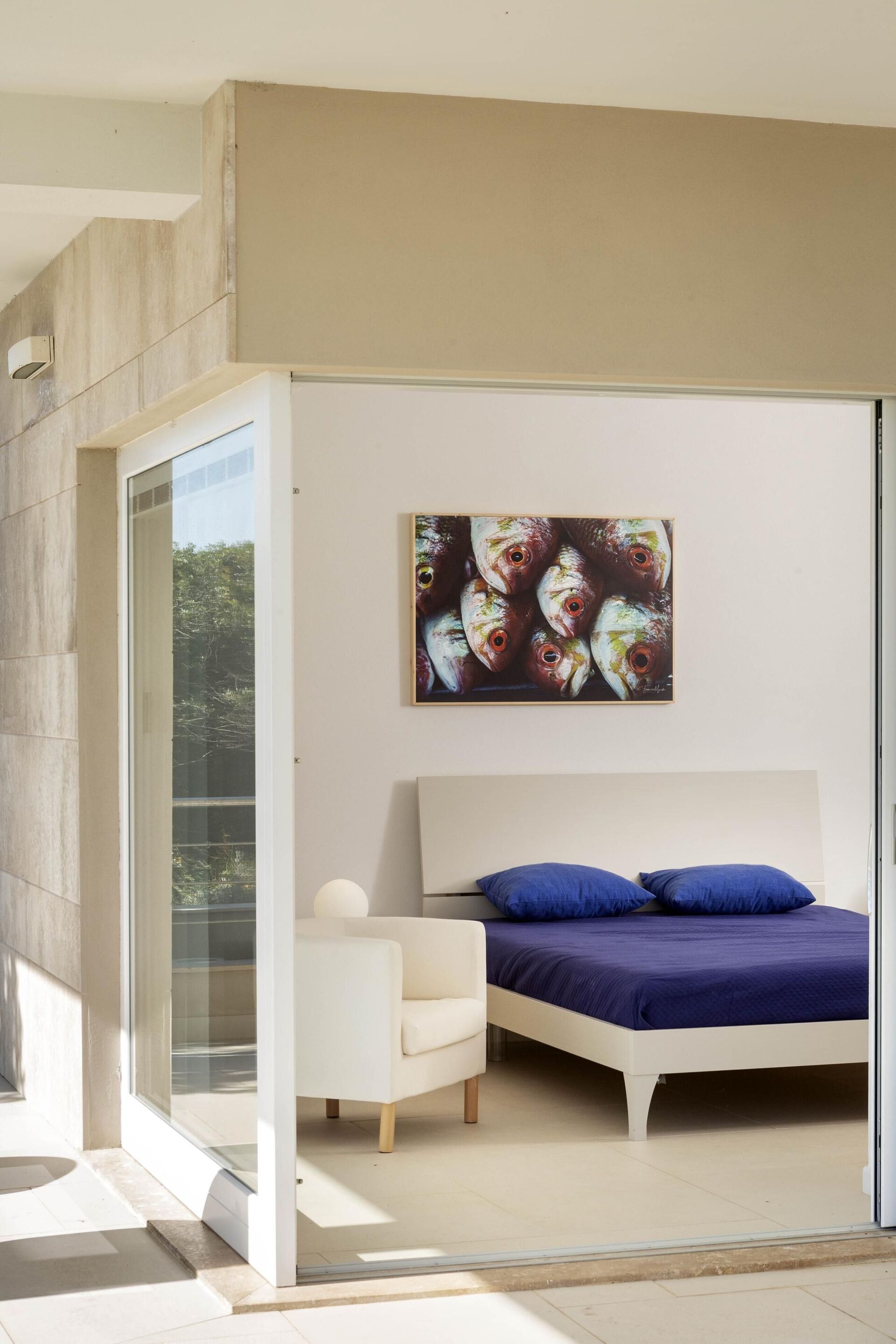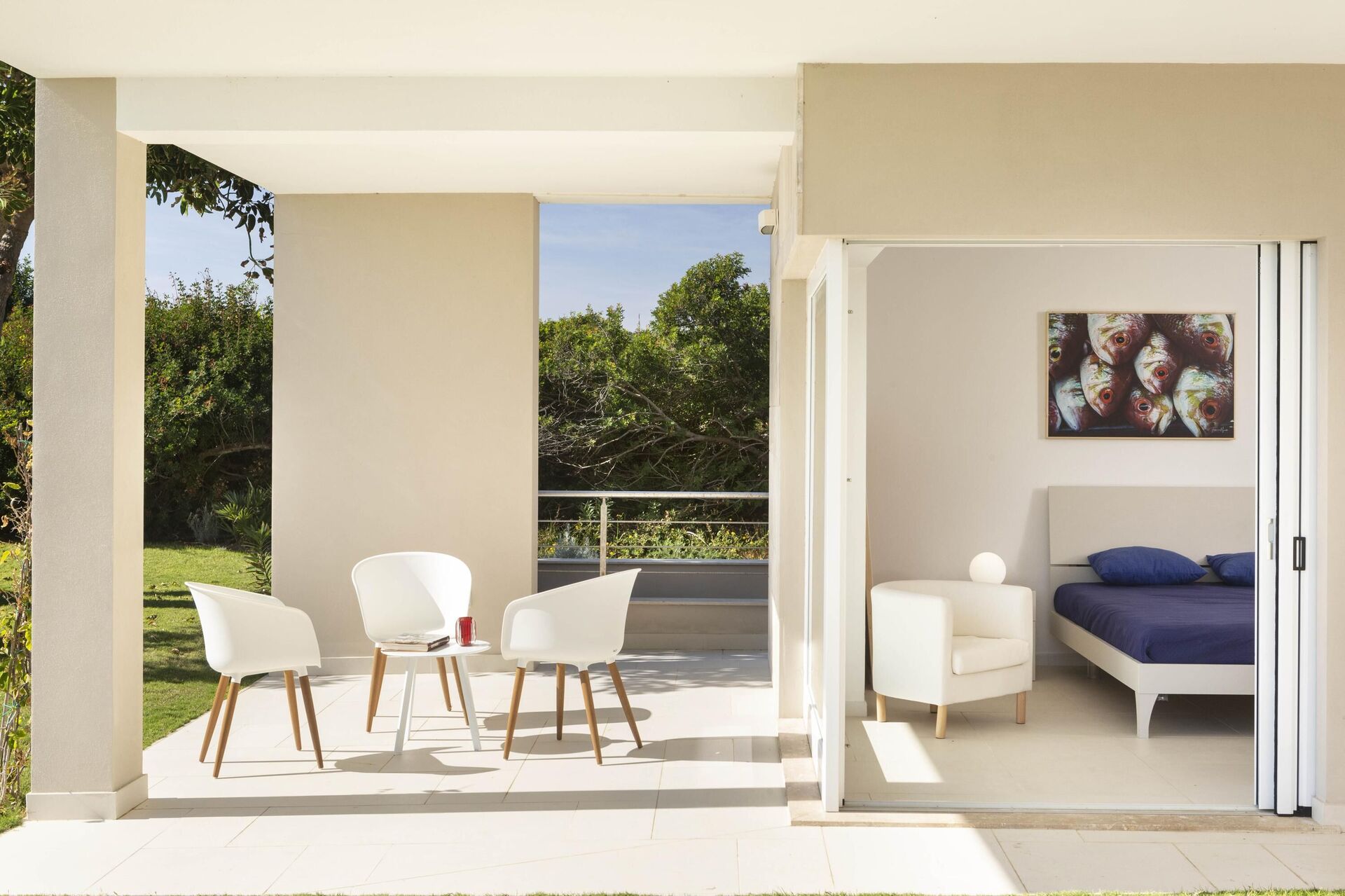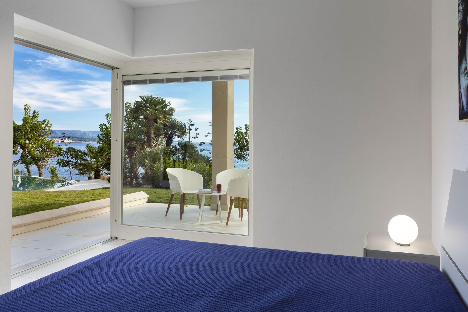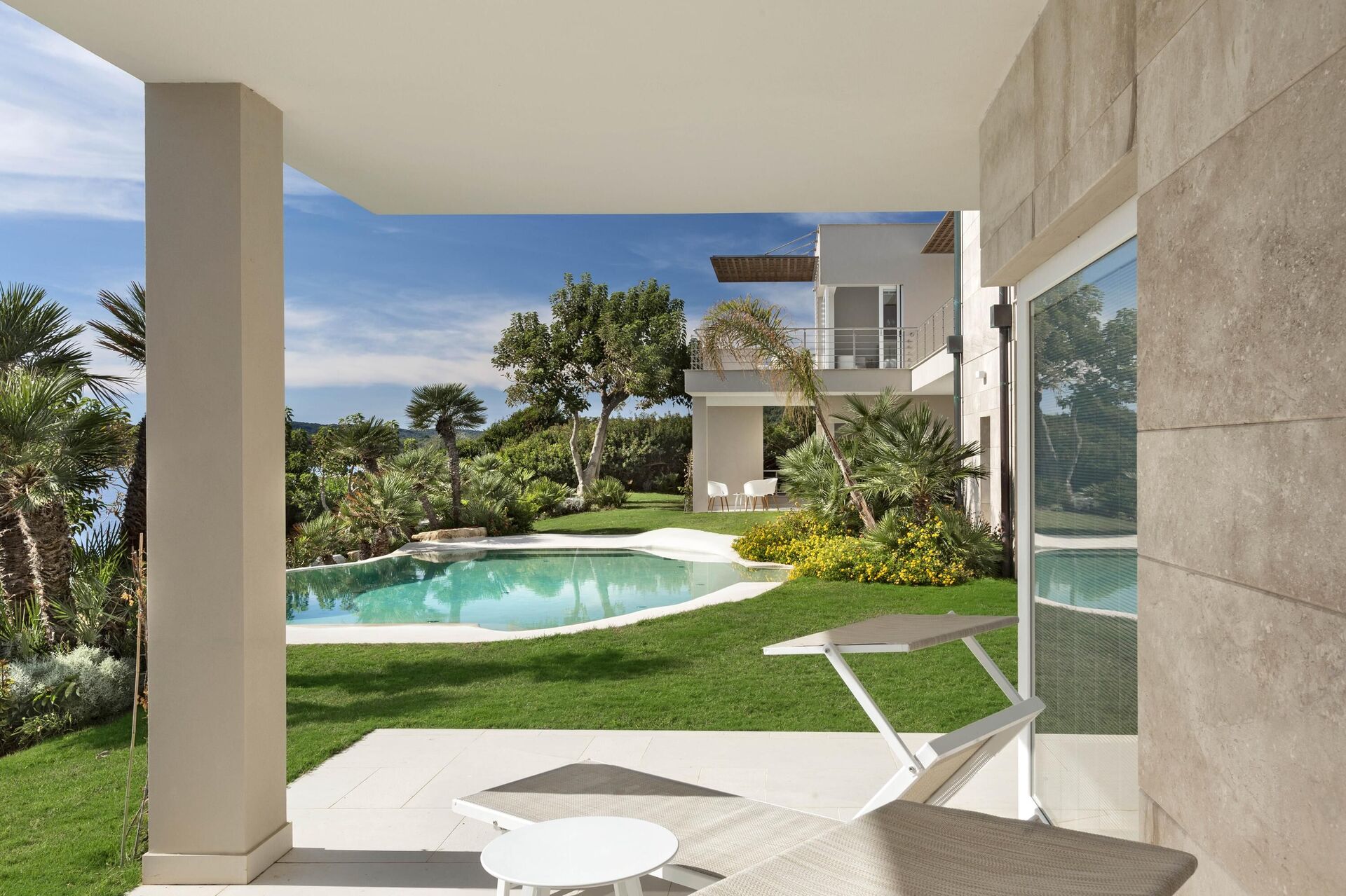Alla sovrum på bottenvåningen har direkt tillgång till trädgården och poolen.