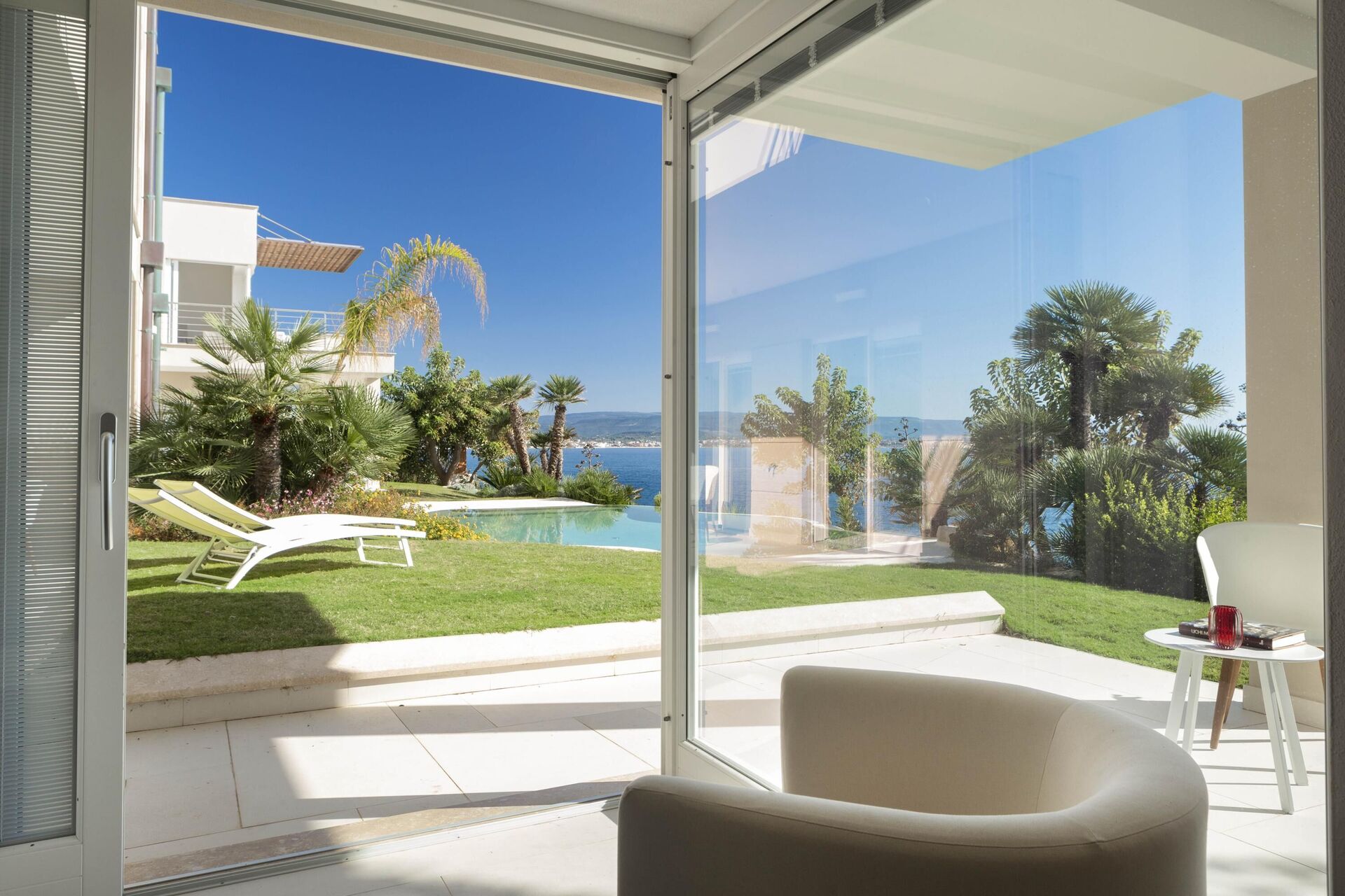 Det finns flera vackra relaxområden på fastigheten och mer än tillräckligt med utrymme för att kunna njuta av solnedgången och havsutsikten helt ensam, om så önskas.