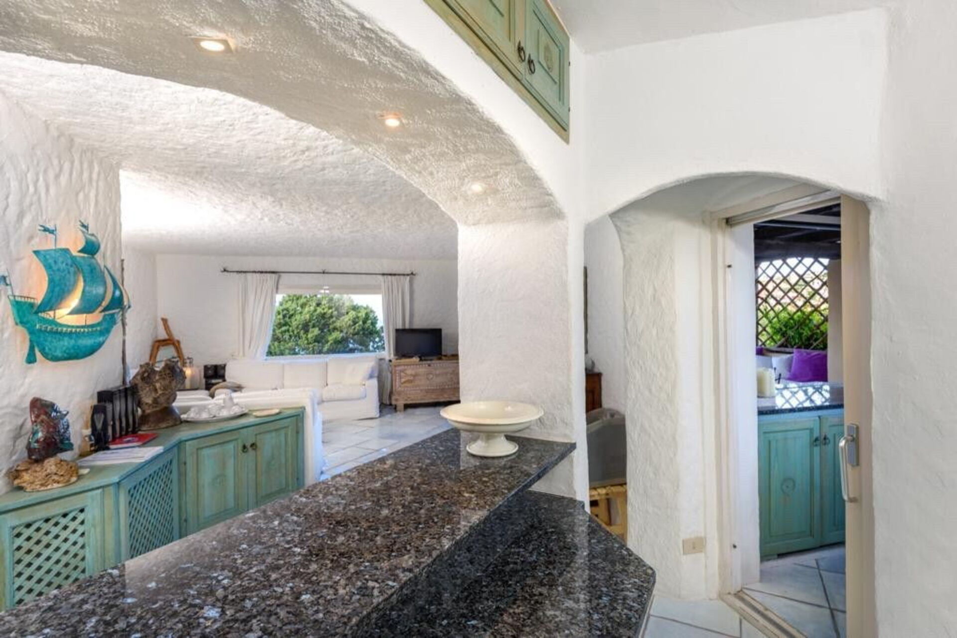 Lentischio är centralt belägen nära havet och den berömda hamnen med sina lyxiga yachter. Samtidigt är det bara en kort promenad från den charmiga Piazza Chiacchiere, eleganta butiker och de många restaurangerna och nattklubbarna som livar upp Porto Cervos centrum.