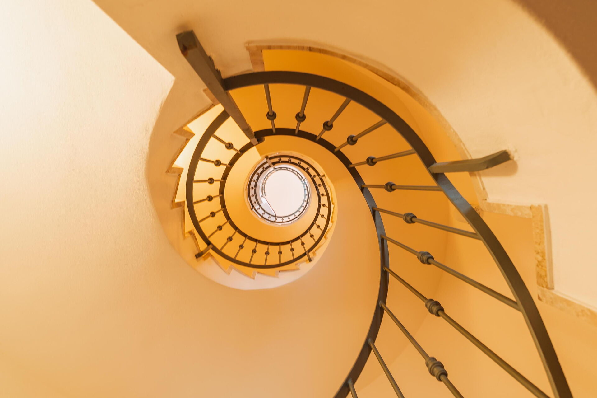 Alla våningar är sammankopplade invändigt via en spiraltrappa.