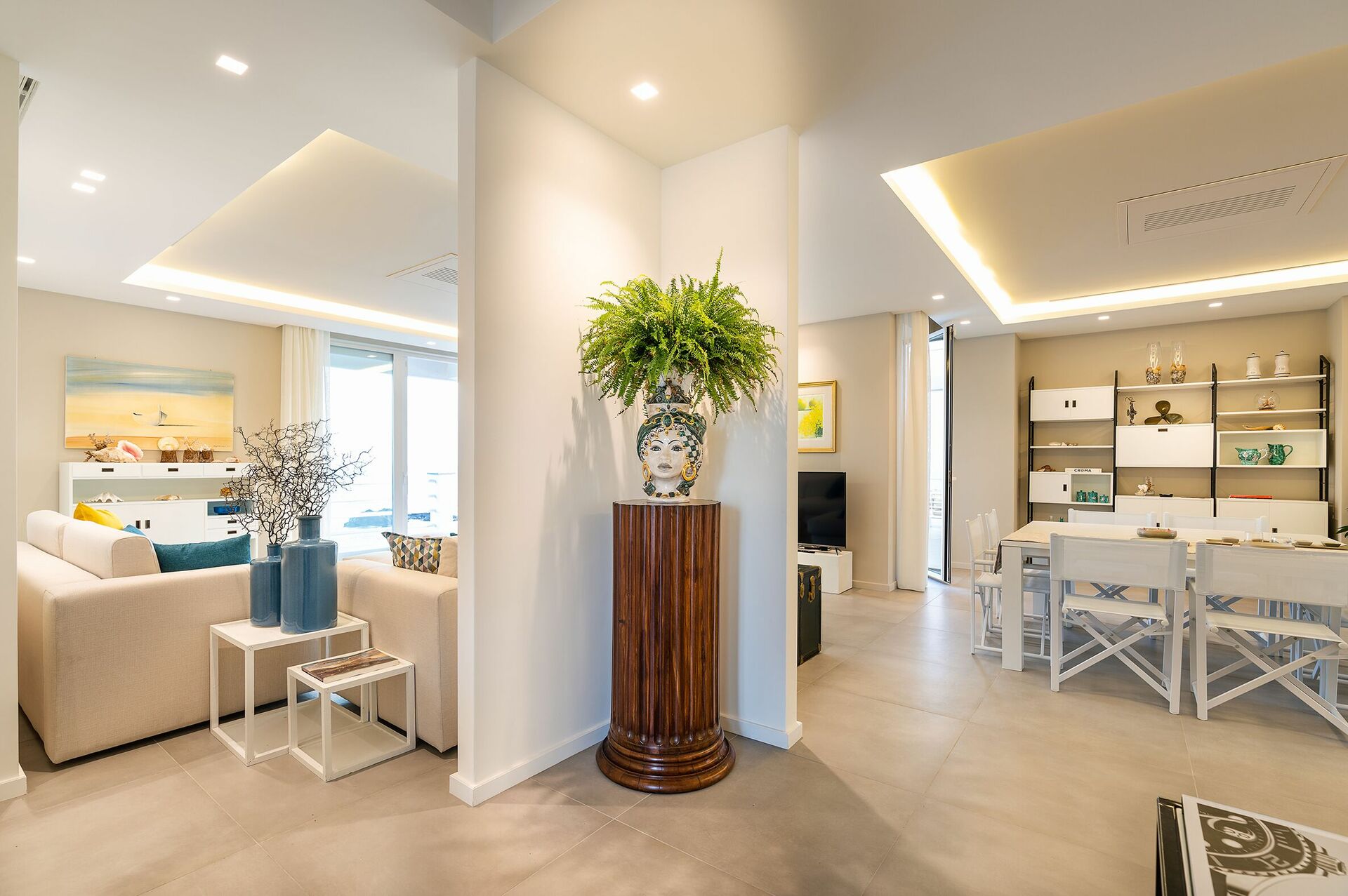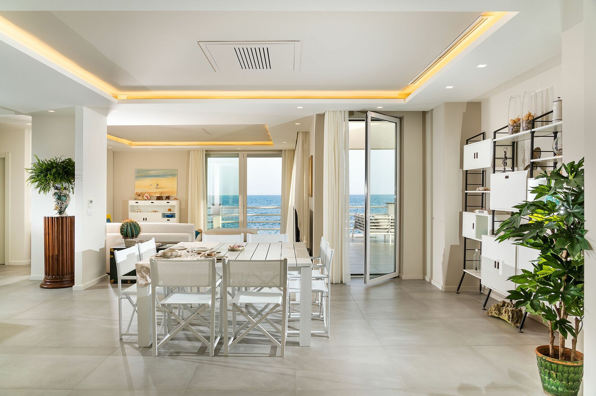 Detta vackra boende på Sicilien sträcker sig över första våningen i huset, med vacker havsutsikt från terrasserna (bottenvåningen används inte eller är bebodd av vissa hyresgäster).