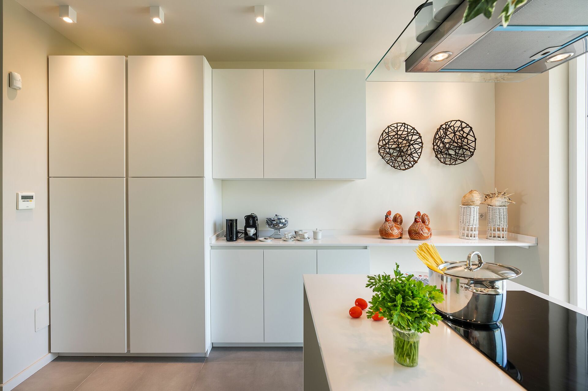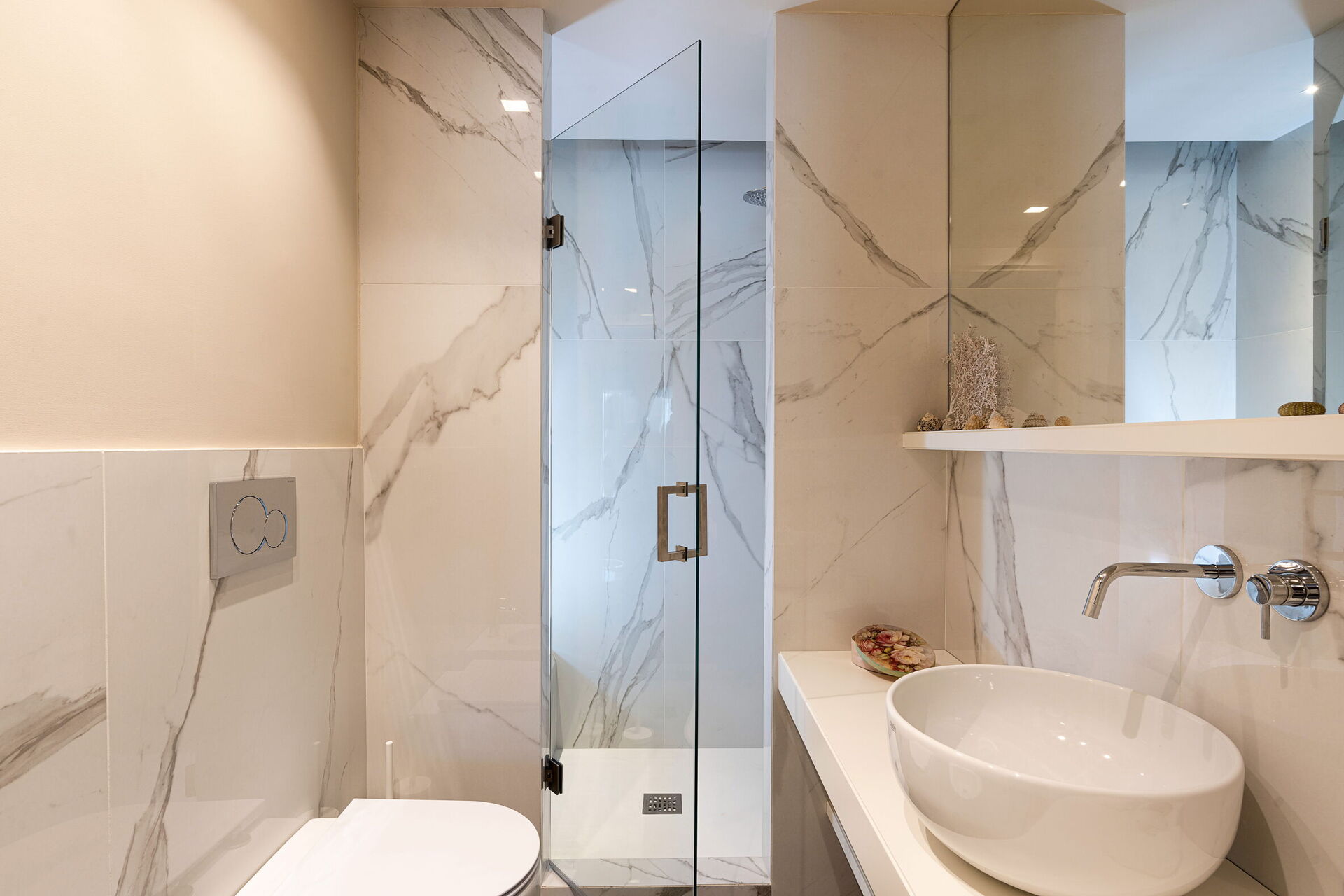 Entré; stort vardagsrum med matplats; kök; tvättstuga; 2 dubbelrum, alla med king size -säng och eget badrum med dusch; 2 dubbelrum, alla med eget badrum med dusch; 1 sovrum med liten dubbelsäng och badrum med dusch.