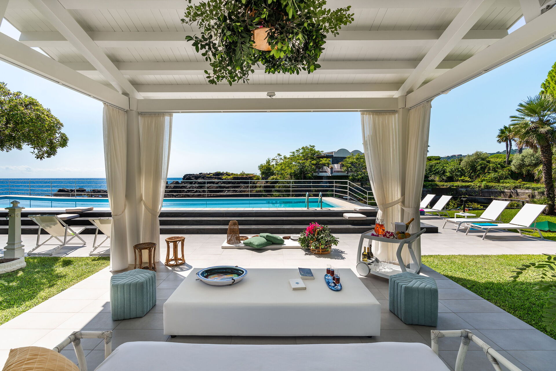 Villa Isabella är en lyxig strandvilla med privat pool nära den karakteristiska kuststaden Stazzo, mellan Catania och Taormina på Sicilien.