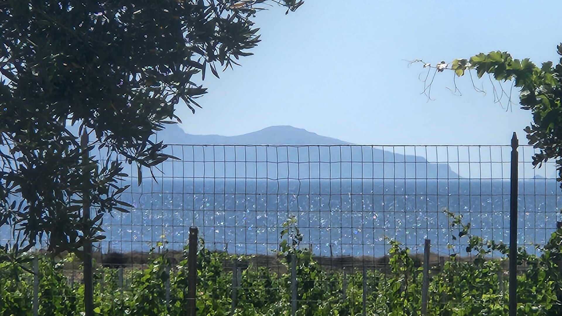 - Terrass med utsikt över havet, Egadi-öarna och vingården