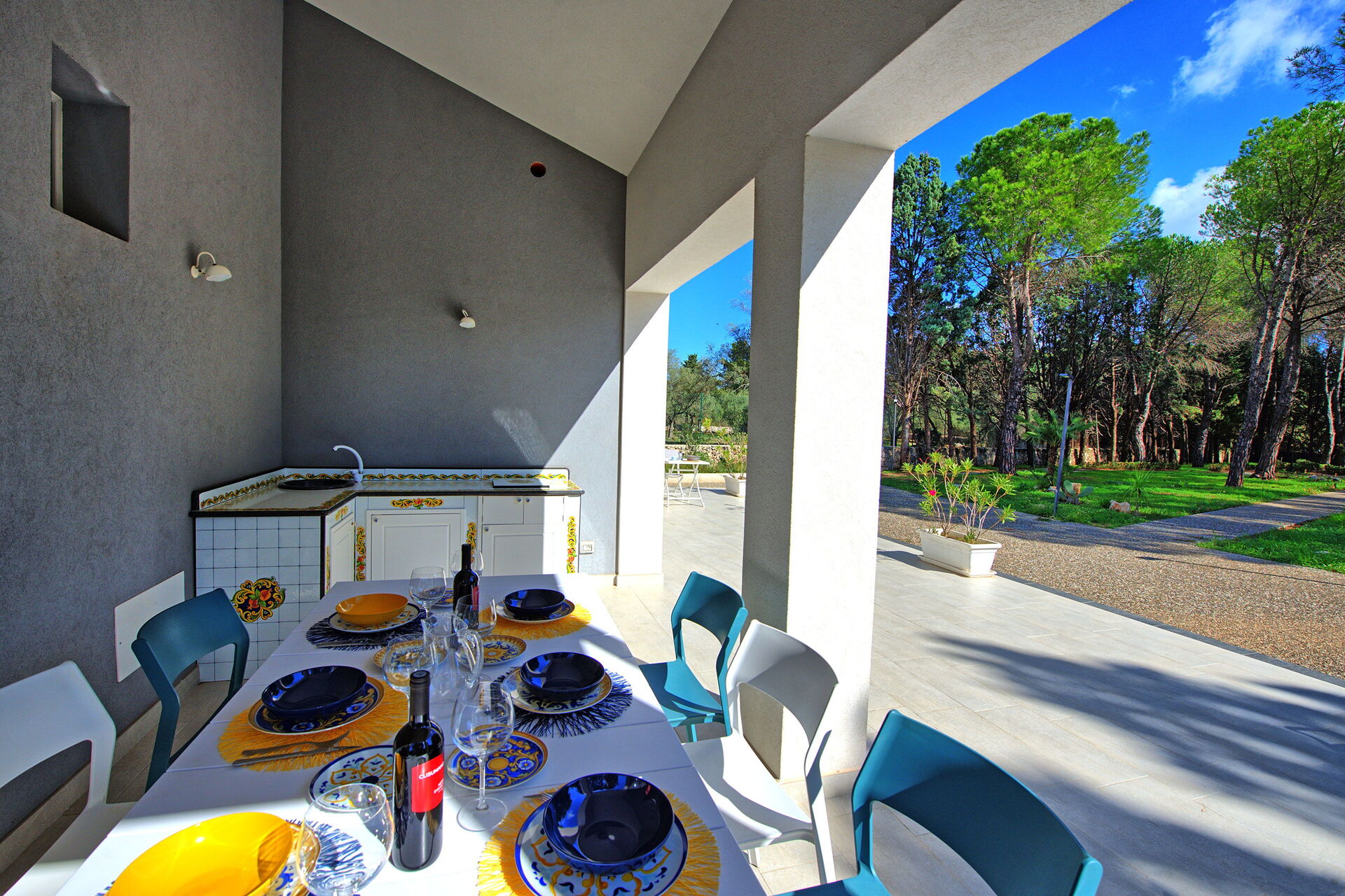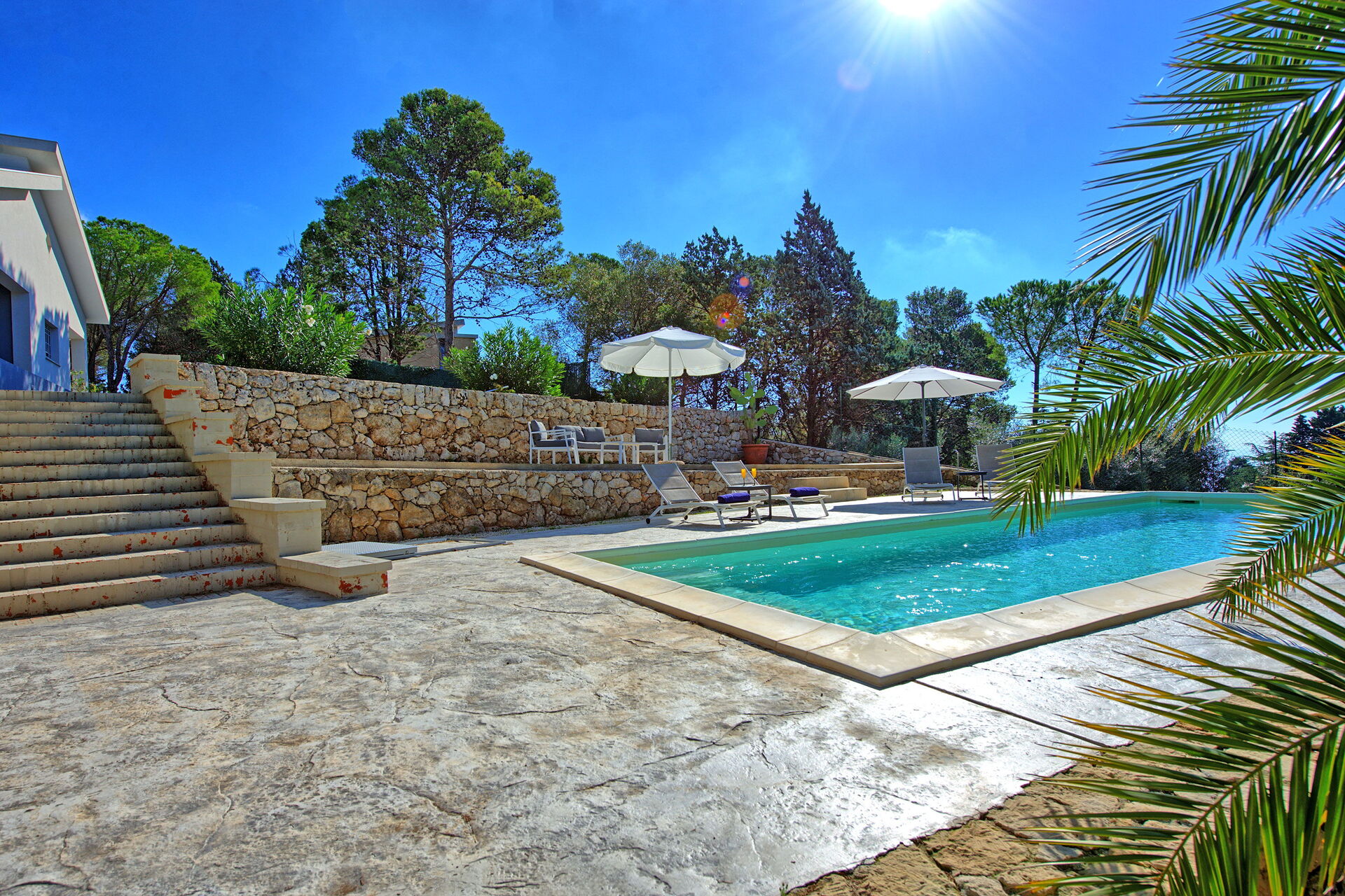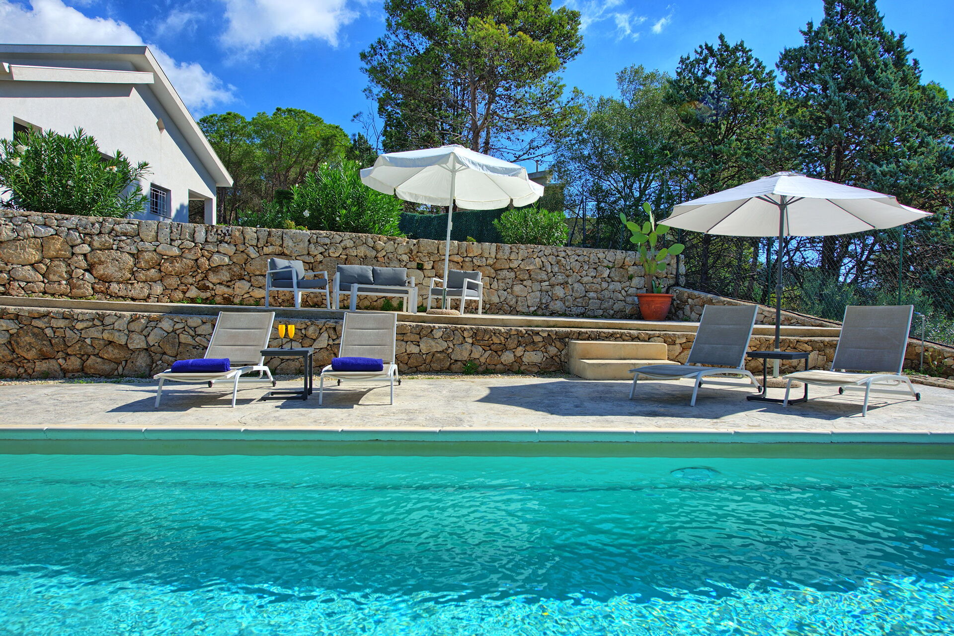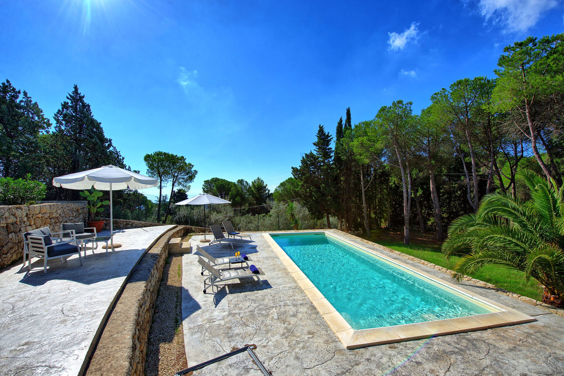Från Nero Avola ser du ut på den vackra privata saltvattenpoolen och stora terrasser, möblerade med bord och stolar för att äta utomhus. Det är den perfekta platsen att koppla av eller svalka sig under varma sommardagar!