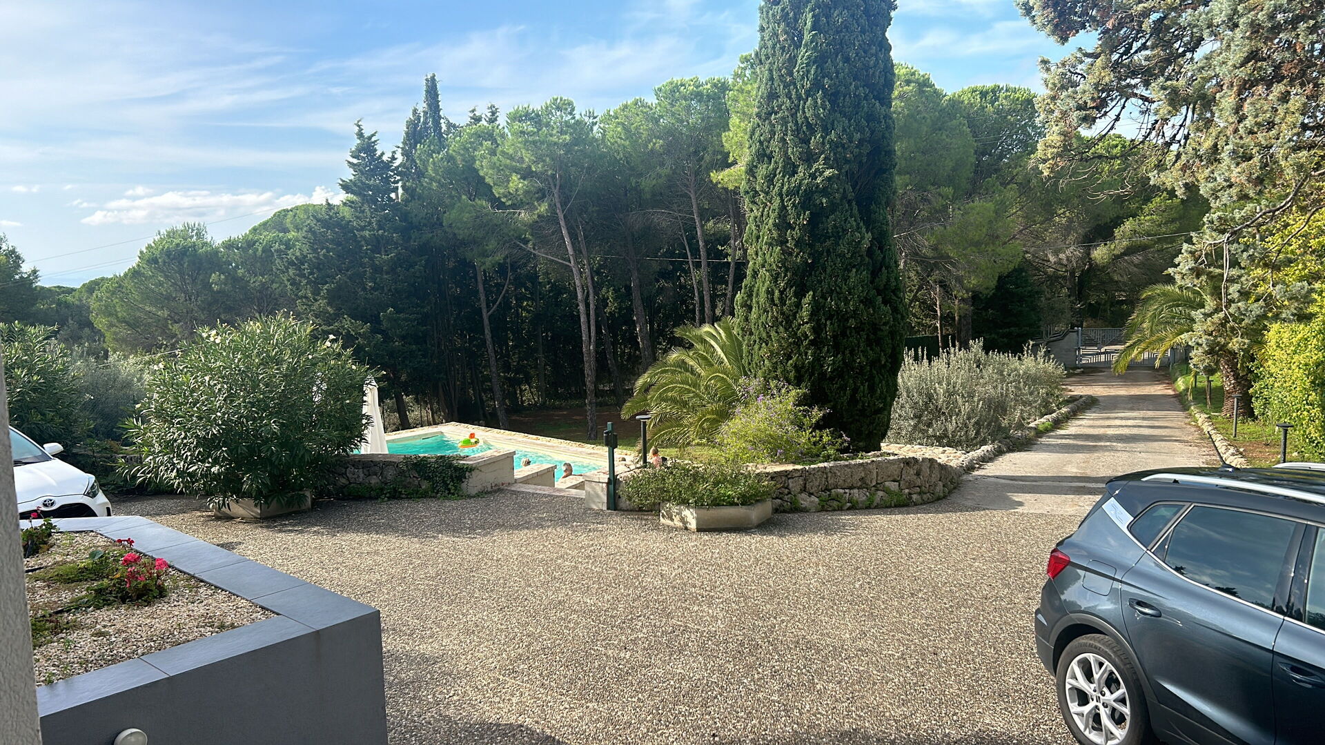 The house offers lots of privacy, the pool is great. Great point is that you can sit outside, covered, at the backside as well as at the front of the house.