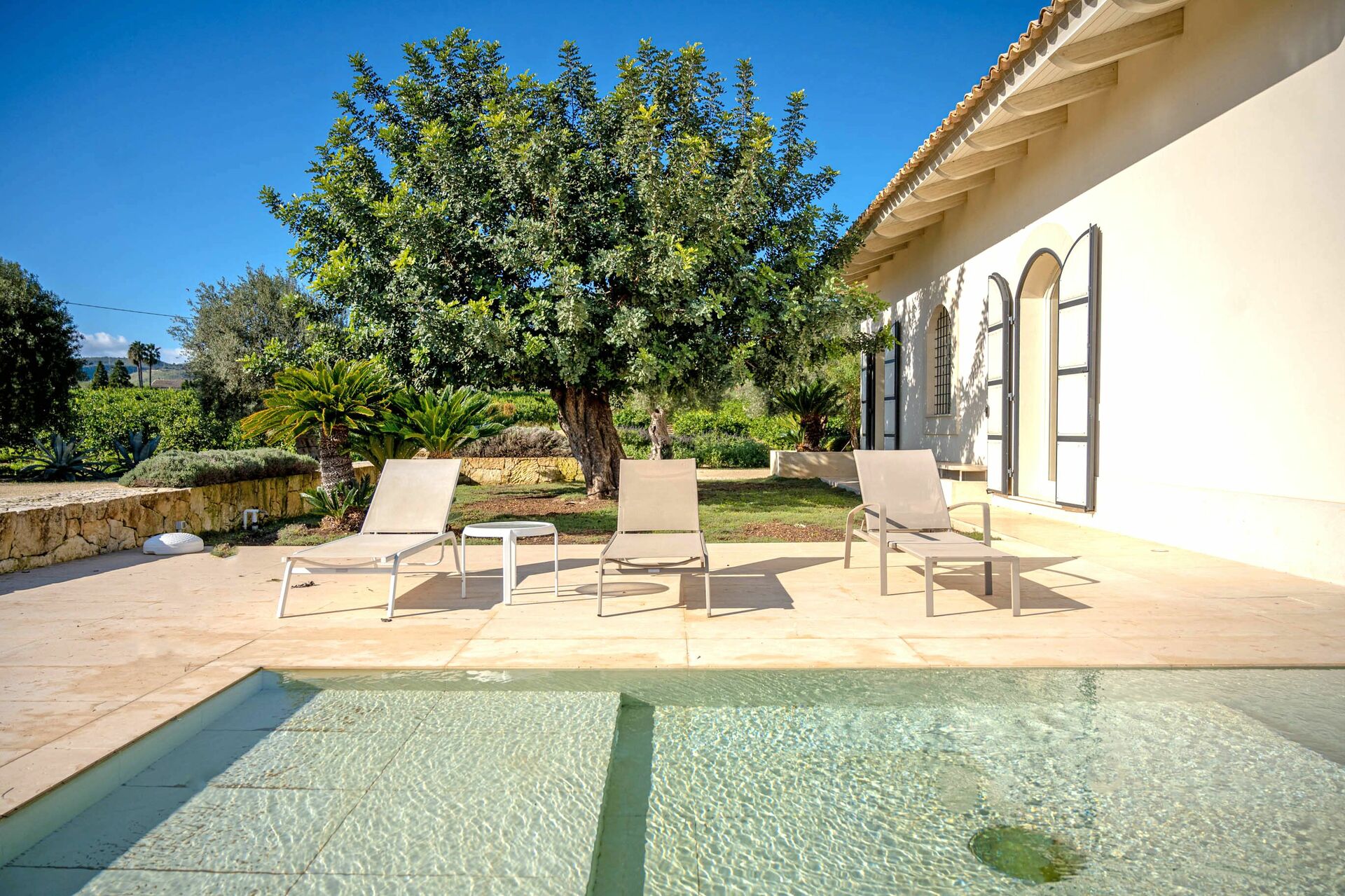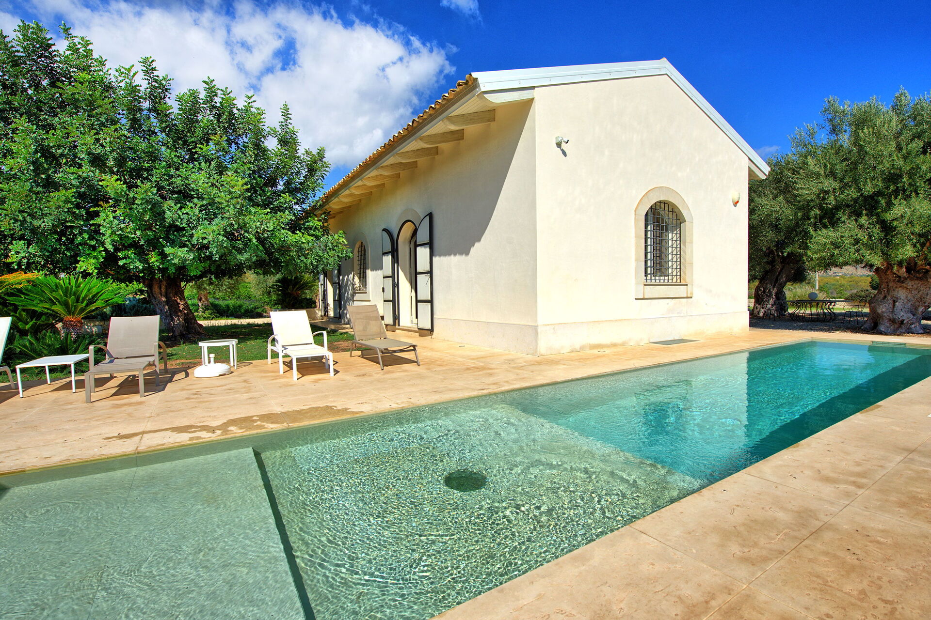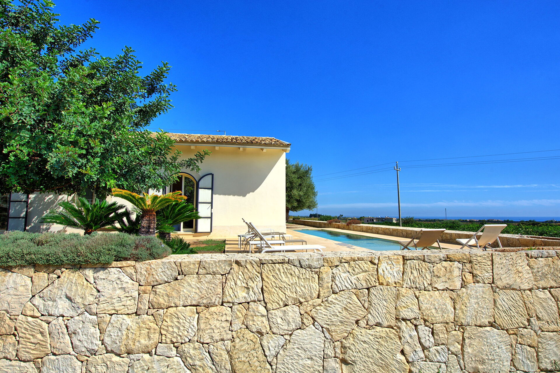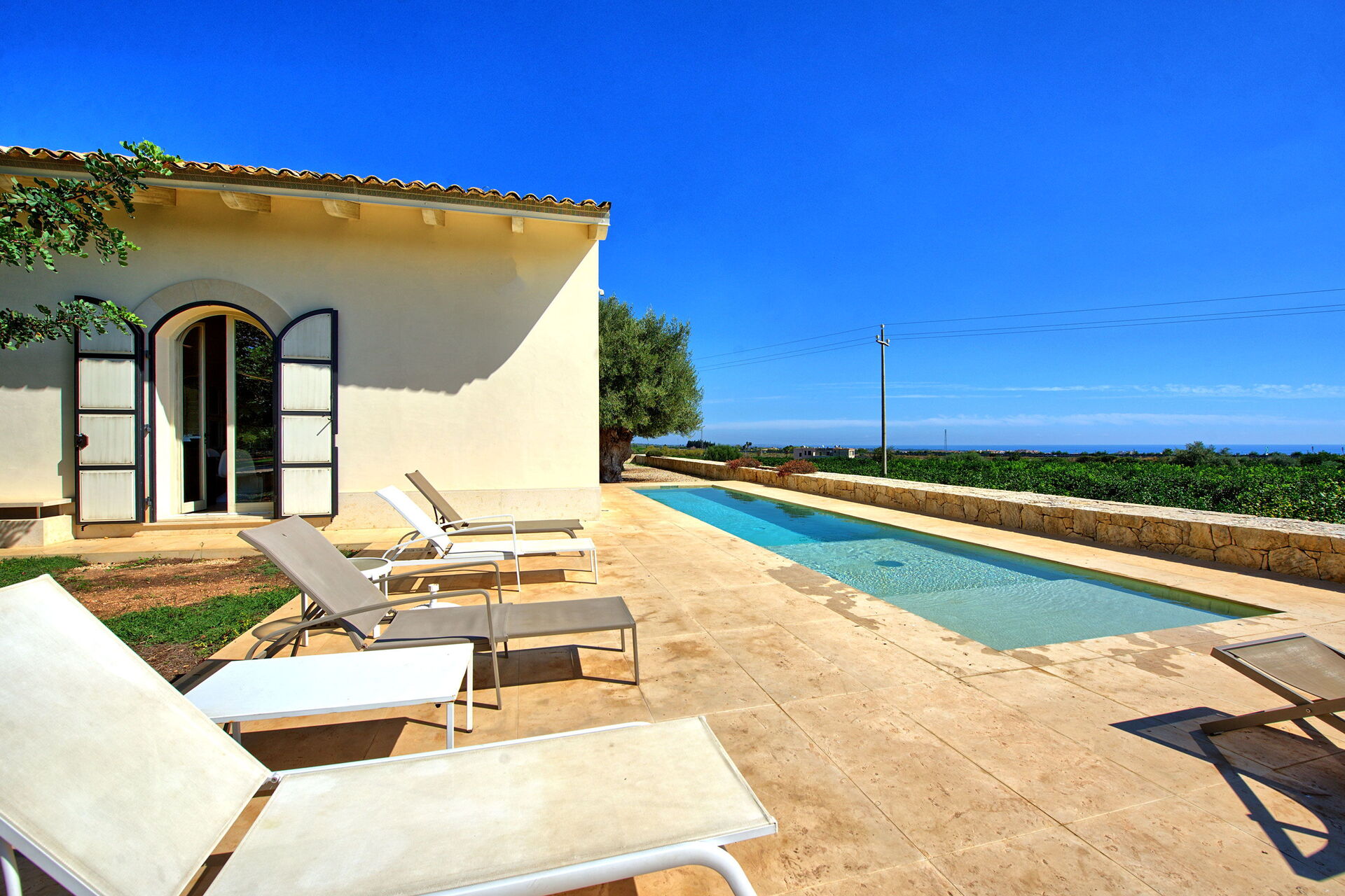 Beautiful, modern, spacious villa set amongst the citrus trees. The pool is lovely and big enough to relax and splash around in. Not a lot in the immediate vicinity but only 15 min drive from Noto.